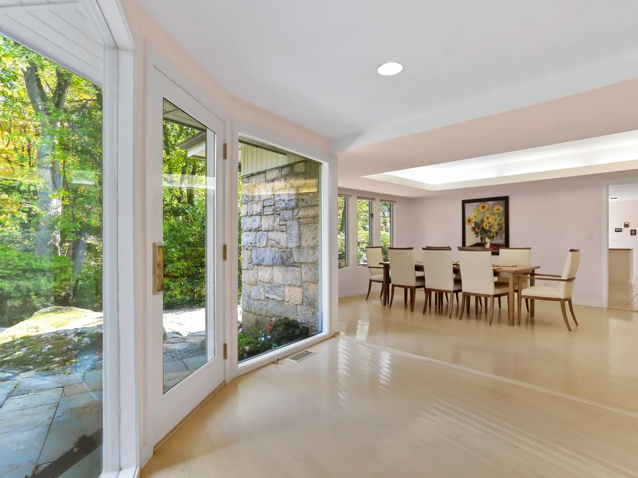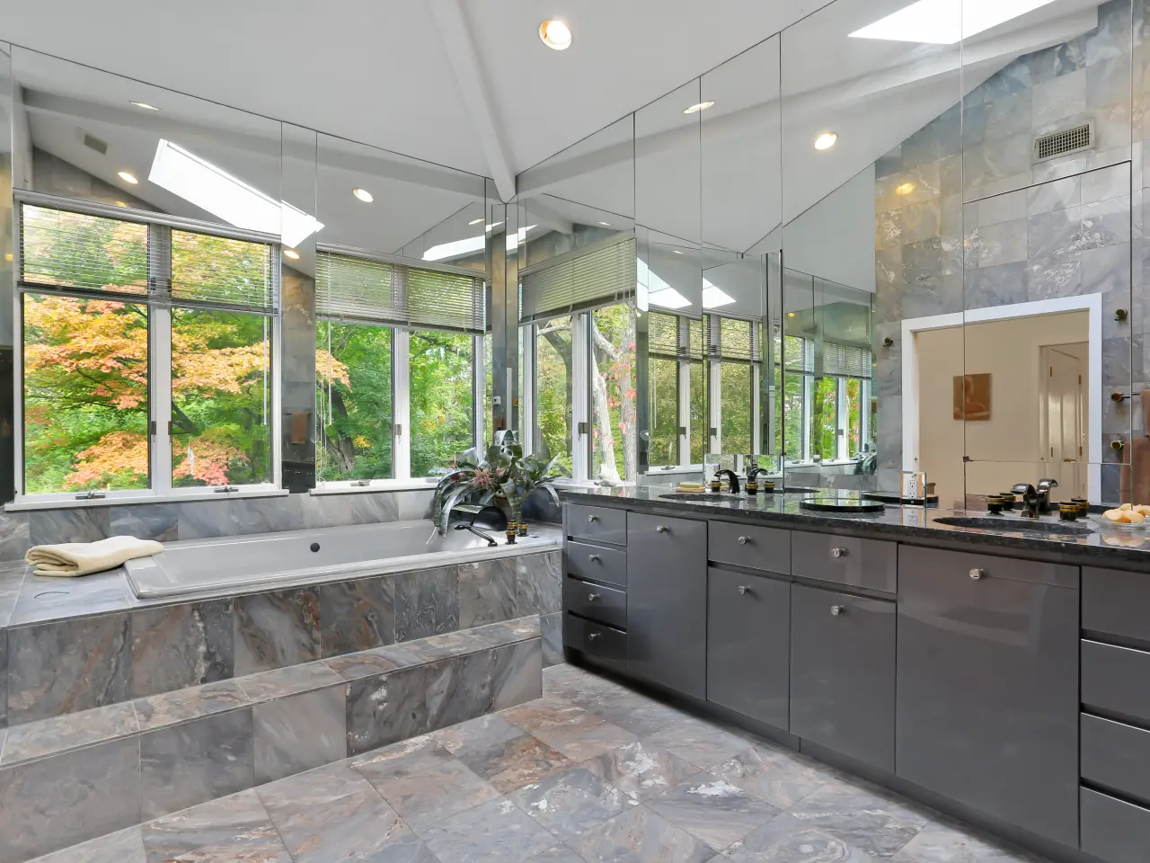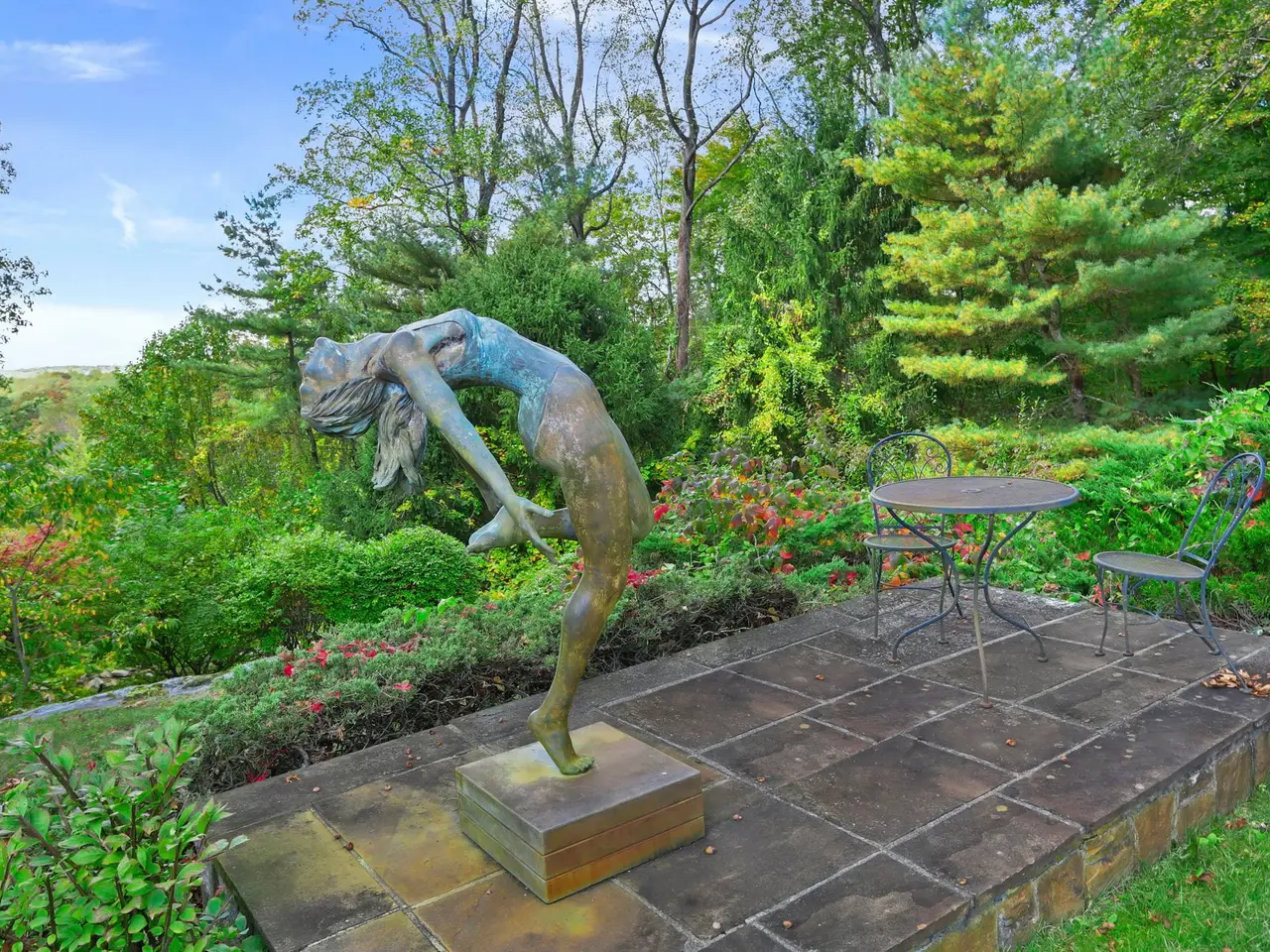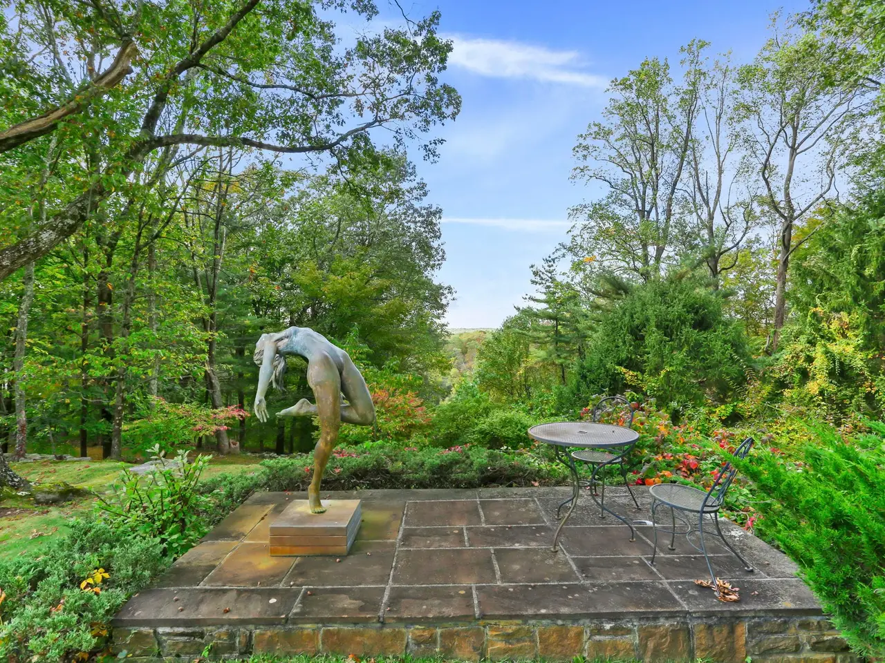 Exceptional 6.5 acre country compound located in a private gated association in Greenwich. This bucolic property unfolds with so much to offer. Manicured lawns, mature plantings and vistas complement the amenities which include a pool & spa, pool house, tennis & basketball courts & art studio or apartment. The home has a masterful blend of timeless architecture with hipped roofs, horizontal lines & well situated windows that seamlessly integrate with the natural landscape. The sprawling 9200 square foot home offers high ceilings & spacious formal and informal rooms, which accommodates both intimate family gatherings and grand parties. Enter via a double height grand foyer with curved metal railed staircase & you will see marble and wood floors, great wall space for displaying art. First floor offers a large living room with greenhouse area, dining room, primary suite with adjacent office, gourmet kitchen, family room and access to different outdoor patios and decks. The second floor offers another luxe primary suite, several bedrooms and a great room with beamed ceiling. Bonus: koi pond with waterfall, vegetable garden area, office spaces, 5 garages and generator. Conveniently located to schools, highways and an easy drive to downtown Greenwich and train.