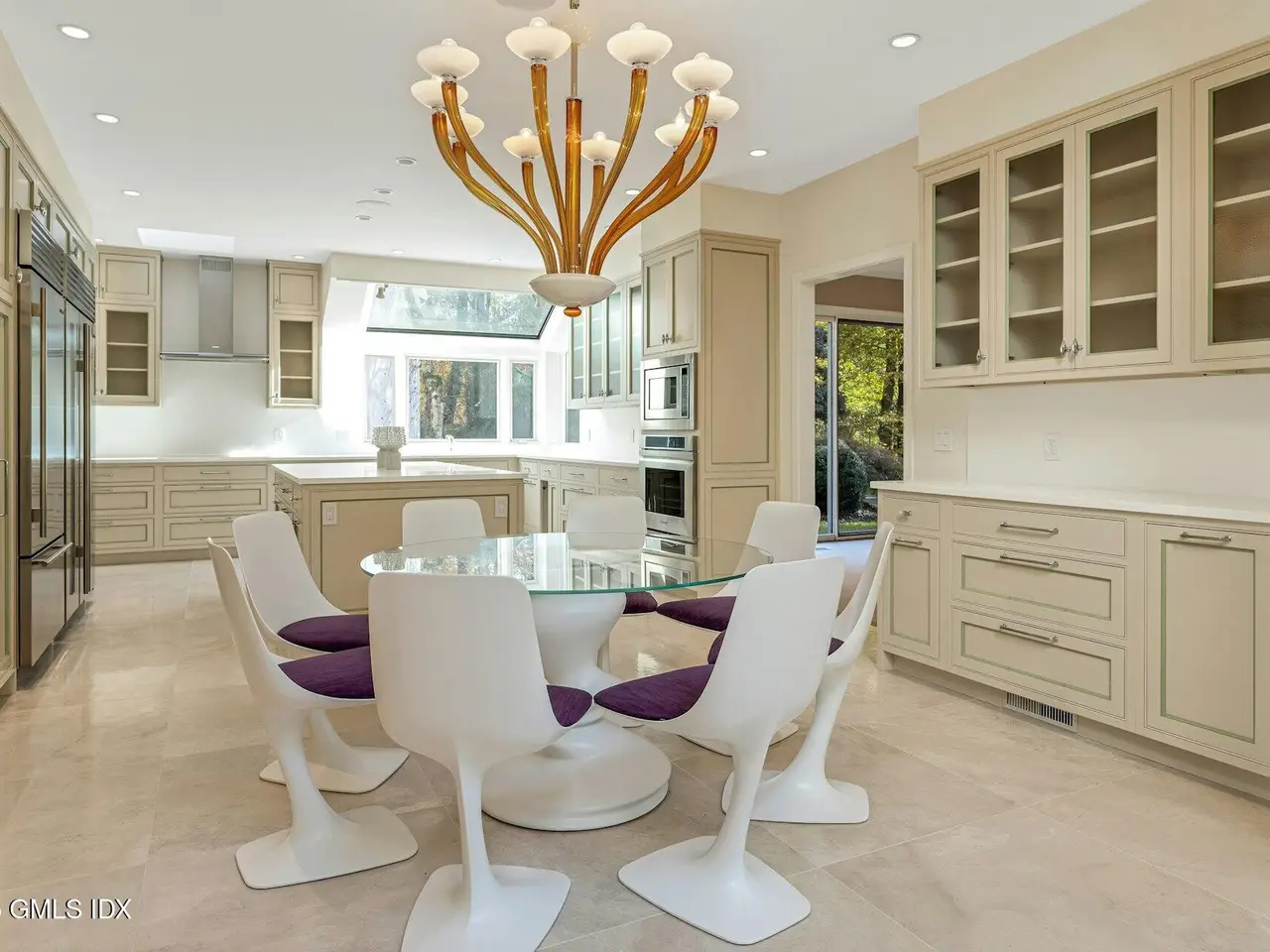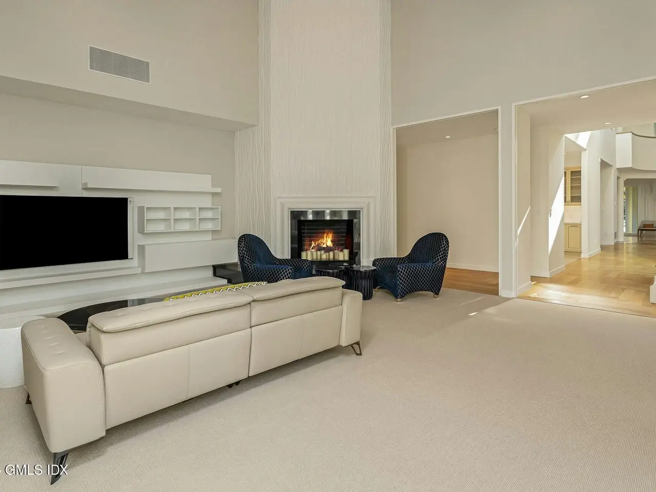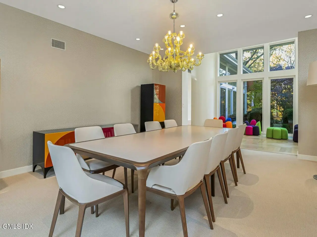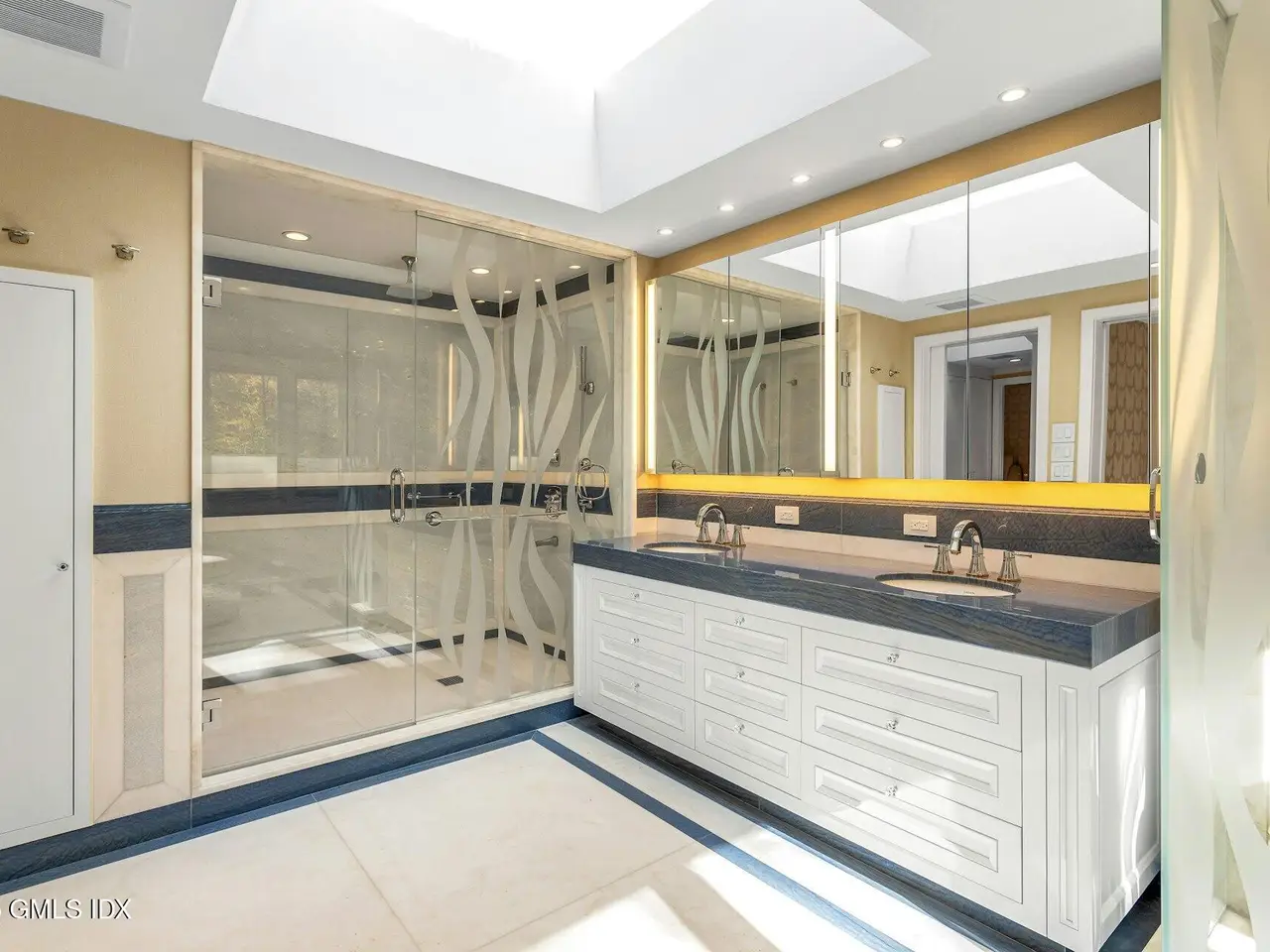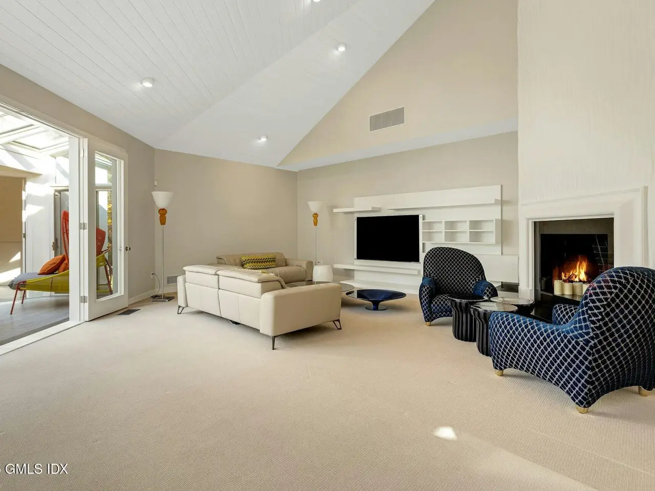 This exceptional contemporary home on a quiet cul-de-sac has been transformed with a complete meticulous custom renovation. The dramatic yet highly functional home is being offered fully furnished with Roche Bobois furniture in addition to Barovier & Toso Venetian light fixtures throughout the home. The beautiful parklike grounds encompass 4 acres including a tennis court, pool with spa and large yard area. The border to the north abuts the 300-acre Babcock Preserve with 7 miles of trails. The interior space extends to 7,700 sq.ft. on 3 levels with 6 ensuite bedrooms all with custom walk-in closets. The luxurious primary suite is highlighted by a limestone fireplace, an office loft, private balcony and glistening bathroom featuring Blue Macuba marble. Truly a peaceful and private oasis.