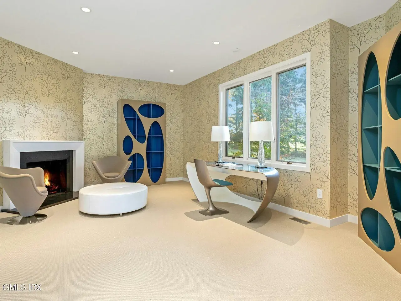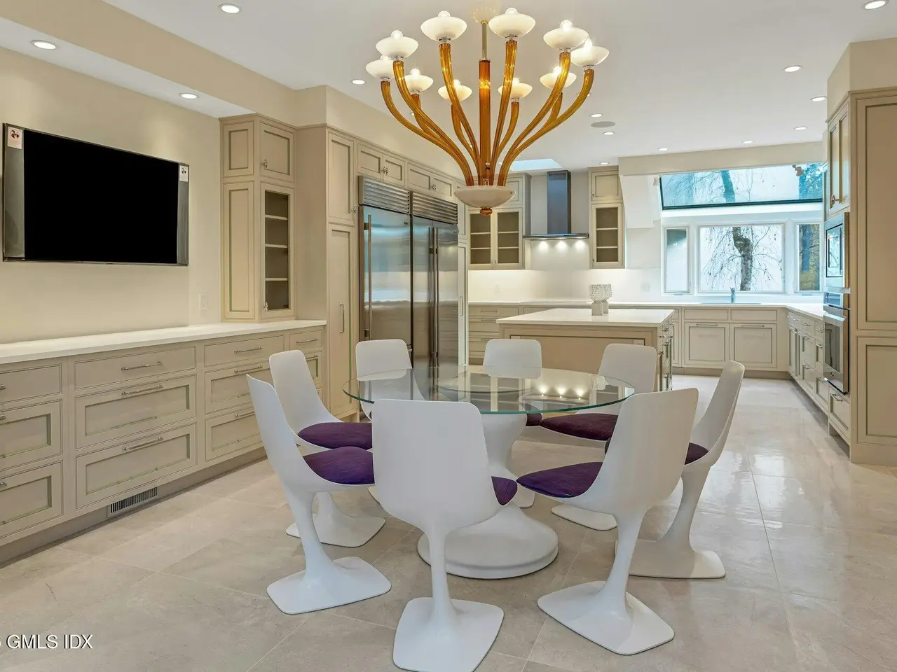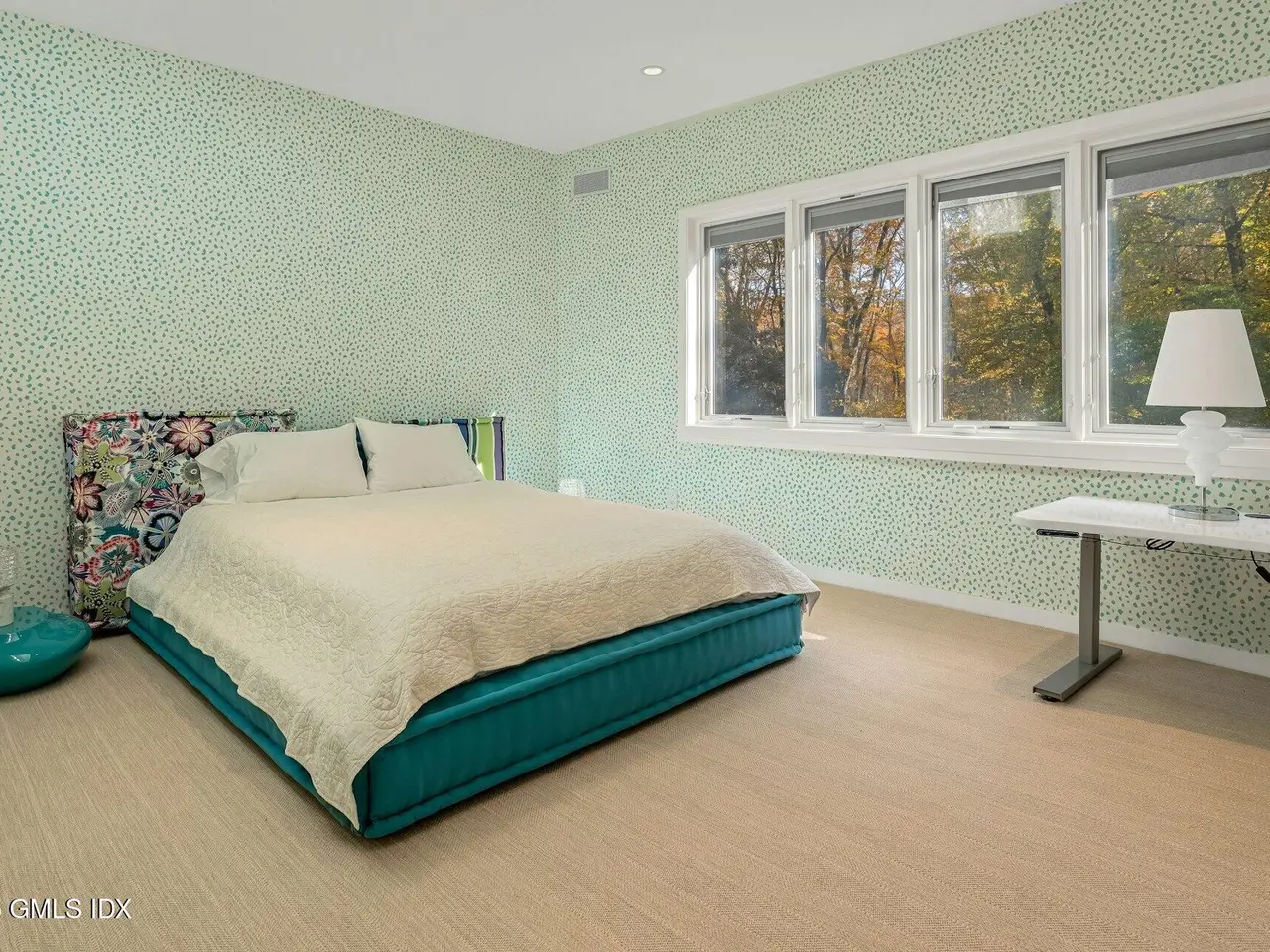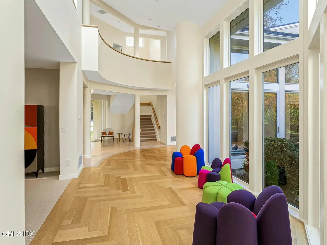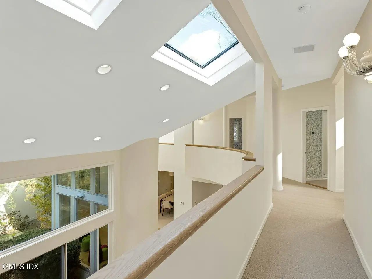This exceptional contemporary home on a quiet cul-de-sac has been transformed with a complete meticulous custom renovation. The dramatic yet highly functional home is being offered fully furnished with Roche Bobois furniture in addition to Barovier & Toso Venetian light fixtures throughout the home. The beautiful parklike grounds encompass 4 acres including a tennis court, pool with spa and large yard area. The border to the north abuts the 300-acre Babcock Preserve with 7 miles of trails. The interior space extends to 7,700 sq.ft. on 3 levels with 6 ensuite bedrooms all with custom walk-in closets. The luxurious primary suite is highlighted by a limestone fireplace, an office loft, private balcony and glistening bathroom featuring Blue Macuba marble. Truly a peaceful and private oasis.