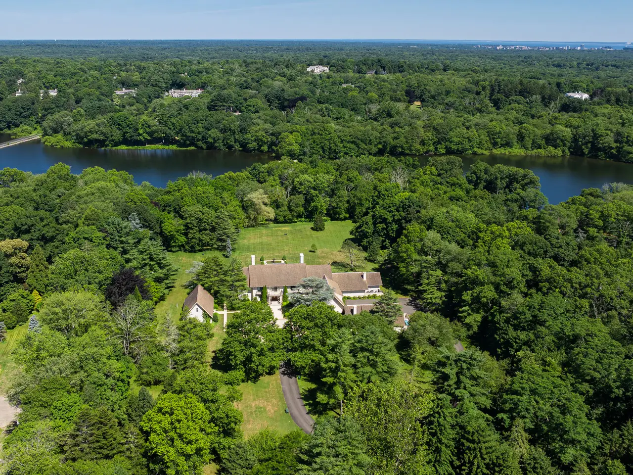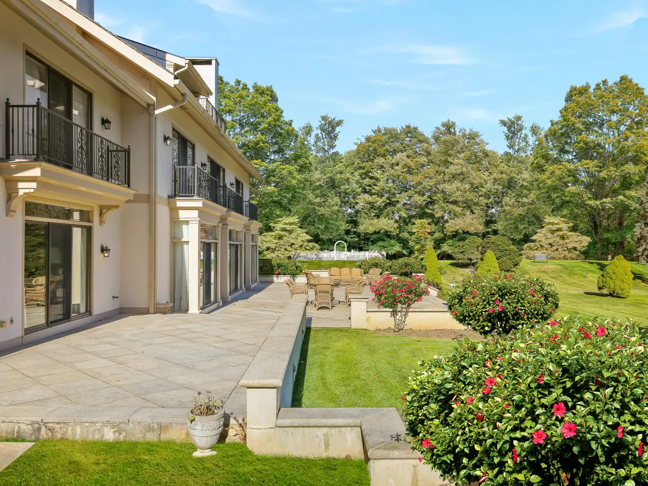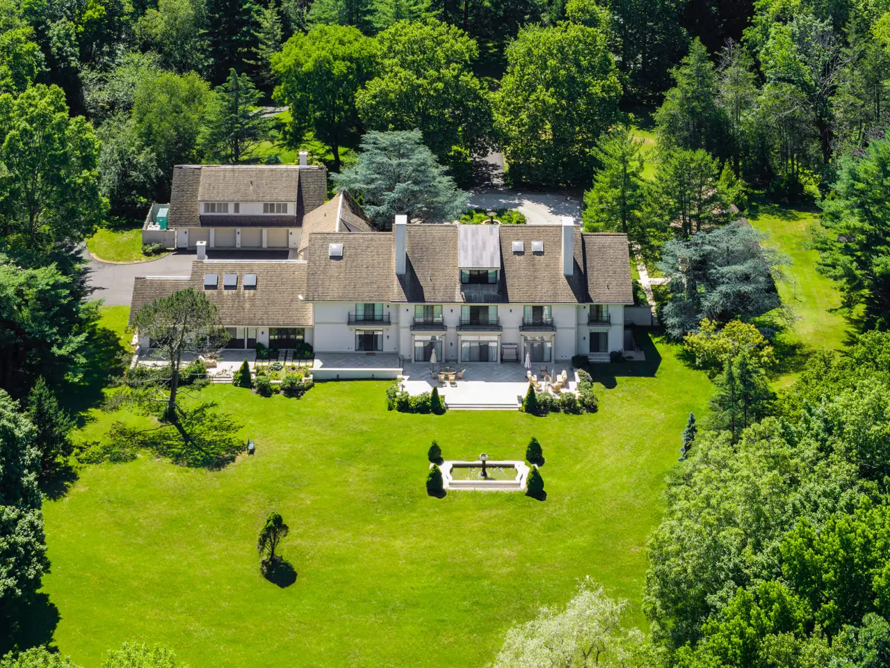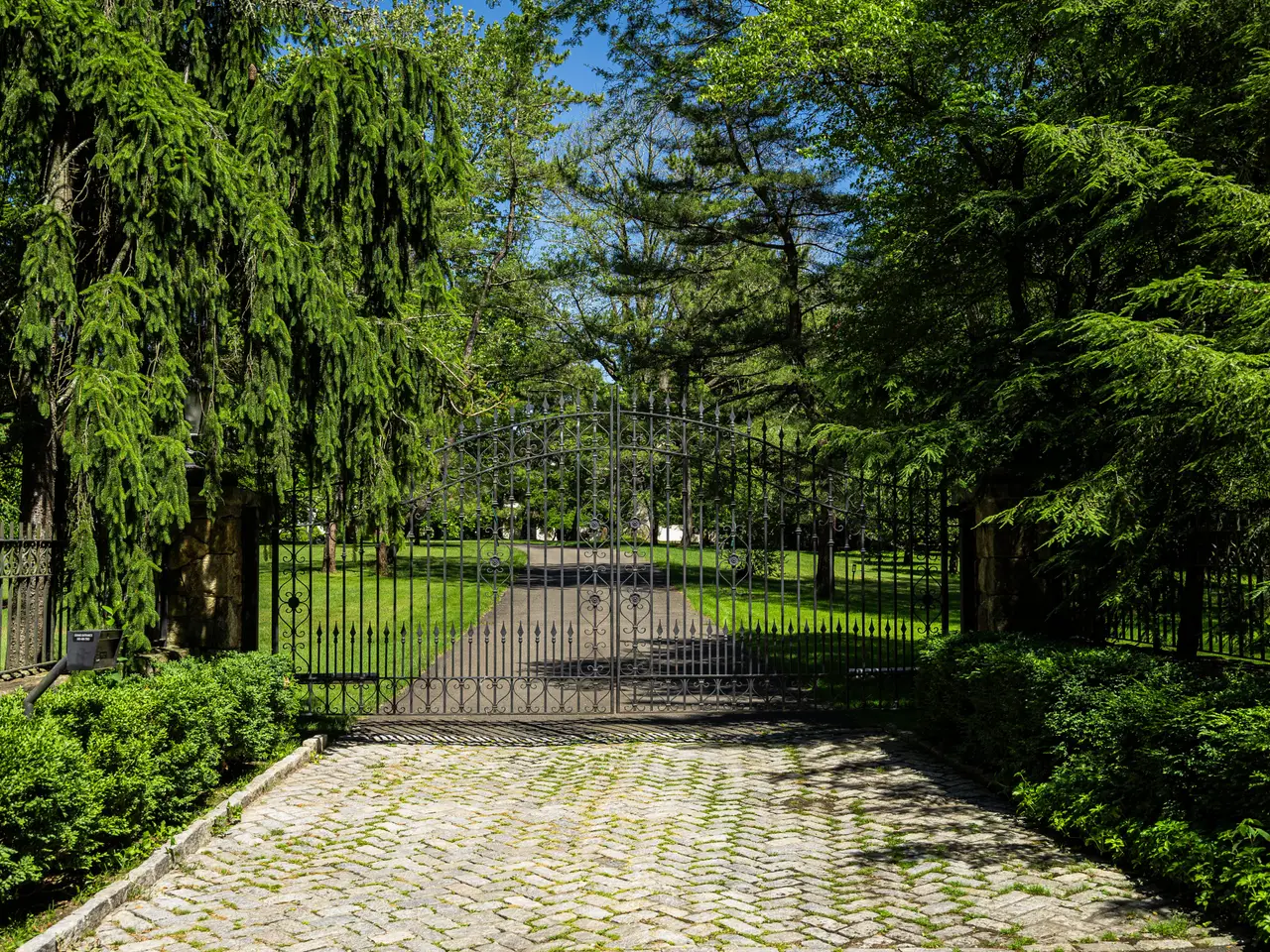 Eight private, gated acres showcase a sprawling back-country home with stone terraces, secluded backyard, fountain and resort-style amenities including tennis court, indoor pool, spa, steam room and separate office. Thoughtful floor plan accommodates both grand scale entertaining as well as comfortable everyday living with elegant formal rooms, fireplaces in living, family rooms and library; gourmet and catering kitchens. Twelve bedrooms provide plenty of sleeping options with two main floor guest suites, second floor primary suite with fireplace and separate two bedroom suite with sitting room over four-car garage. Lower level reveals tasting room/wine cellar; media room with bar, gym and half bath. Located just minutes from town and schools with views of Rockwood Lake and across from Babcock Preserve.