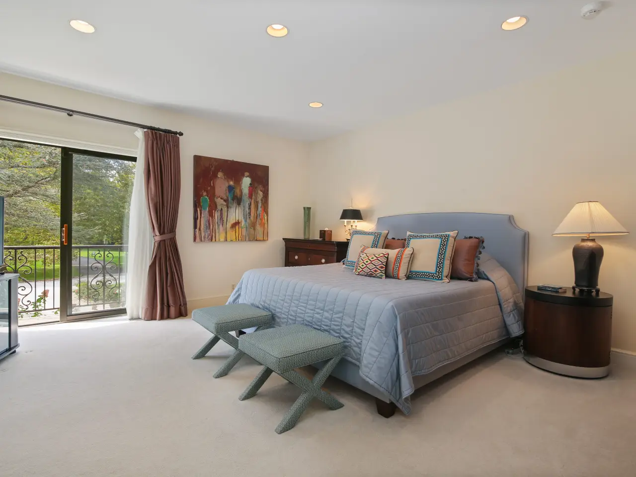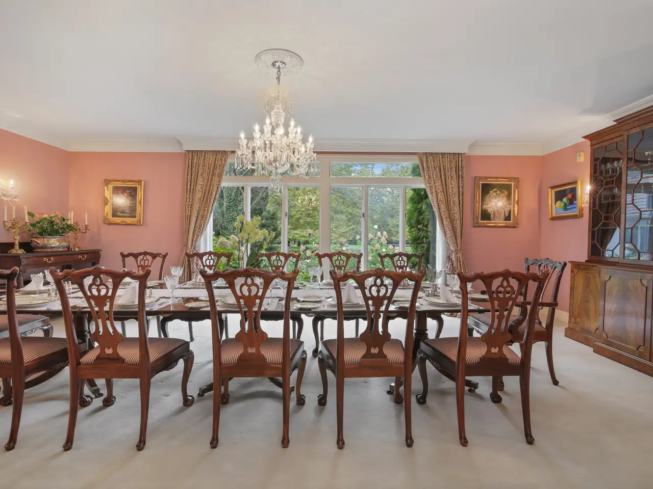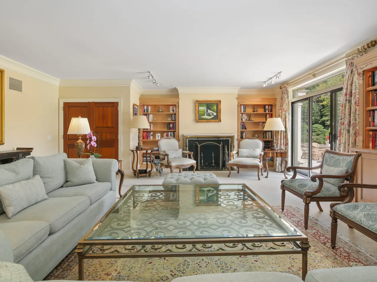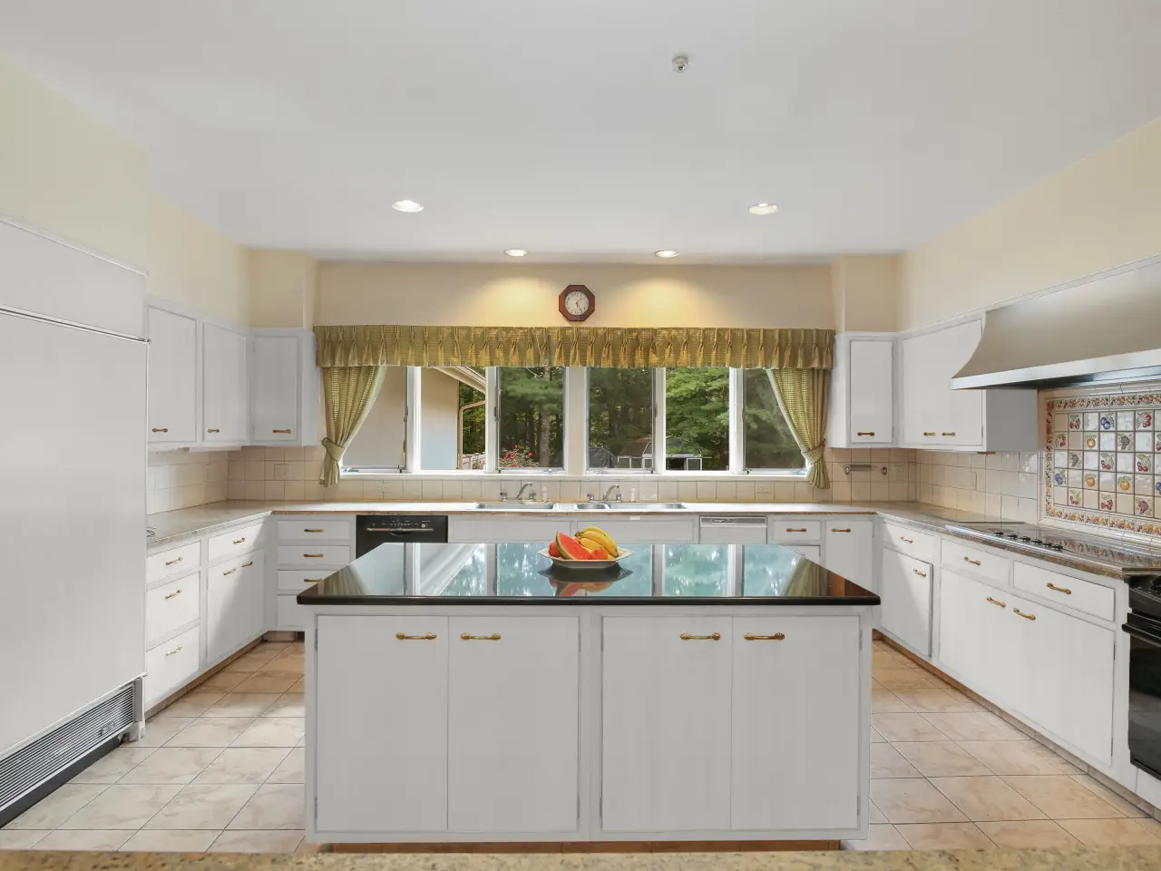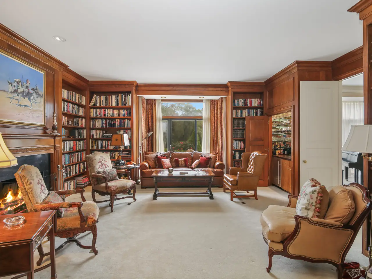 Eight private, gated acres showcase a sprawling back-country home with stone terraces, secluded backyard, fountain and resort-style amenities including tennis court, indoor pool, spa, steam room and separate office. Thoughtful floor plan accommodates both grand scale entertaining as well as comfortable everyday living with elegant formal rooms, fireplaces in living, family rooms and library; gourmet and catering kitchens. Twelve bedrooms provide plenty of sleeping options with two main floor guest suites, second floor primary suite with fireplace and separate two bedroom suite with sitting room over four-car garage. Lower level reveals tasting room/wine cellar; media room with bar, gym and half bath. Located just minutes from town and schools with views of Rockwood Lake and across from Babcock Preserve.