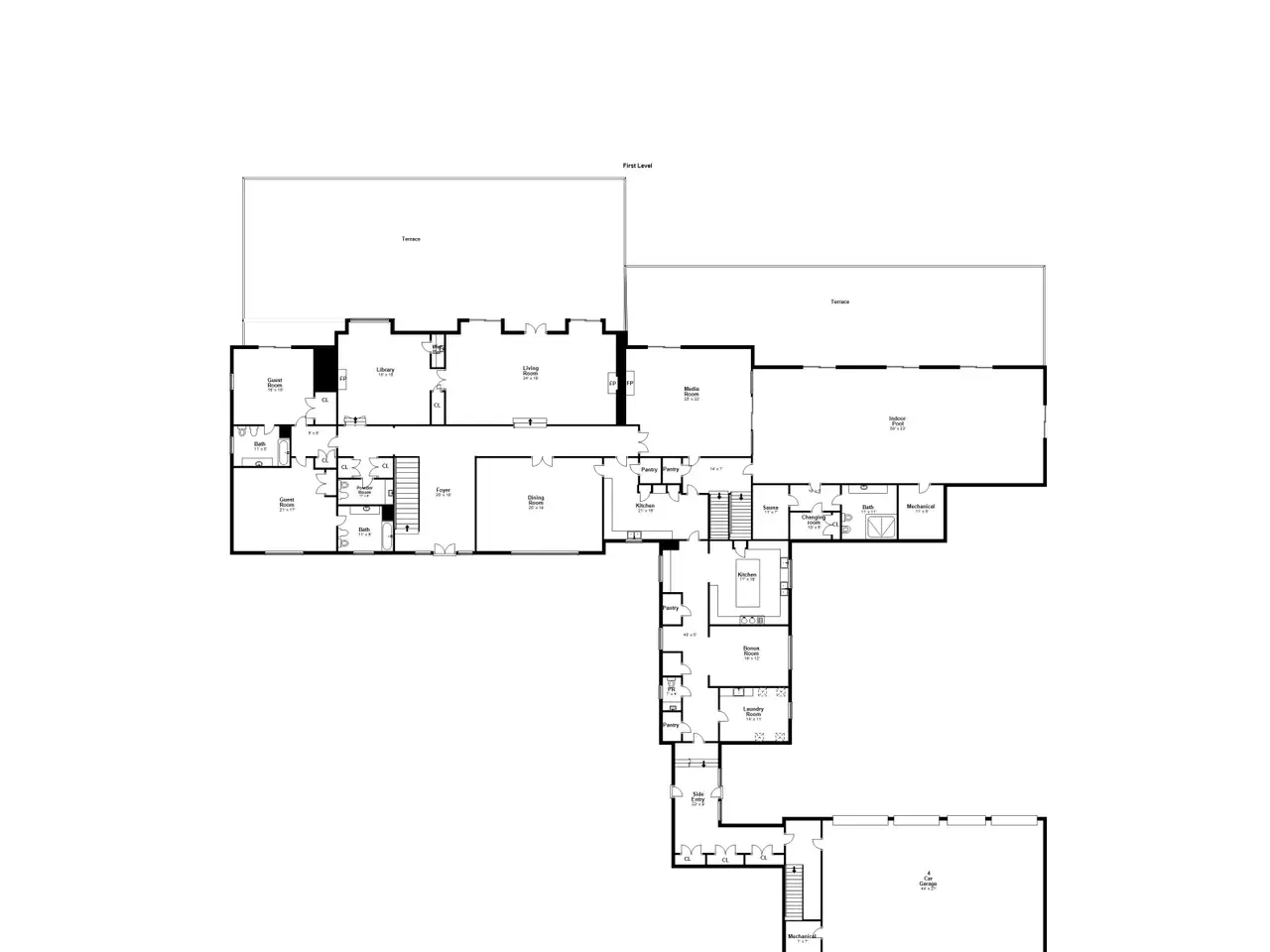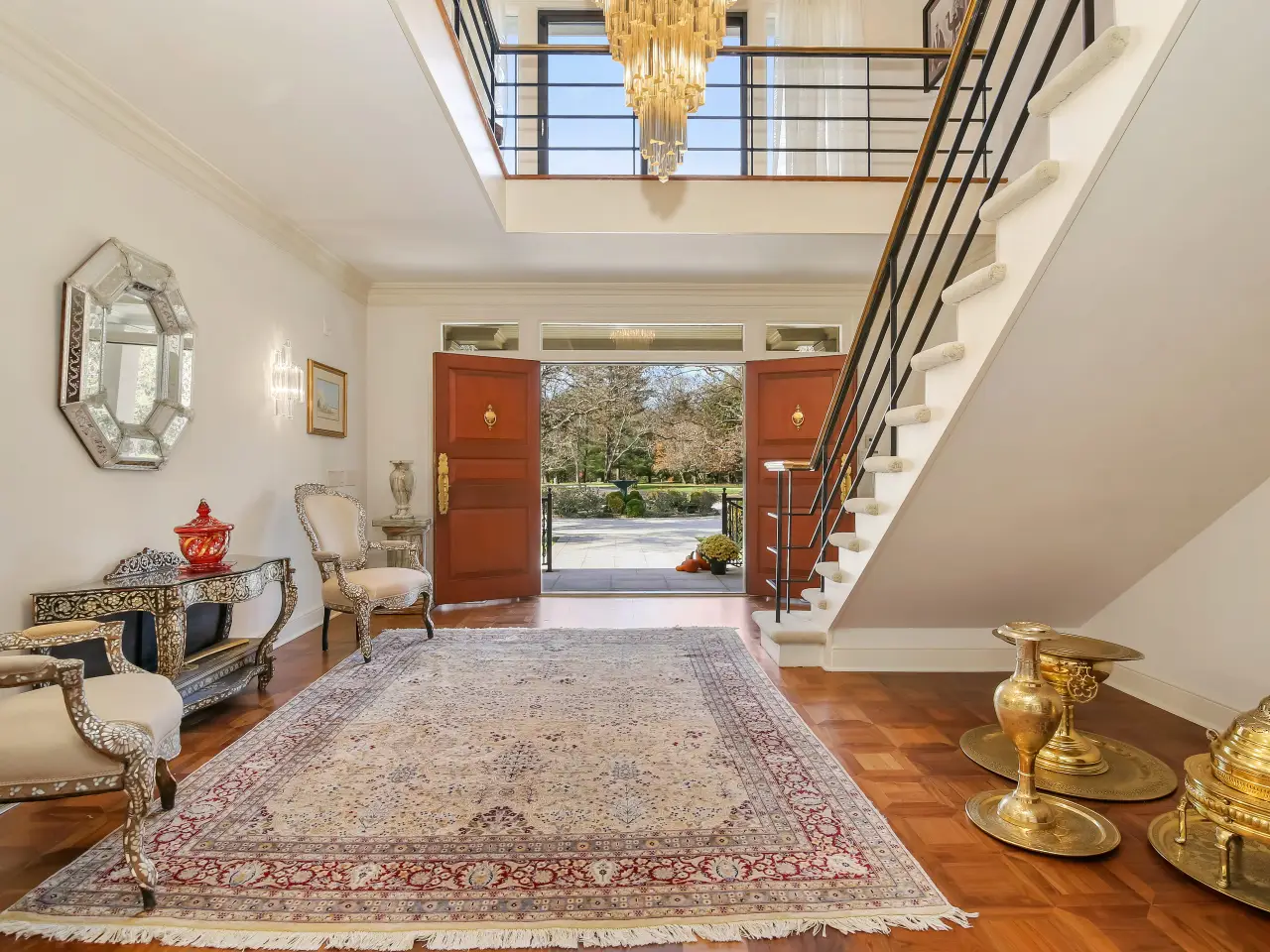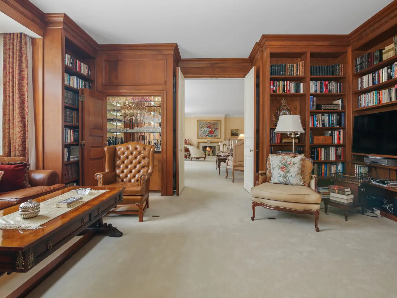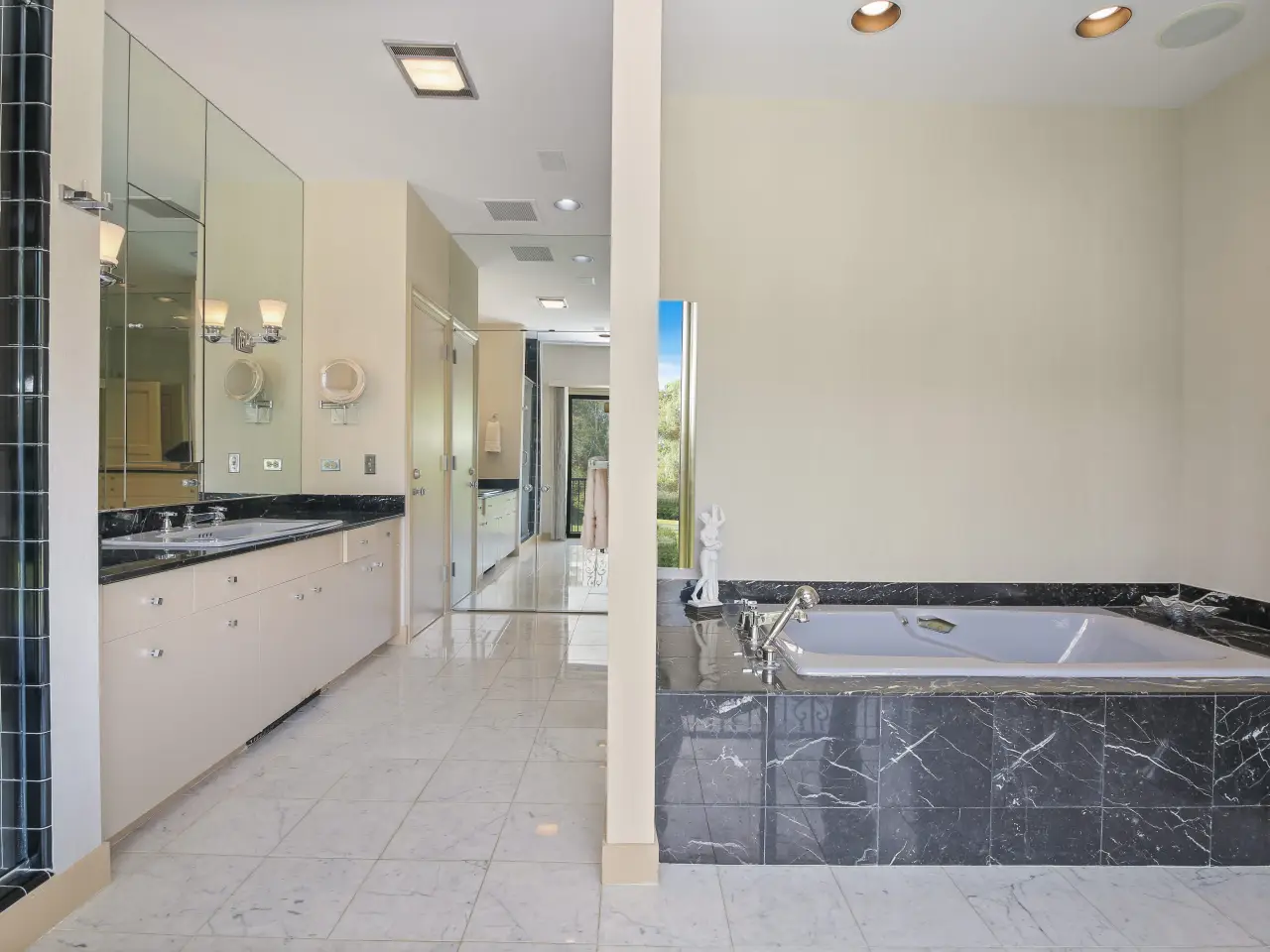 Eight private, gated acres showcase a sprawling back-country home with stone terraces, secluded backyard, fountain and resort-style amenities including tennis court, indoor pool, spa, steam room and separate office. Thoughtful floor plan accommodates both grand scale entertaining as well as comfortable everyday living with elegant formal rooms, fireplaces in living, family rooms and library; gourmet and catering kitchens. Twelve bedrooms provide plenty of sleeping options with two main floor guest suites, second floor primary suite with fireplace and separate two bedroom suite with sitting room over four-car garage. Lower level reveals tasting room/wine cellar; media room with bar, gym and half bath. Located just minutes from town and schools with views of Rockwood Lake and across from Babcock Preserve.