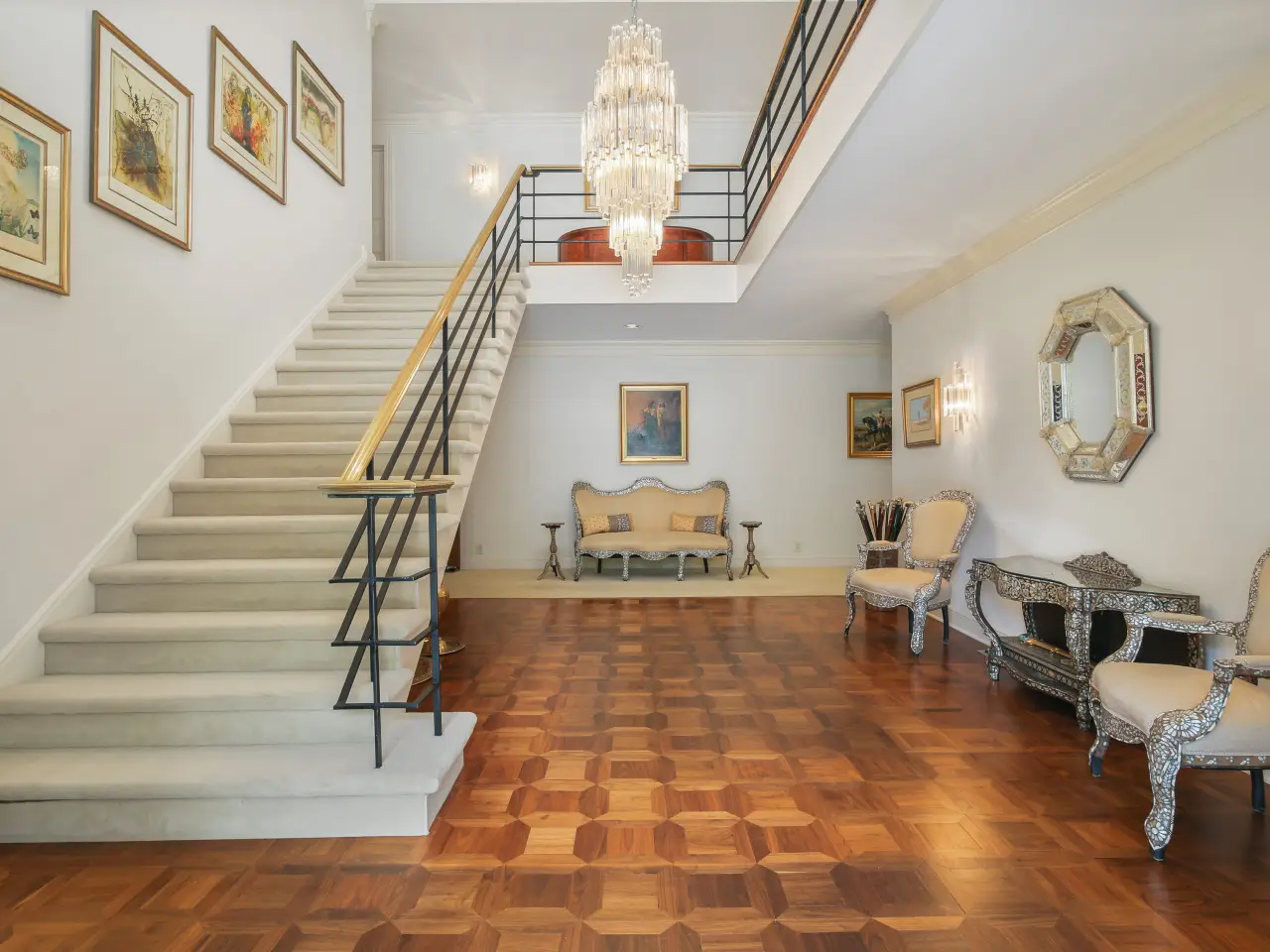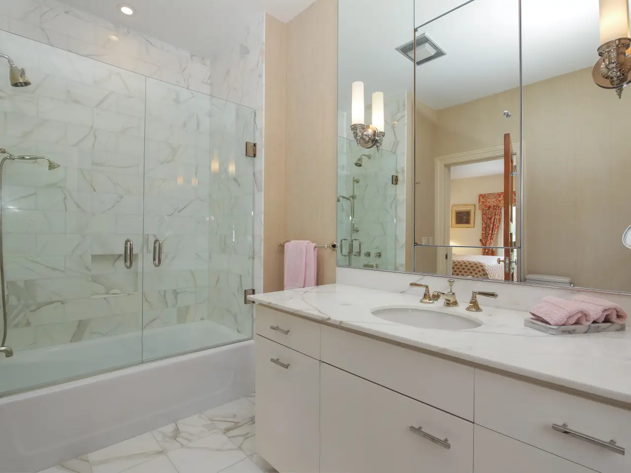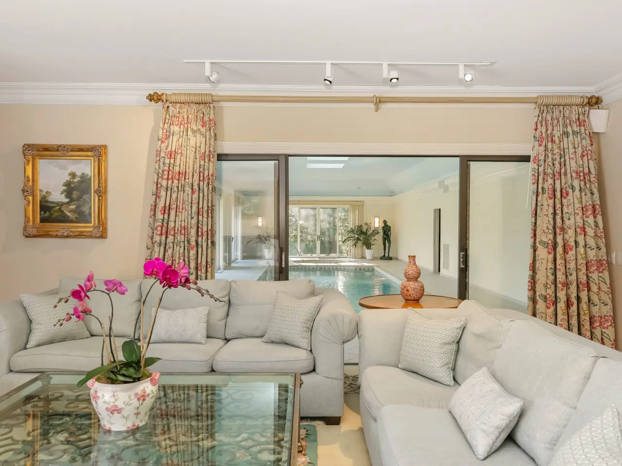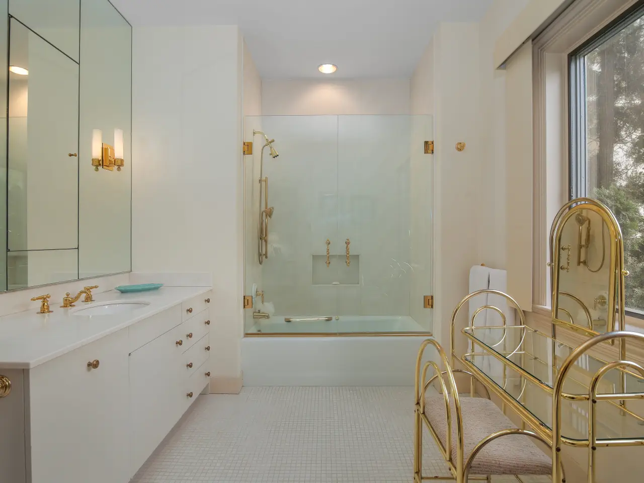 Eight private, gated acres showcase a sprawling back-country home with stone terraces, secluded backyard, fountain and resort-style amenities including tennis court, indoor pool, spa, steam room and separate office. Thoughtful floor plan accommodates both grand scale entertaining as well as comfortable everyday living with elegant formal rooms, fireplaces in living, family rooms and library; gourmet and catering kitchens. Twelve bedrooms provide plenty of sleeping options with two main floor guest suites, second floor primary suite with fireplace and separate two bedroom suite with sitting room over four-car garage. Lower level reveals tasting room/wine cellar; media room with bar, gym and half bath. Located just minutes from town and schools with views of Rockwood Lake and across from Babcock Preserve.