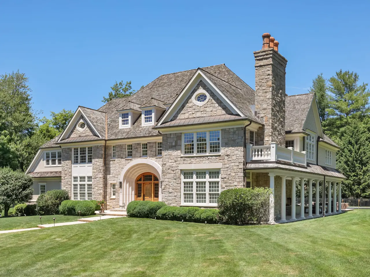 Bathed in natural light, this exquisitely designed stone and clapboard home embodies today's look & lifestyle. The stunning residence set on 2 lovely acres in a quiet neighborhood blends timeless architecture with modern elegance. Soaring ceilings and an airy layout connect the double-height foyer, elegant formal rooms and a chef's eat-in kitchen adjoining the vaulted family room. The serene primary suite offers a sitting room & spa-like bath, while six additional en-suite bedrooms w high ceil, a media room, and a three-car garage w room for lifts provide ample space. Outdoors a pool, spa, & covered terraces w fireplace & gas firepit invite effortless indoor-outdoor living. Every detail reflects thoughtful design, quality craftsmanship & a seamless connection to the surrounding landscape.
