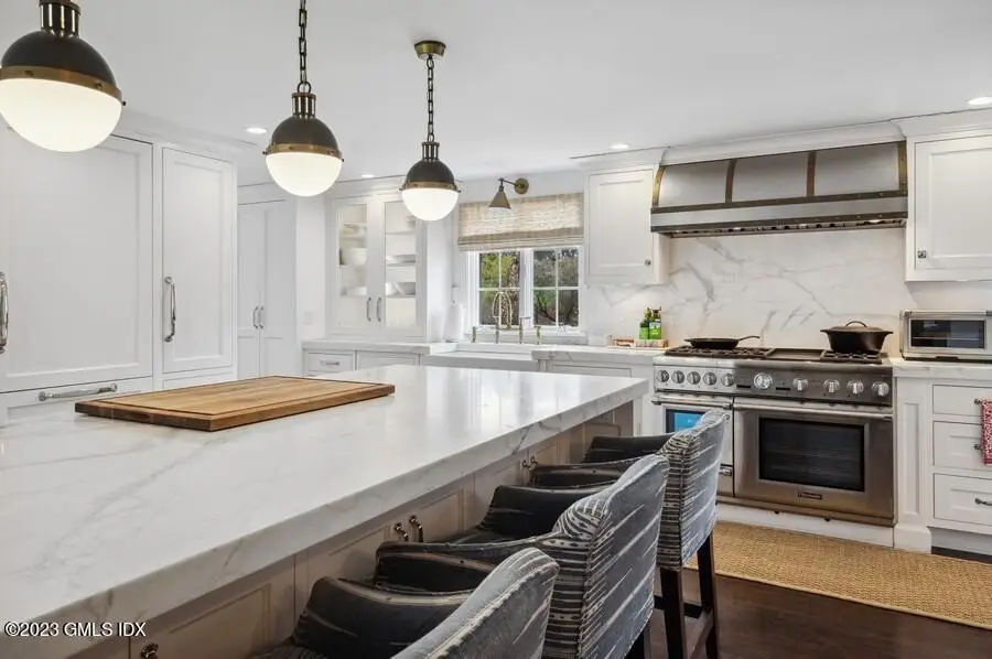 Welcome to your private retreat, an idyllic country oasis set on over 4 lush acres with mature plantings, flowering trees, and serene landscape. This extraordinary property offers a unique blend of luxury, comfort, and versatility, with multiple living spaces designed for both relaxation and entertainment. The main house features a high-end kitchen that seamlessly flows into the family room, complete with a wet bar. French doors open onto the expansive patio and pool area, perfect for indoor-outdoor living. A more formal living room offers a cozy fireplace, breathtaking views, and additional access to the beautifully landscaped yard. The first-floor primary suite is a sanctuary, boasting its own fireplace and French doors leading to the yard. Separate from the main residence, the barn has been thoughtfully designed to serve as a guest suite or a stylish home office. It includes a kitchenette and a full bathroom, offering privacy and flexibility for guests or remote work. The pool house elevates guest accommodations to the next level, functioning as a complete guest home. It features a bedroom, full bathroom, a fully equipped kitchen, a cozy living area with fireplace, a gym, and even a bunk room for additional sleeping space. Whether you're entertaining, hosting guests, or simply enjoying a peaceful lifestyle, this property is the perfect blend of charm, and easy living.