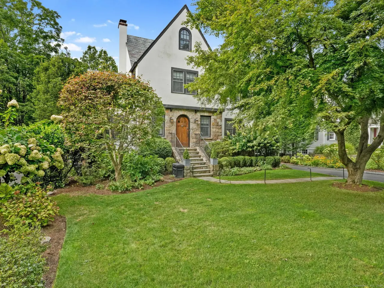 Impeccable home in a fantastic Riverside location close to Binney Park, Perrot Library, and the Old Greenwich Metro North station with adjacent village shopping and dining. Sidewalks lead directly to Riverside School and Eastern Middle School. The main level flows between family room, dining room, and kitchen and includes a windowed den for play-space, office, or sitting room. Upstairs has four bedrooms and two full baths, while the finished third floor provides ample space for office, workout, and storage. Lower level includes updated garage and laundry, plus a state-of-the-art media room that doubles as playroom or office. Spacious deck for outdoor entertaining and lounging overlooks a private backyard with custom gates and meticulously maintained English-style gardens surrounding the home. Additional features include exterior EV charger, full home water filtration system and partial generator.