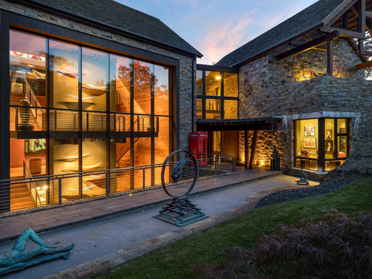 A rare opportunity to own a one-of-a-kind stone and glass residence encompassing 16,000 SF of exceptional design. Currently home to the renowned 7 Bridges Foundation Art Gallery, this breathtaking structure features soaring ceilings, spectacular natural light and three finished levels of expansive, open spaceoffering endless possibilities to reimagine and make it your own. The existing layout includes a spacious one-bedroom suite with private terrace, multiple bathrooms and catering kitchen ideal for large-scale entertaining. Inspired by a modern barn aesthetic, the property seamlessly blends artistry and architecture and can be transformed into an extraordinary private residence. Set on more than 6.5 gated acres, this estate offers unmatched privacy and presence with potential to purchase additional adjacent lots.