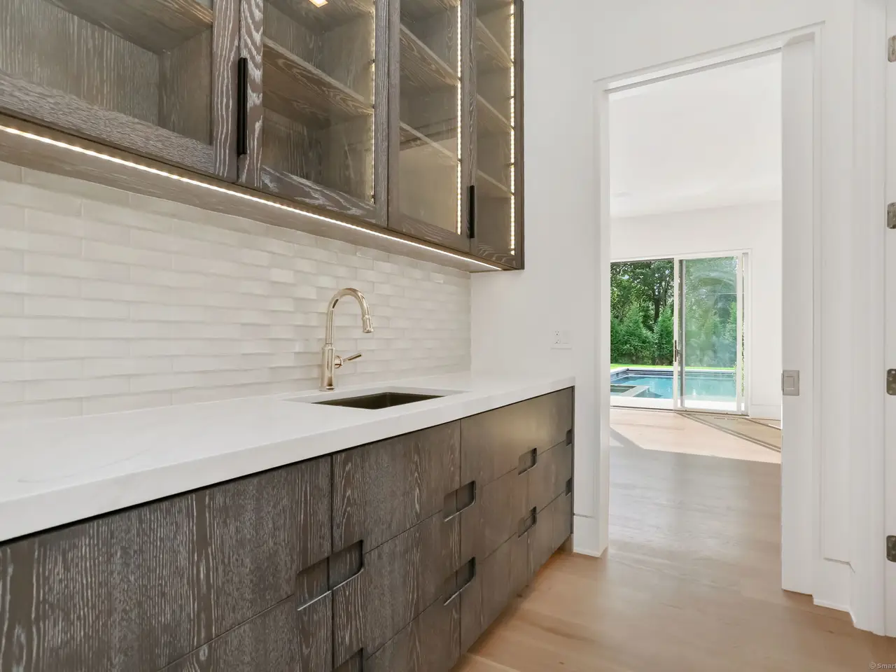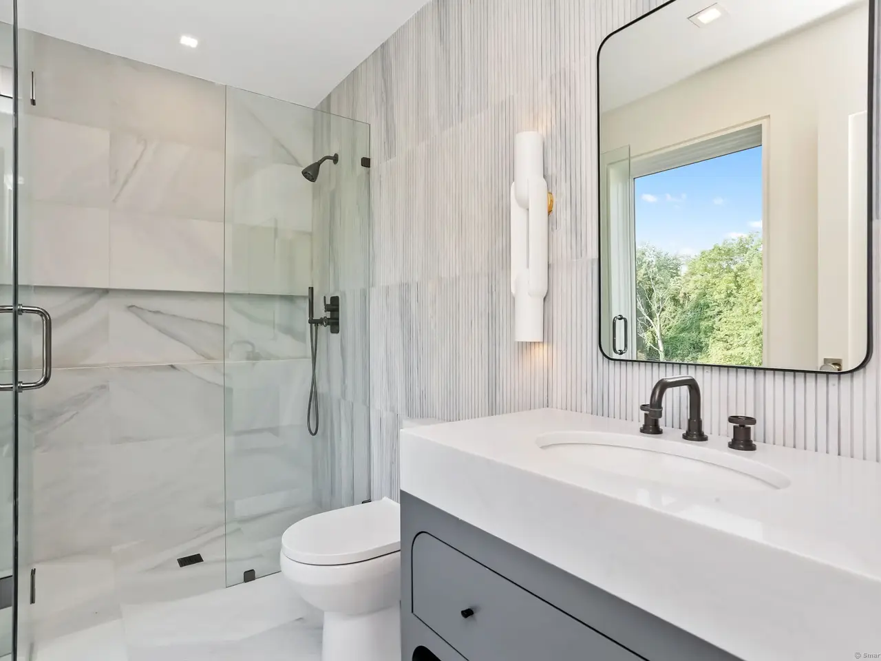 2025 New Consruction residence sits on 0.78 acres combines privacy, elegance, and timeless design just moments Greenwich Ave. Built by Hobi Award winner, RA Land Development, interiors by the acclaimed Laura Michael Design. This home features soaring ceilings, light-filled rooms, and seamless indoor-outdoor living. Highlights include a rooftop deck with Long Island Sound views that crowns the residence, a 3-car garage (+900 sq. Ft.) with 14-ft ceilings, and top-of-the-line finishes throughout. The Chef's kitchen features top-tier appliances, such as Sub-Zero, Wolf, Julien sinks. A grand center island, Custom cabinetry, and thoughtful storage, providing effortless daily living and elevated entertaining. The primary suite offers a double-sided fireplace, creating a warm ambiance enjoyed from both the bedroom and the spa-like bath. A private balcony extends the retreat, while the spa-inspired bathroom features a steam shower and radiant heated floors. 4 additional light filled en-suite bedrooms, share the same level, alongside a full laundry suite equipped with custom built-ins including steam/Iron drawer, a dry rack drawer, and stacked double washers and dryers. A 4-stop hydraulic elevator serves every level-from the versatile finished attic to a finished expansive lower level, you'll find a dedicated room for a gym, guest/au pair en-suite, and pre-wired theater/Golf simulator, ample space for a wine cellar, storage, and protected living space. This home is also equipped with intelligent Lutron lighting, a central vacuum system, integrated speakers on the main floor & primary, and a security system. Outdoors, enjoy a sparkling Gunite pool and integrated spa, hydraulic pool cover, complemented by a full property sprinkler system, and a backyard lined with evergreen trees for ultimate privacy. A rare opportunity for luxury living - delivering privacy, elegance, and sophistication in the heart of Greenwich.