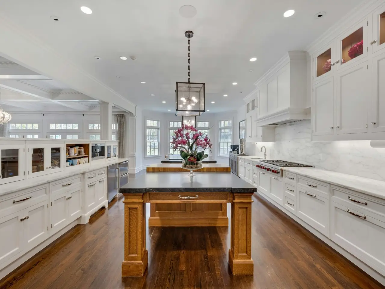 Tucked away on over seven quiet acres off prestigious Round Hill Road, this private estate offers a serene blend of luxury, space, and style. The main residence is complemented by a beautiful pool/guest house designed for effortless entertaining and resort-style living. At the heart of the home, a Christopher Peacock kitchen showcases statuary marble countertops and backsplash, double islands, and professional-grade appliances, all centered around a custom command station with built-in desk and storage. The kitchen opens seamlessly to a sun-filled family room with bespoke cabinetry, creating the perfect setting for relaxed gatherings. The first floor also features a front-to-back living room, elegant dining room, inviting home office, and private en-suite guest suite. The second floor features four spacious en-suite bedrooms, including a luxurious primary suite with two spa-inspired primary bathrooms and two expansive walk-in closets. A large laundry room and recreation/family room complete this level, offering flexibility for work, play, or relaxation. The lower level is fully finished and thoughtfully designed with a game room, lounge, gym, and media room, providing abundant space for leisure and entertaining. Outside, the resort-quality pool/guest house, designed in 2017 by renowned Greenwich designer Susan Alisberg, sets a new standard for leisure. A folding Nano wall blurs the lines between indoors and out, revealing a vibrant kitchen with snack bar and stylish lounge that open to the bluestone-surrounded pool. Whether hosting summer soires or unwinding in the evening breeze, this is an entertainer's paradise. Additional highlights include a Savant whole-house sound system, three-car garage, and 40-kW Cat generator. A rare offering combining timeless design, modern comfort, and absolute privacy in one of Greenwich's most coveted locations.