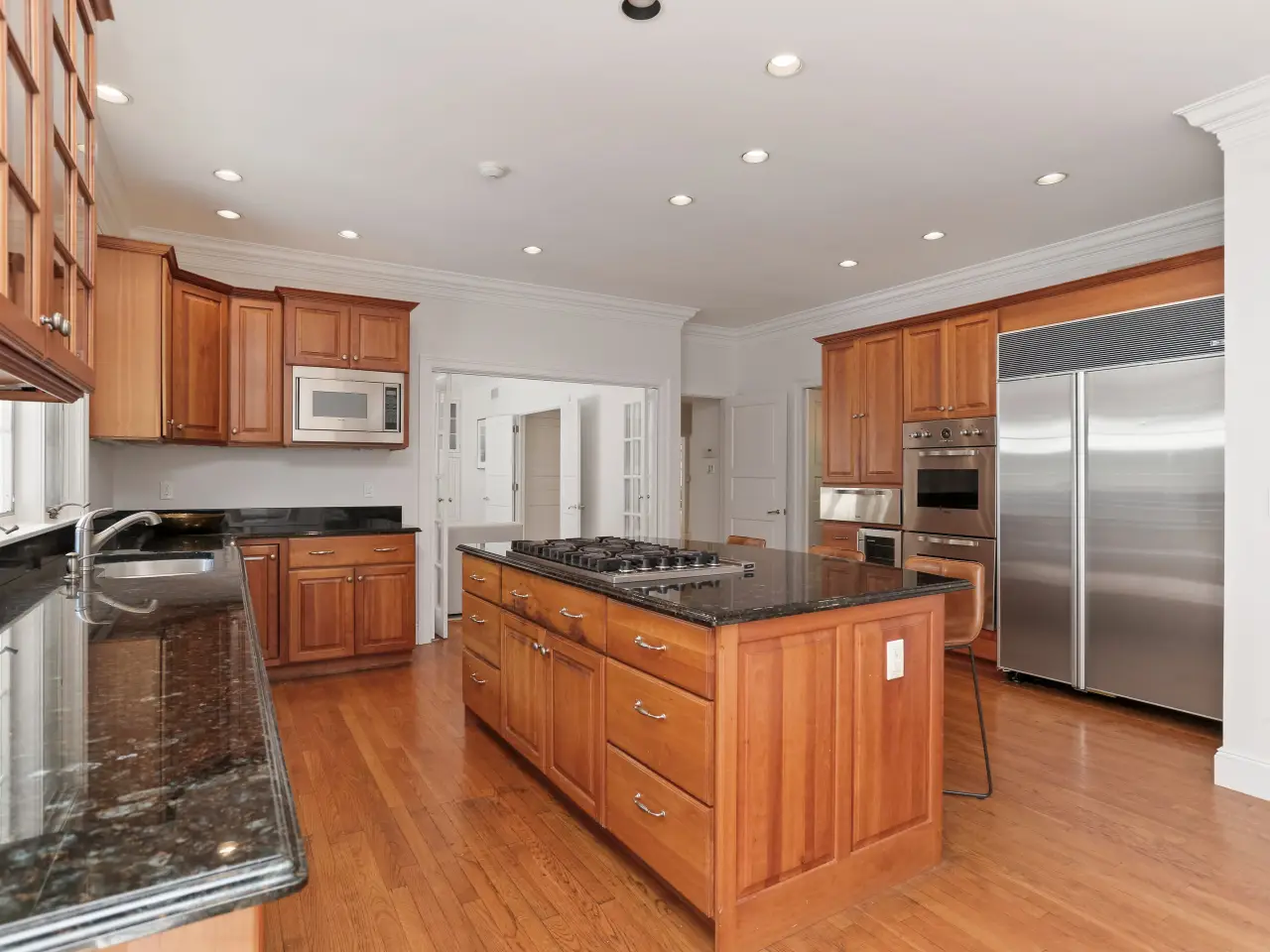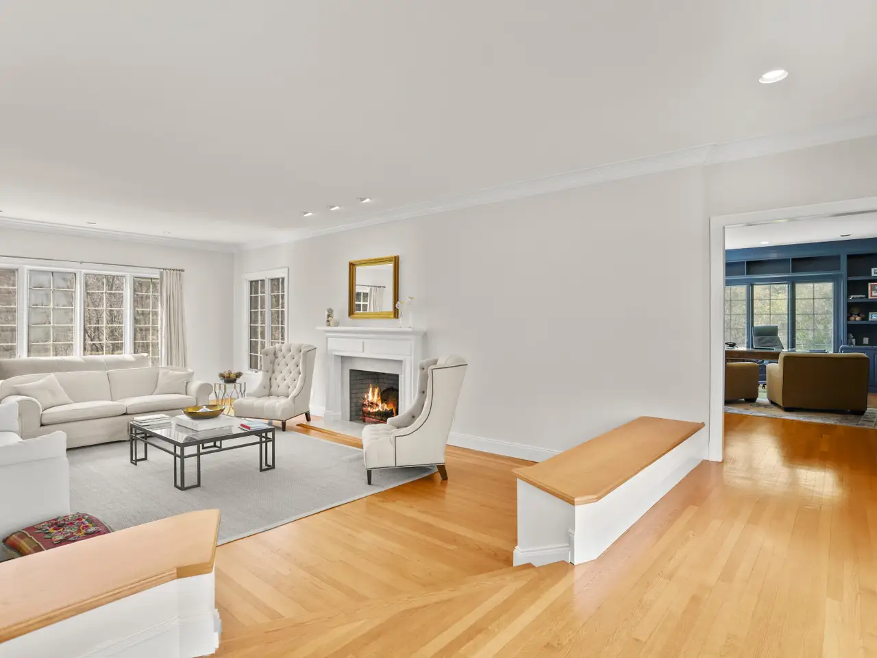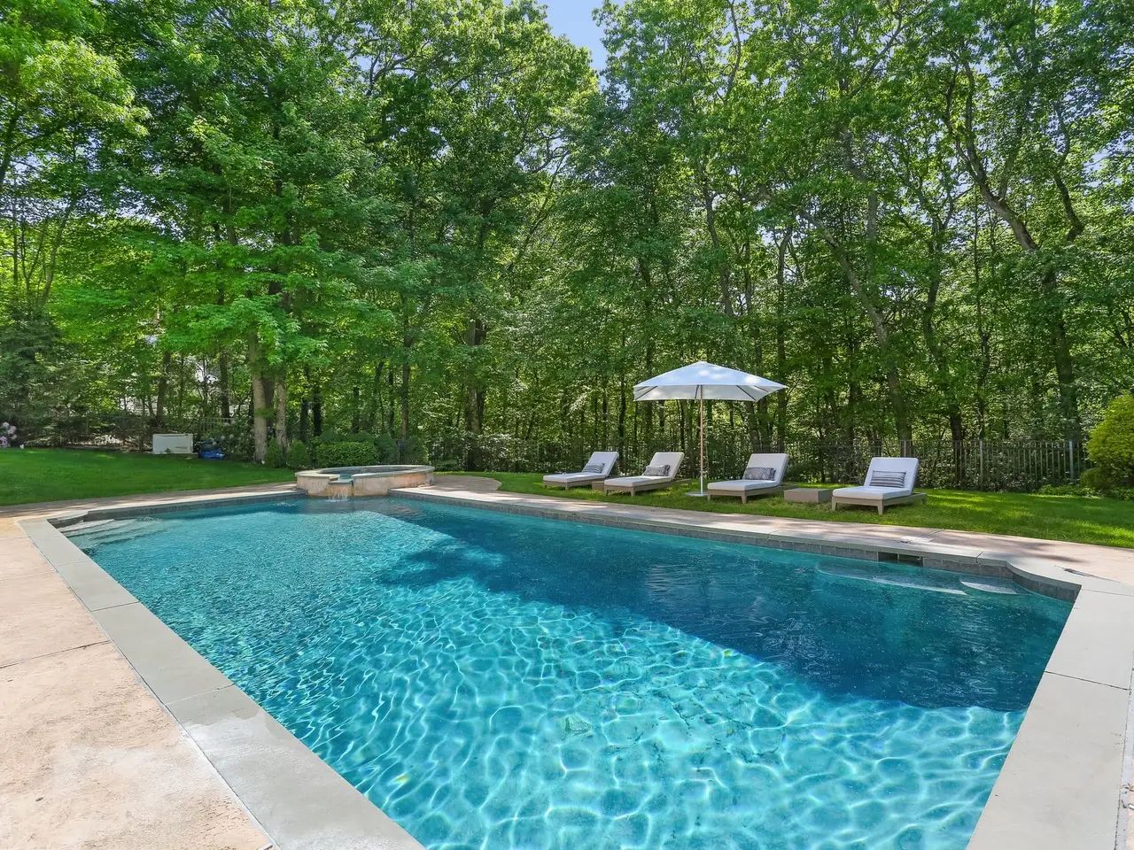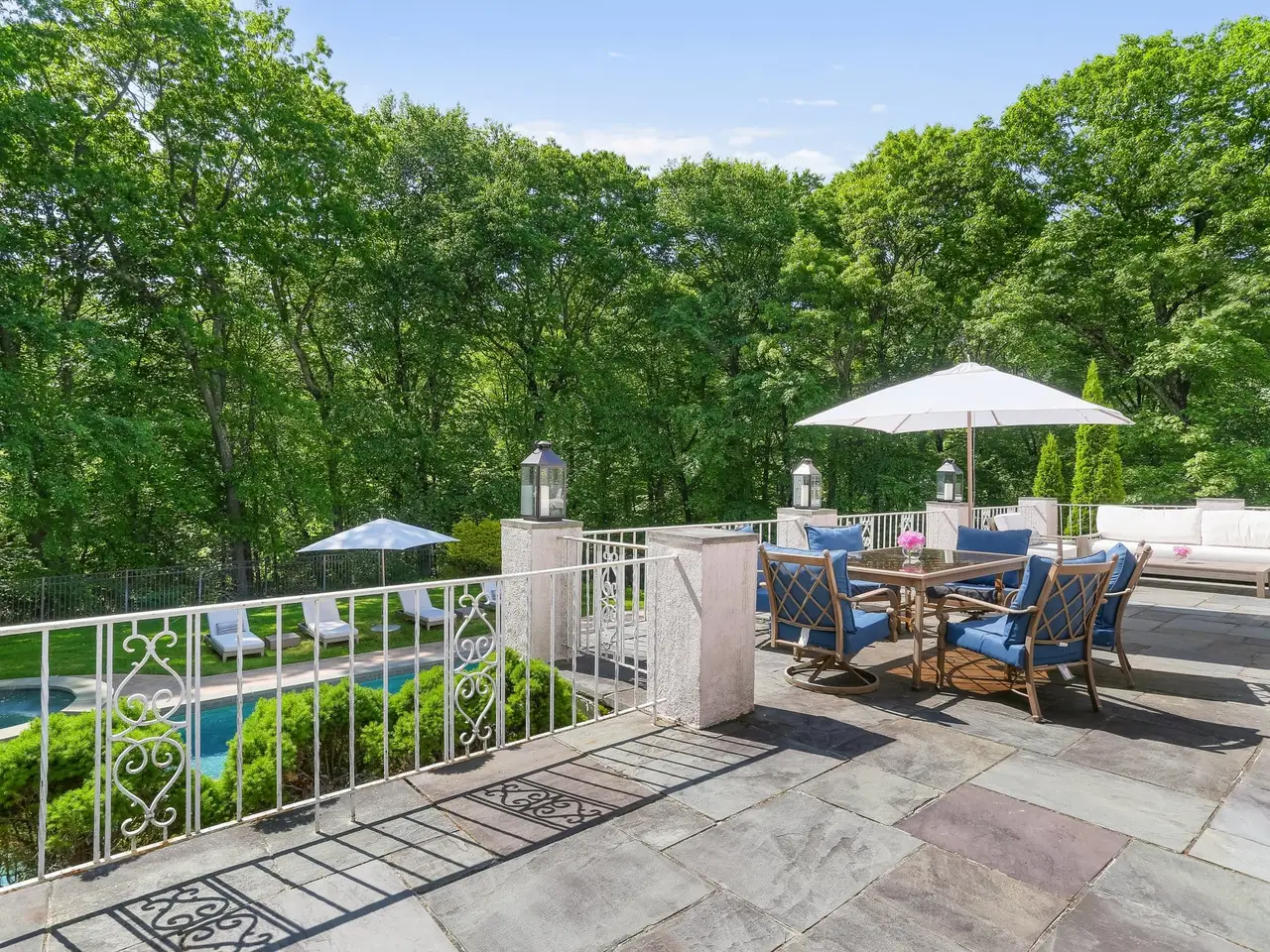 Stately Georgian brick on a private cul-de-sac with 2 landscaped acres, stunning pool and spa. Approach via wrought iron gates to a circular driveway. Elegant, beautifully decorated home boasts 5,613 SF (add. 1000 /- sf in finished part of garden level), high ceilings, hardwood and stone floors and 5 fireplaces. Spacious entry foyer leads to gourmet kitchen with Sub Zero, Viking and Bosch appliances, adjacent family room has French doors to expansive terrace. First level has formal dining room, living room, den/library and office. Upstairs primary suite with fireplace, walk-in closet and 2 primary baths, plus 4 additional bedrooms and 3 baths. Walk-out garden level features game/playrooms and bath. This welcoming home, bordered by conservation land, is perfect for relaxing and entertaining. 3 car garage. Close to schools/town.