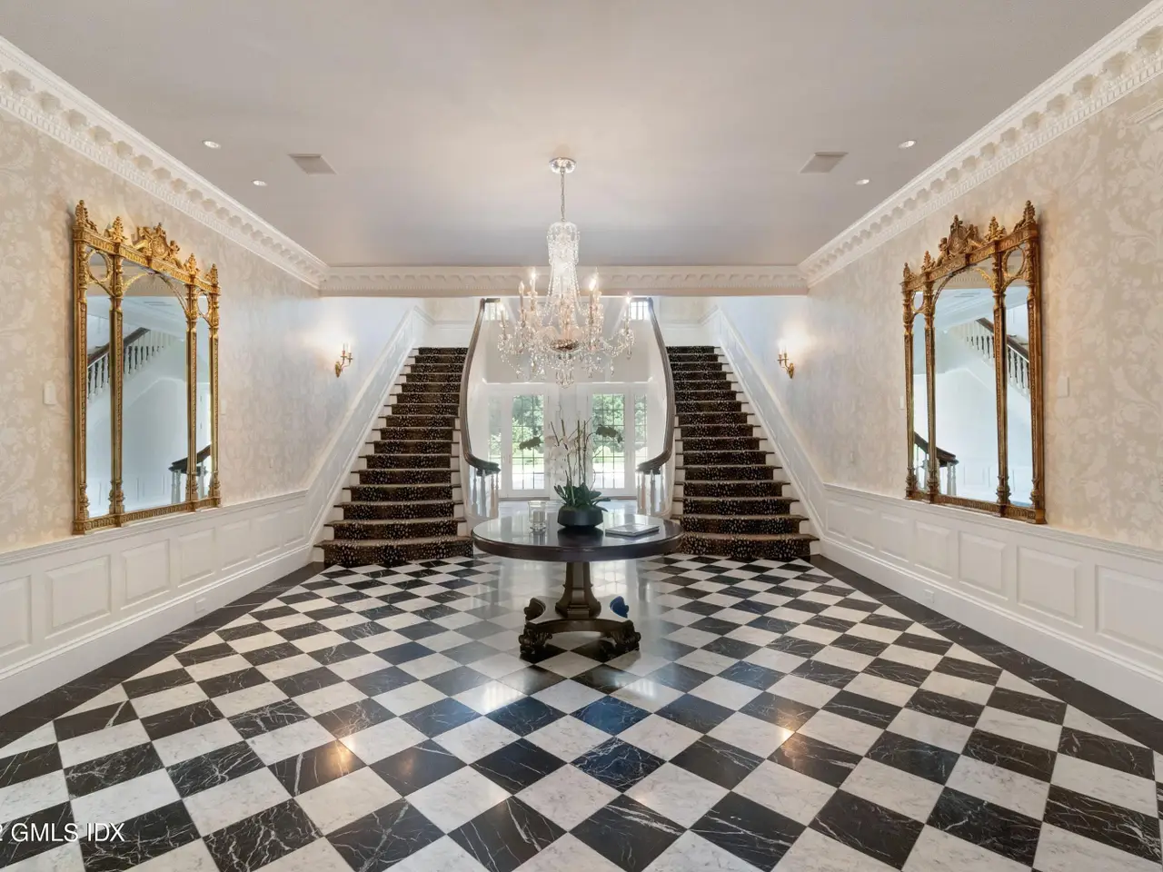 Truly unique 19-acre estate in the heart of mid country! Prepared to be captivated by this custom built masterpiece of design and craftsmanship. Completed in 2009, and offered to the market for the first time since completion, 97 Pecksland has an unrivaled combination of lot size, quality and privacy. Enter through the grand gated entrance and dramatic driveway to the elevated main house on the primary lot of 8.71 acres, with 2 further sep parcels of 5.3 and 5.13 acres for a total of 19.14 acres in the 2 acre zone. A substantial amount of mature trees balance wide open park-like spaces with lawns to the front and rear of the main home. Classically designed to show a high degree of architectural integrity and balance. The Grand entry foyer with double staircase set the tone for the living spaces within. Large informal and formal spaces blend for an ideal venue for large scale entertaining, both inside and out. First floor features an oversized living room / bar area, multiple office spaces, guest suite, dining room, kitchen / fam room and kennel room for 3 large dogs. 3 car garage off the mudroom along with 3 car port cochere for day to day parking. A car collectors dream awaits in the lower level with further parking for over 30 cars. Lower level also features a generous wine cellar, tasting room and golf sim. A huge primary suite with terrace overlooking the rear yard, primary sitting room and multiple bathrooms and walk in closets. 6 further fam / guest suites and large laundry on the 2nd floor. High ceilings on the finished third floor that include gym / play space with full bath. Sep pool house with 2 ensuite bedrooms, changing area, and entertaining space. Multiple pools / spa perfect for all ages. Further original structure used for staff housing. Unparalleled privacy and serene surroundings make this exceptional estate a must see for the most discerning of buyers searching for architectural grandeur, and exceptional amenities.