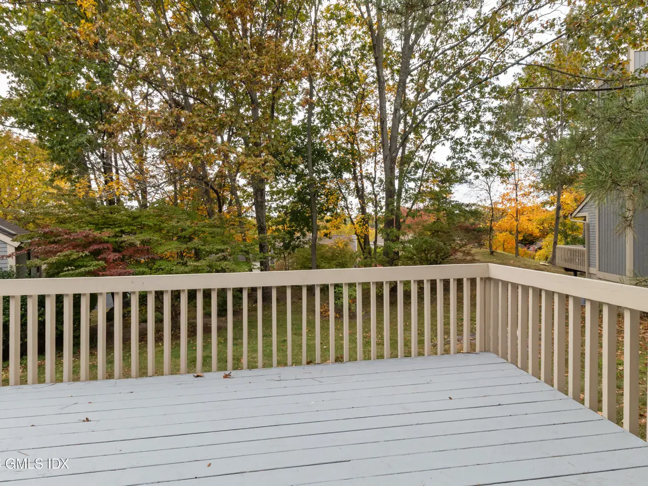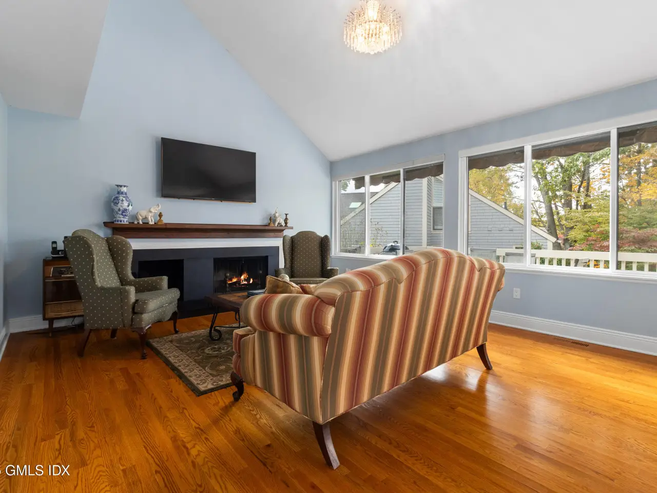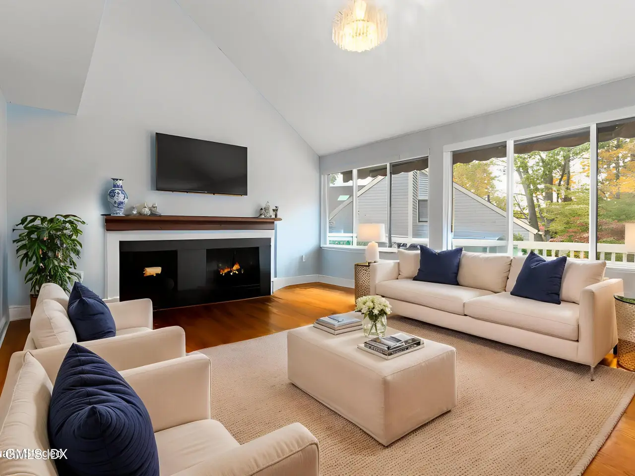 In one of Greenwich's most desirable communities, this updated West Lyon Farm home combines ease, comfort, and classic style. Hardwood floors throughout, a vaulted-ceiling living room with a wood-burning fireplace, and great natural light from its open floor plan and eastern exposure. The flexible layout offers 3 bedrooms and 3 full baths, plus a first-floor den that easily functions as a fourth bedroom or home office. The newly renovated first-floor bath adds a fresh, modern touch. Easy access with minimal stairs to the front door and from garage. Expansive deck overlooking quiet setting. Roof and skylights replaced in 2024! Enjoy Lyon Farm's sought-after amenities pool, tennis and pickleball courts, and clubhouse all set within a beautifully maintained, park-like community.