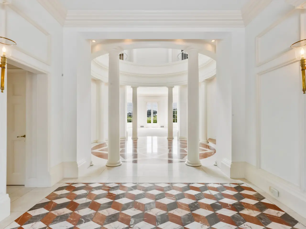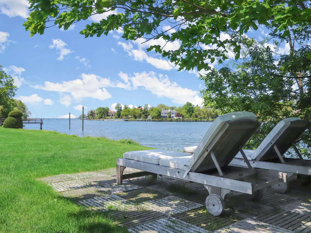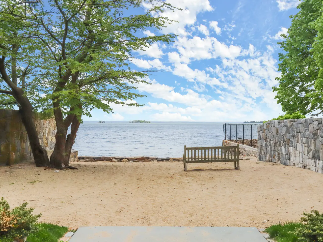 Waterfront estate in coveted Mead Point, one of a few gated communities in Greenwich, ready for the next chapter. Prominently sited on 2 glorious acres with 225' of shorefront, luxurious pool and expansive open lawns. Amazing privacy with the Windrose Association 5-acre park next door, which has dock with electricity & water. Seven ensuite bedrooms; main floor primary suite. Grand reception hall with rotunda introduces elegant formal spaces. One year's worth of work put into site elevation study, plans for renovation and plans for newly built 10,000-plus square foot home. Options galore to create your own waterfront homestead in a neighborhood with great upside potential.