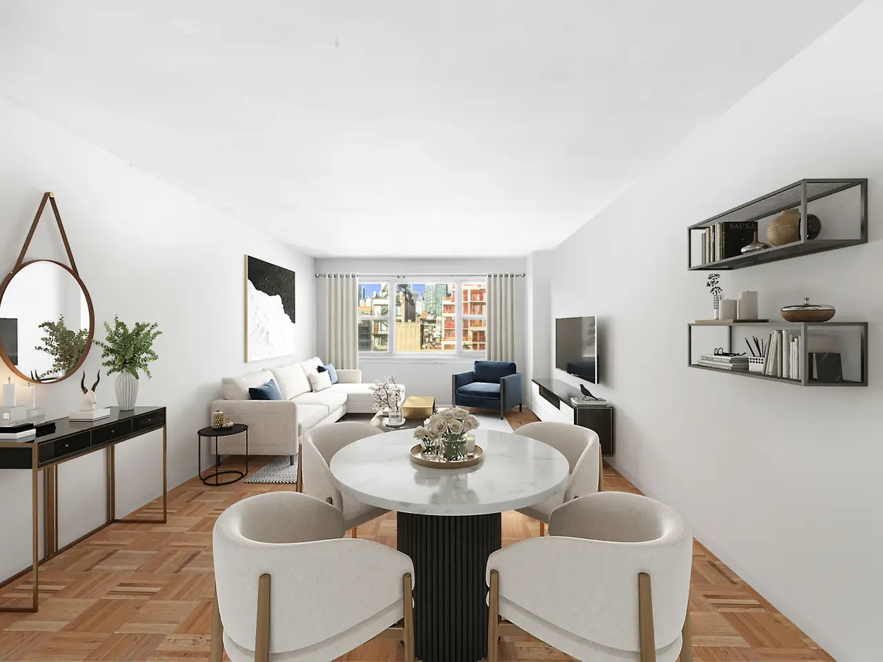 This high floor one bedroom apartment with sweeping views can now be yours! Bring your contractor and imagination to this exceptional terraced home. 12-W is a large one bedroom with North, South and West exposures, features an abundance of storage including 2 walk in closets, and a windowed kitchen and bathroom. The terrace faces south and west with dramatic views and sunsets over the protected Greenwich Village Historic District. This special opportunity is a rarity in the building and will not last long. Perfect as a primary residence or pied a terre. Some photos have been virtually staged. Located on idyllic West 12th Street and Sixth Avenue, The John Adams is a full service, smoke free, pet friendly co-op with 24-hour doorman, live in super, newly upgraded roof deck, bike storage and laundry room. Gifting and pied-a-terre allowed. Co-purchasing and purchasing in trust case by case. Sorry, no guarantors. 80% financing & subletting permitted 2 out of 5 years. Close by are many of New York's top restaurants, and some of the City's best shopping. The John Adams is right around the corner from beautiful parks and attractions such as Union Square, Washington Square Park, and The High Line. With all modes of public transportation right outside your door, this is the place to be.