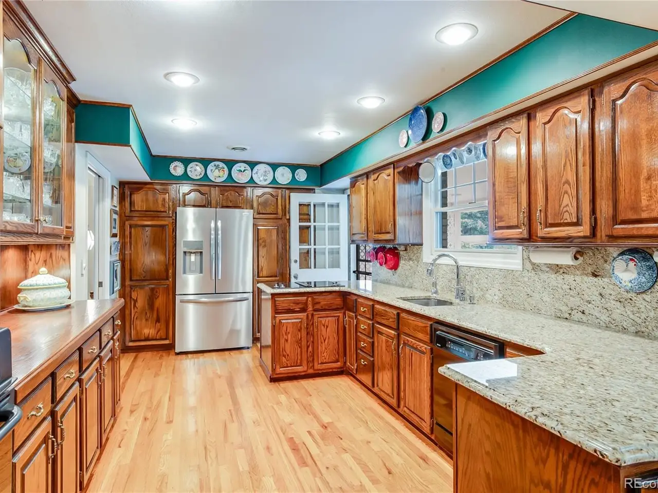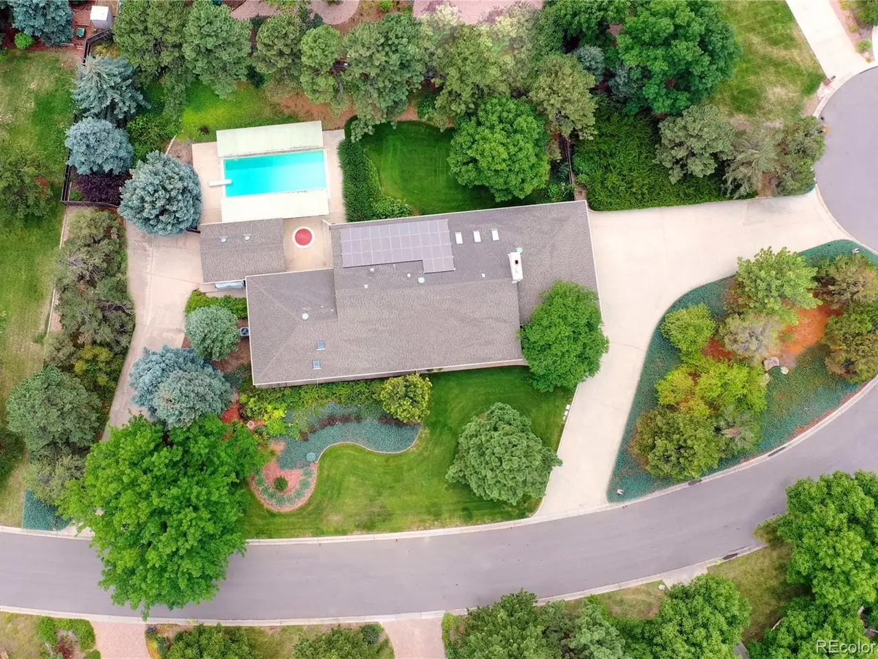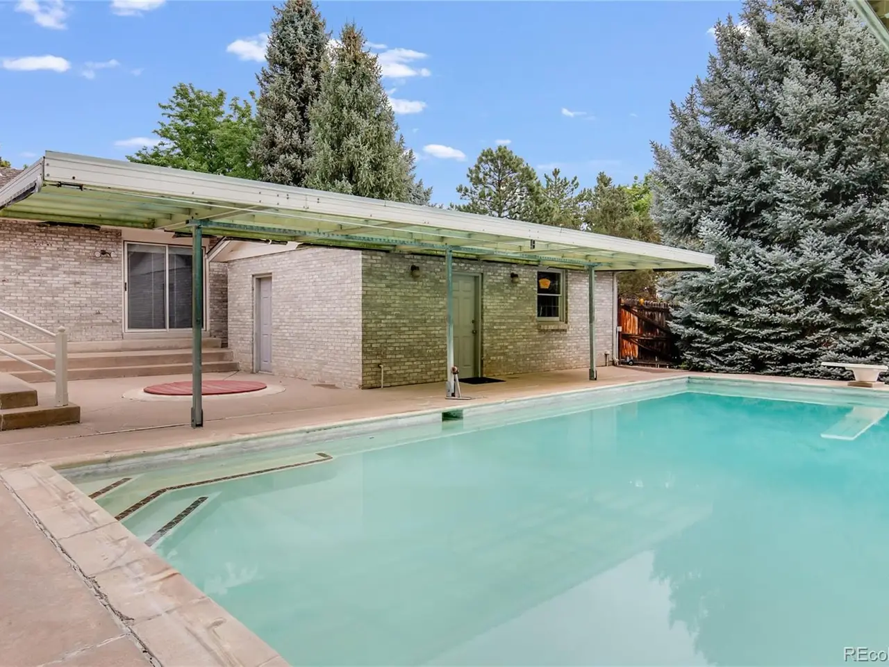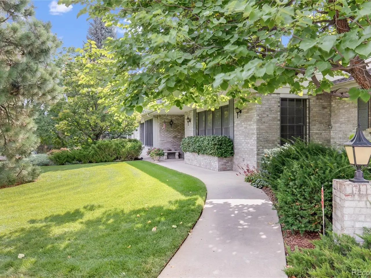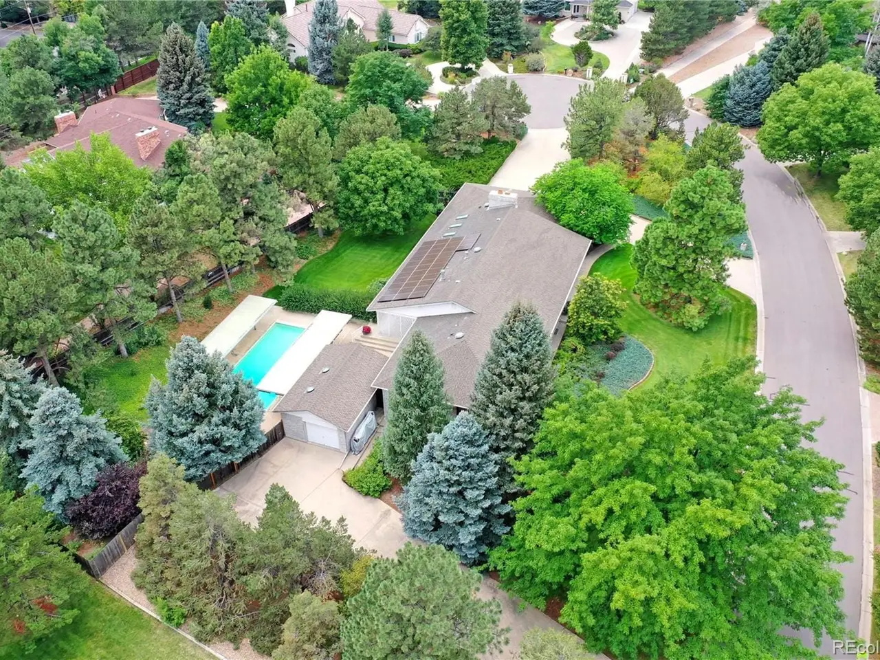Welcome to 2600 East Long Drive, Greenwood Village - a rare enclave of custom-built homes on a coveted cul-de-sac, just steps from the Highline Canal Trail, Trader Joes, TJ Maxx, Post Office, Starbucks and countless walkable amenities including Aspen Academy. This all-brick ranch has been lovingly maintained by the same owner for over 34 years. Sitting on a mature, tree-filled .80 acre pool lot, the home offers dual driveways, a three-and-a-half-car side-load garage, plus a unique detached garage or a pool house - now a full workshop (26x17) with endless possibilities for a studio or bonus outbuilding. Inside, the homes heart is the vaulted family room with exposed beams, a dramatic pitched ceiling with beautiful skylights, and a brick-surround gas fireplace. Hardwood floors run throughout most of the main level, which also features a formal dining room for special occasions and an eat-in kitchen (24x9) with custom solid wood cabinetry, thick granite counters and newer appliances. There are three over-sized main level bedrooms and the lower level has a large 4th bedroom with full bath. The lower level great room is spacious and bright with an area formerly used for billiards which is now being used as a lovely private office with numerous clearstory windows allowing tons of natural light. The unfinished portion of this basement is brimming with possibilities and ready for the next buyer to finish off if extra square footage is needed. Step into your own private oasis with a sparkling in-ground pool (38x19), complete with diving board and retractable shade covers, a generous covered patio off the kitchen, and full fencing for comfort and privacy. An added perk, Owned solar panels means big savings on energy bills. This home is the perfect blend of character, functionality, and location - ready for its next chapter.