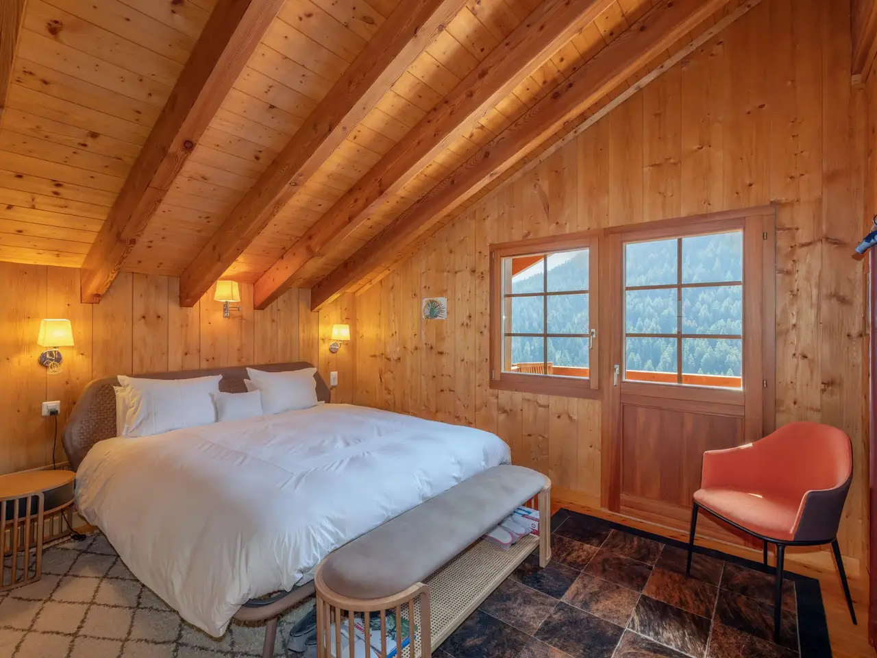 Nestled on a mountainside in unspoilt natural surroundings, Chalet Soleil des Alpes is spread over three levels, designed to welcome families in search of tranquillity, authenticity and rejuvenation. Its architecture subtly blends alpine charm and contemporary comfort, in a soft, enveloping atmosphere. From the moment you enter, the lower level is an invitation to well-being and sharing. Two bedrooms, each with en-suite bathroom, join a welcoming wellness area with Jacuzzi and hammam. A well-appointed wine cellar, laundry room and utility room complete this practical and convivial floor. The first floor is dedicated to communal living. The living room, centered around majestic soapstone, radiates a comforting warmth, perfect for winter evenings with family and friends. The open, fully-equipped kitchen flows seamlessly around the dining room, creating a space that's both functional and intimate. From this level, access to the terrace and balconies allows you to extend your moments of relaxation with unobstructed views over the rooftops of the old village and surrounding peaks. Upstairs, two en-suite bedrooms offer a haven of peace. The atmosphere is hushed, bright and always connected to the surrounding nature. Every space has been designed to promote rest, privacy and comfort. A family haven par excellence, Chalet Soleil des Alpes offers a privileged living environment, where you instantly feel at home. A place designed to enjoy the mountains through the seasons, with authenticity, serenity and the alpine art of living.
