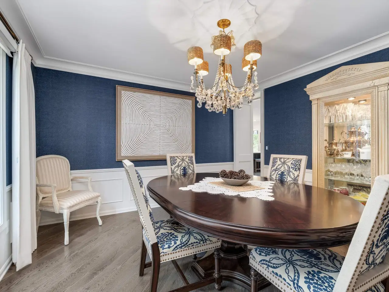 Welcome to 54 Belle Meade, not just a home but a recently renovated sanctuary looking for its new family. With 5 bedrooms, 4 and a half bathrooms, custom Milennium Kitchen and bathrooms, this tastefully designed home is key turn ready and waiting for you. On the top floor you'll find the primary suite with a large bathroom area with built in vanity, and multiple closets. A secondary bedroom also has a built in vanity with light up mirror. A third bedroom has soaring ceiling and beautiful chandelier. Down the staircase to the first floor you will find your office, guest bathroom, piano room with built in bookcases and a new bay window. From there you move across the main entry hall into the tv room that has a large built-in tv all with more bookshelves and a wet bar for entertaining. The tv room leads into the spacious and bright custom Millennium Kitchen. Here you will find high end appliances from Wolf and Subzero. The counters are Cristallo, the cooktop is induction, a double oven, and microwave is integrated into the island, with 4 freezer drawers and a pantry. Look closely and you will see a hidden coffee station with special cabinets that pop-out for storing kitchen and speciality items. There is a hidden cabinet with a tv over the oven as well. Off the kitchen is an oversized laundry room with a service door to the garage and courtyard. The laundry room has multiple closets, a laundry shoot and conveniently located full bathroom. The entrance to the basement is located in the laundry room. Here you will find a second custom kitchen, workout room with floor to ceiling mirrors, another full bathroom, flex room currently used as an art room, second laundry, with ample storage. The basement is a special place for entertaining with the ability to have a mutli-generational family live as well. Nest and C02 detectors have been installed throughout the home, as well as recessed lighting, and a Sonos sound system through the first floor, garage, and patio. In the front courtyard is a basketball net and installed flood light for night time games on the court, in the back an oversized patio for entertaining in you own secluded oasis. Back here you will also find a permanently affixed grill connected to the home's gas line. This stunner is not to be missed.