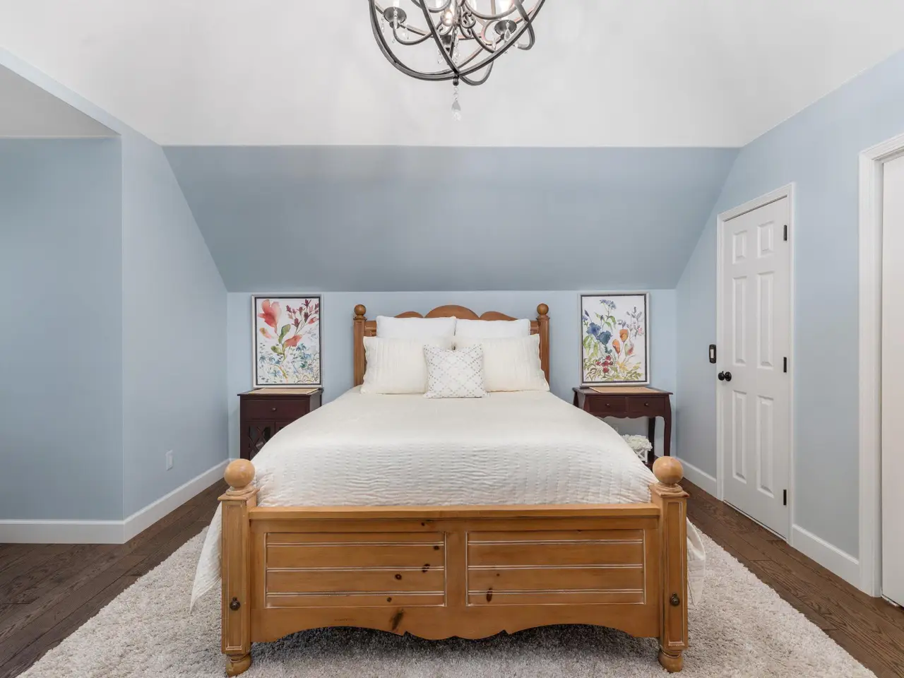 Soaring ceilings with chandelier in third bedroom