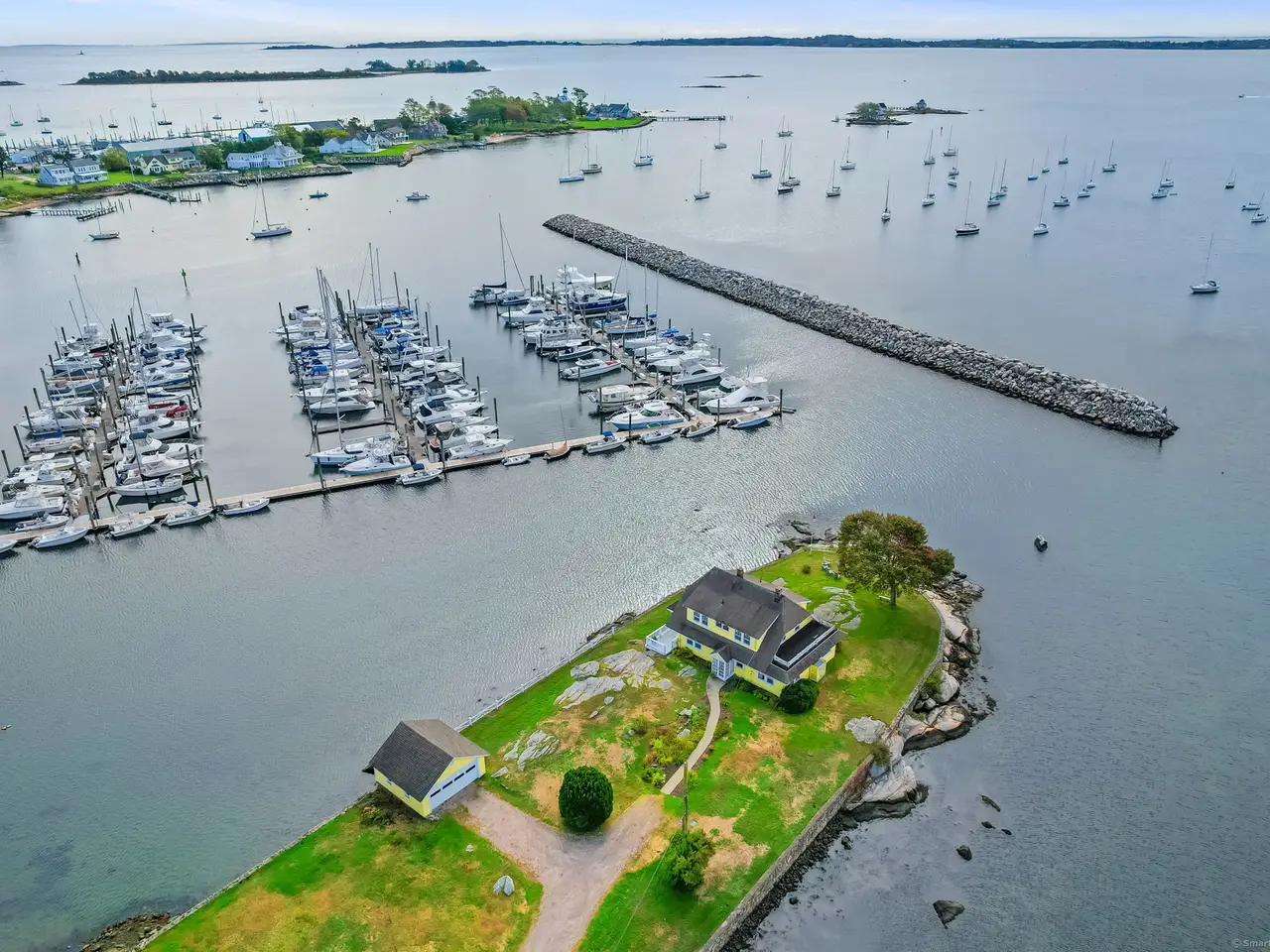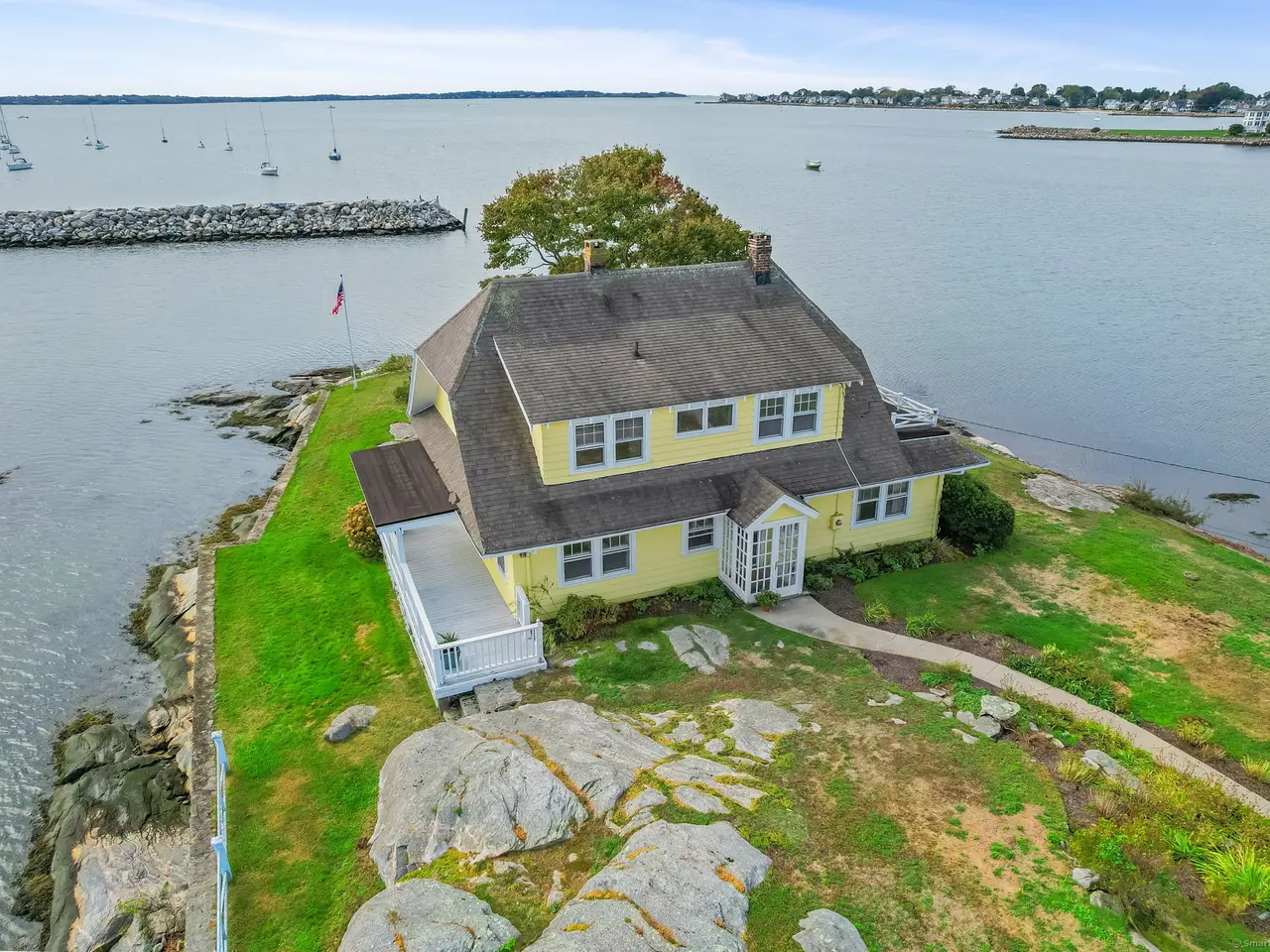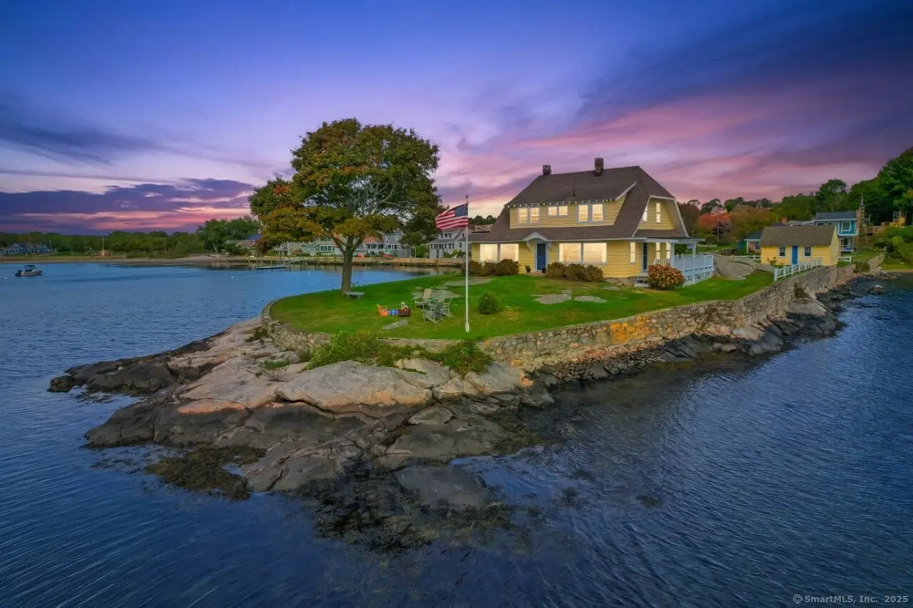 RARE OPPORTUNITY! Perched proudly on its own peninsula and surrounded by water, this 1920 Dutch Colonial Revival home offers a unique blend of timeless architecture, historic charm, and breathtaking natural beauty. With its signature gambrel roof, gabled dormers, and classic symmetrical design, the home enjoys sweeping views over Fishers Island Sound from nearly every room. Lovingly maintained by the same family since 1984, this residence reflects care, pride, and authenticity throughout. Just a stone's throw from Esker Point Beach and Noank Village, and only minutes to Groton Long Point, Downtown Mystic, Stonington, and more. This location combines coastal tranquility with convenient access to shopping, dining, and marinas. With ample square footage, 2 car garage, and an unparalleled waterfront setting, the property offers endless potential to create your forever home. Ideally positioned between New York City and Boston, this remarkable home embodies the best of New England's coastal living; a true sanctuary where history, character, and scenery come together in one extraordinary place.