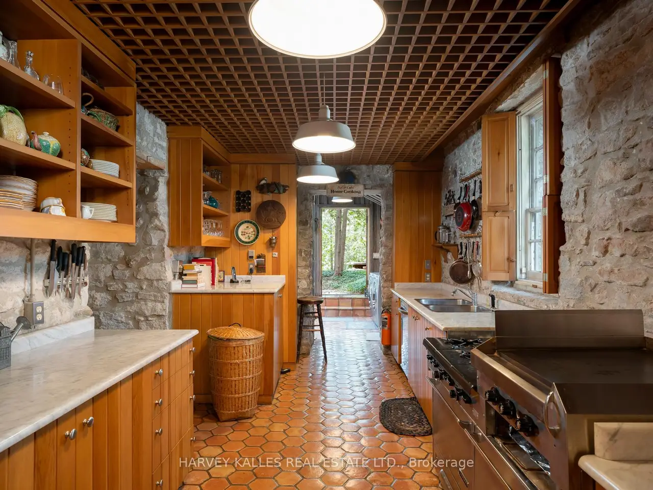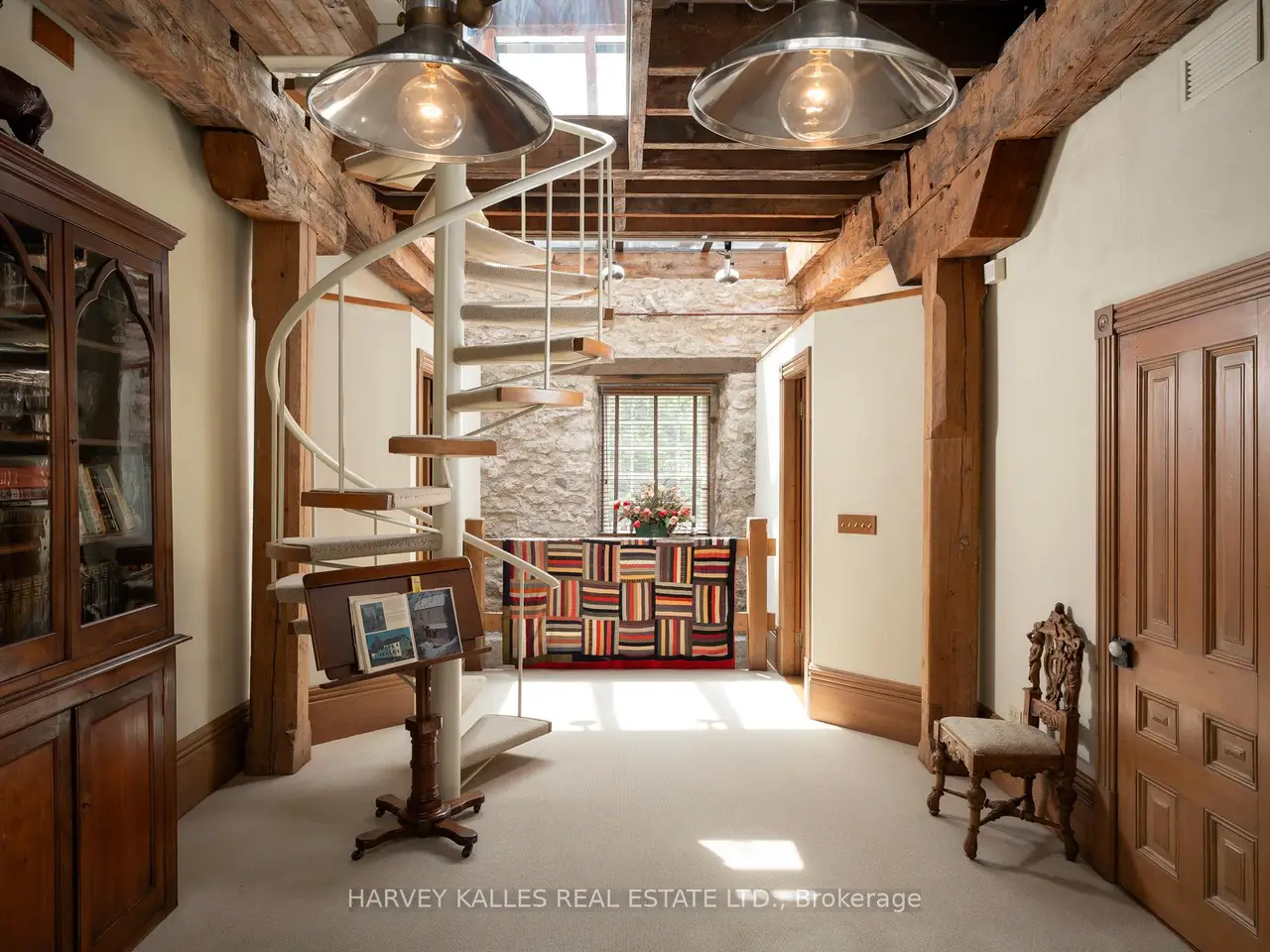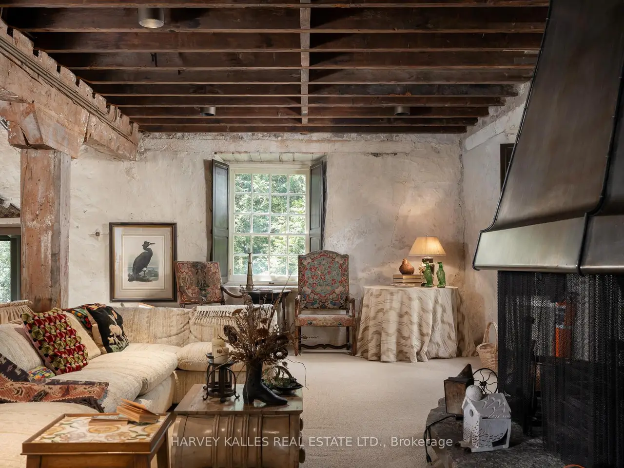 Solidly built with enduring stone walls, 'The Mill' stands as a testament to craftsmanship by acclaimed architect Mandel Sprachman. Tucked just beyond the charm of Main Street and yet enveloped in its own timeless tranquility, this extraordinary residence feels lifted from the pages of a French storybook - a serene oasis that seems to exist outside of time. Set on over 1.8 acres and bordered by a private waterfall and the meandering Eramosa River, the property invites exploration and reminds you of the quiet wonder of nature. This is not just a house, but a way of life. The interior balances warmth and function, with 4 bedrooms and 6 bathrooms. The top-floor primary suite offers a secluded retreat with treetop views and luxurious proportions. At the heart of the home, an expansive great room with exposed wood beams and a bespoke fireplace that feels both grand and intimate. The adjacent kitchen - with walk-in pantry and garden views - opens to a sun-washed stone patio, where morning coffee or evening wine feels like a ritual. A glass-wrapped dining room draws the outdoors in, offering the kind of light-drenched calm found in the villas of Luberon. Downstairs, the lower level walk-out echoes the homes stonework roots, while outside, an inviting inground pool and a picturesque barn add a sense of rustic elegance and possibility. From the sunroom or the poolside terrace, the waterfall glimmers through the trees - a gentle, ever-present soundtrack. It's easy to forget the world here, though Rockwoods cafes and boutiques are just steps away, and downtown Guelph is a mere 15-minute drive. The home is fully serviced for water and utilities. 243 Main Street is not just a home - it is a lifestyle. A rare and enchanting retreat for those drawn to stillness, beauty, and a life well-lived.