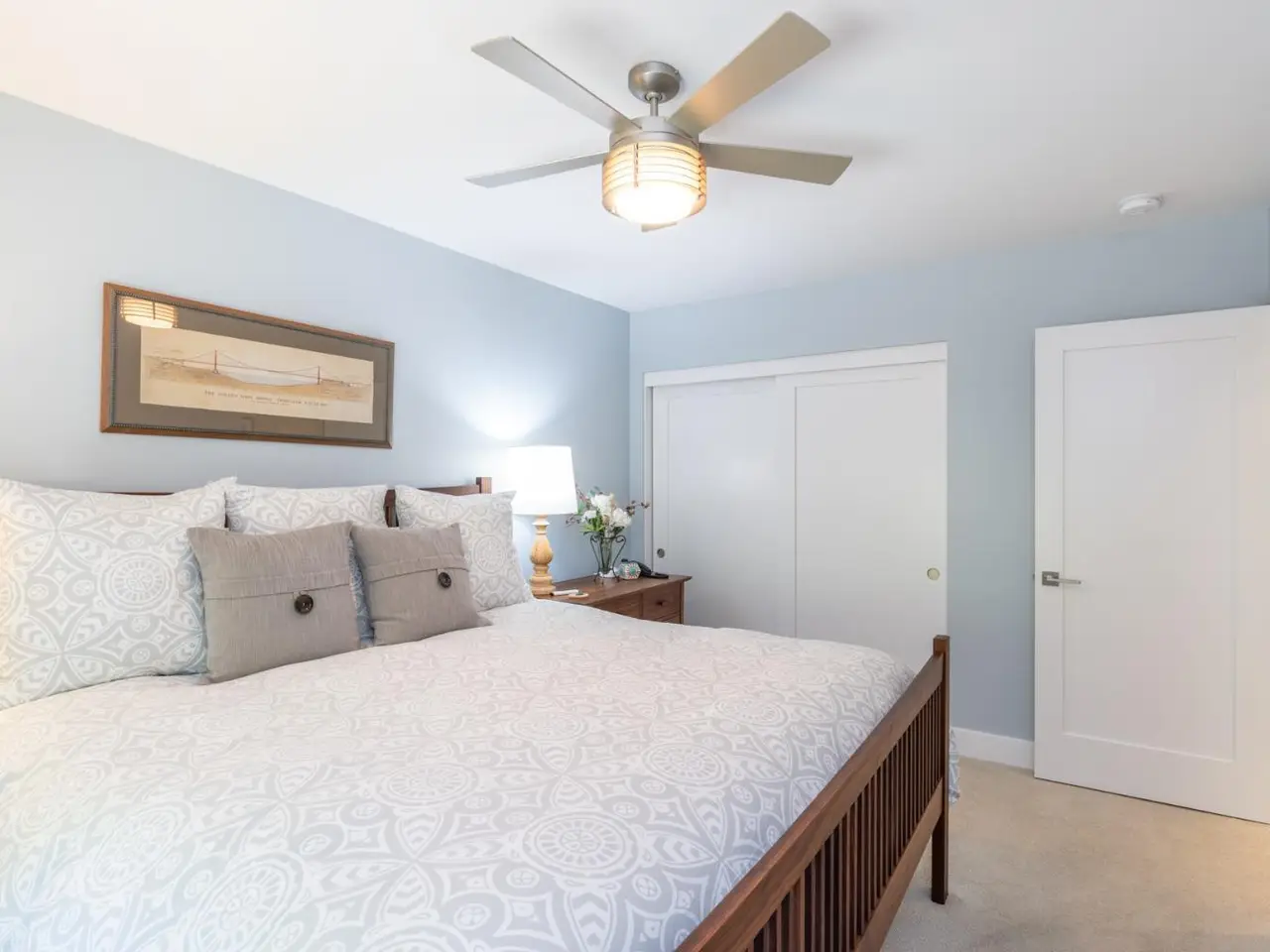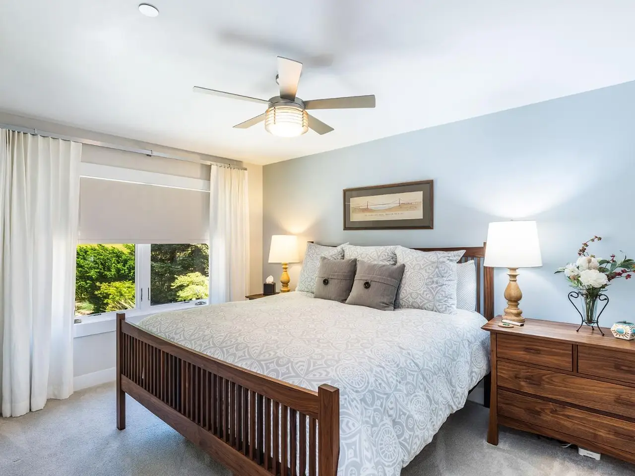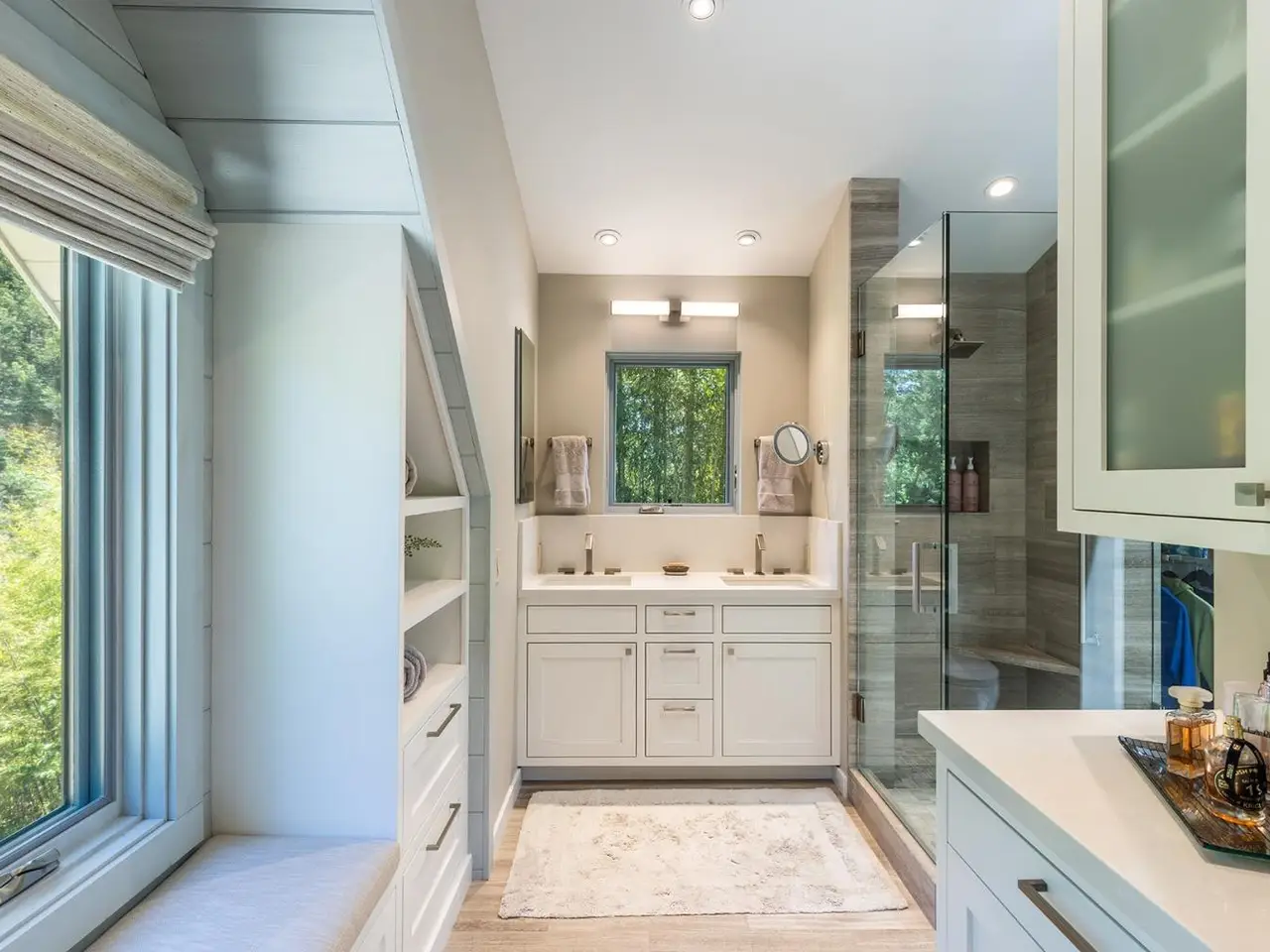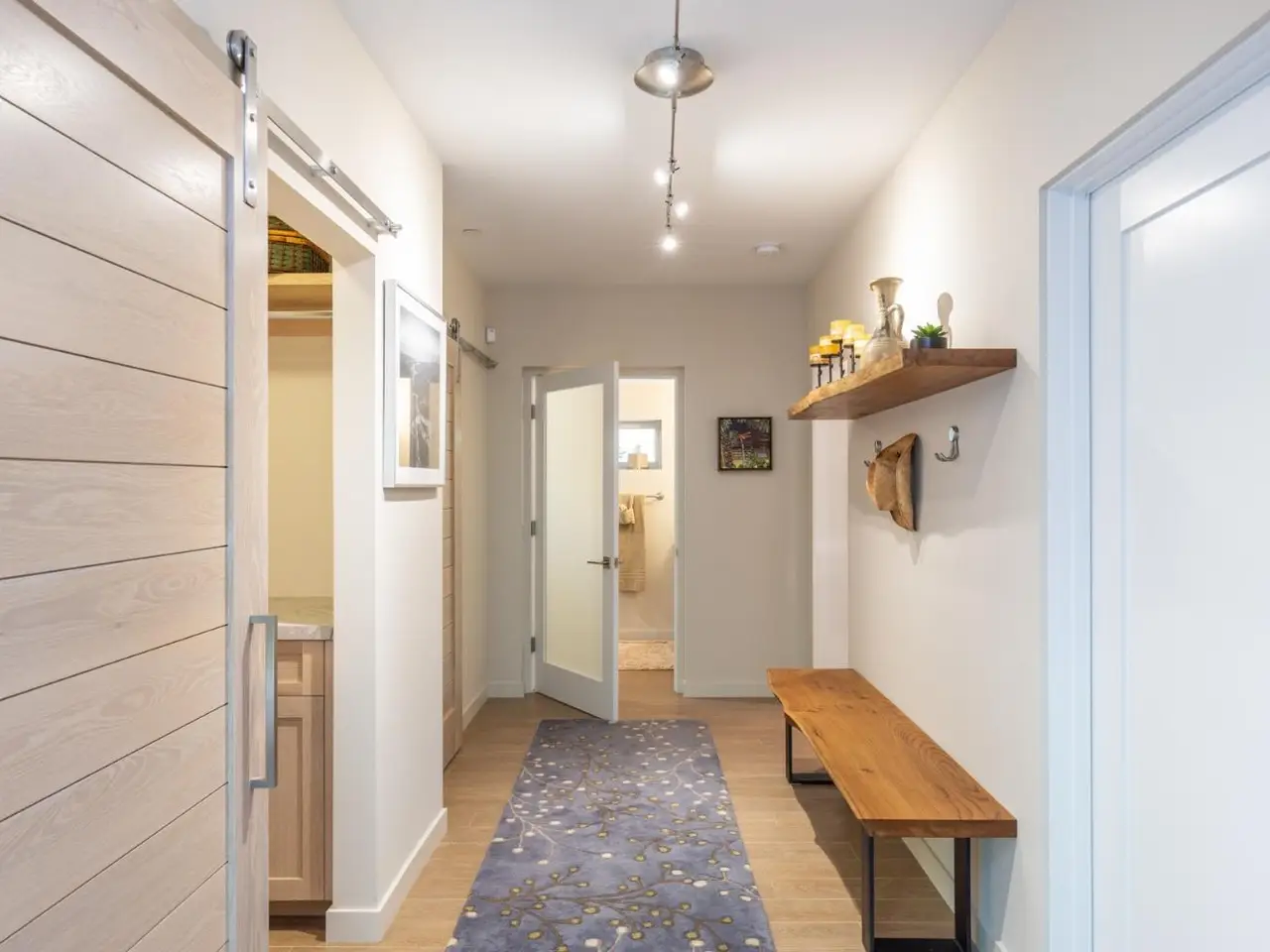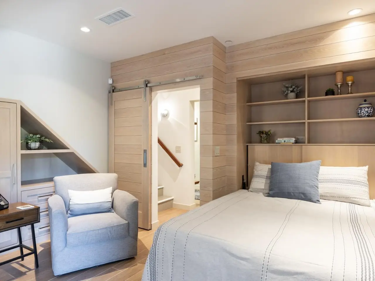 Escape to your own private oasis in this exquisite luxury property, where priceless views of the Korbel vineyard and the majestic mountains of the Russian River Valley set a breathtaking backdrop. Furnished with items meticulously curated by the acclaimed Zeitgeist Sonoma, every detail is expertly coordinated. Custom-built features and high-end finishes adorn every corner, making this home truly unique. The second-floor main level is ideal for entertaining friends or unwinding on the expansive covered deck while taking in the beauty that surrounds you. On the ground floor, a versatile fourth bedroom could be used as a game room or second living space, complete with a built-in Murphy bed and direct garden and spa access. Upstairs, the primary suite boasts a resort-like bath and walk-in closet. Outside, explore an expansive garden featuring artfully arranged garden beds, lush lawn, generous shaded patio, a firepit, craft studio, sauna with stone-walled shower, various fruit trees, and thriving olive orchard. From energy-efficient upgrades to advanced water filtration systems, no detail has been overlooked. Just a short walk from downtown Guerneville, yet nestled away from the hustle and bustle, this property offers a vacation-like setting you can cherish every day.
