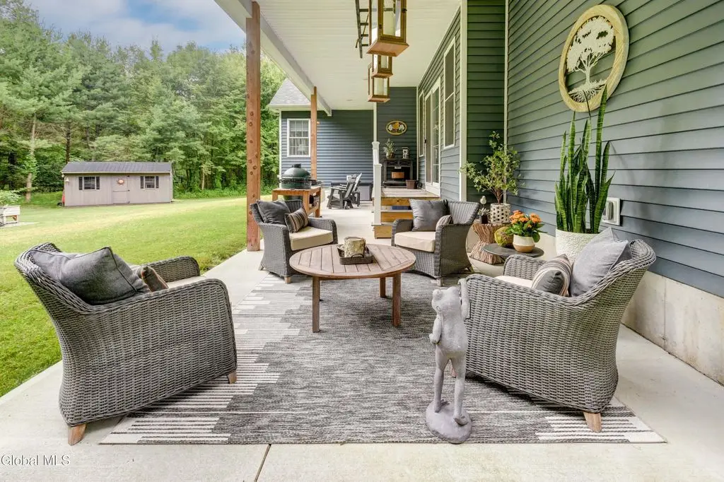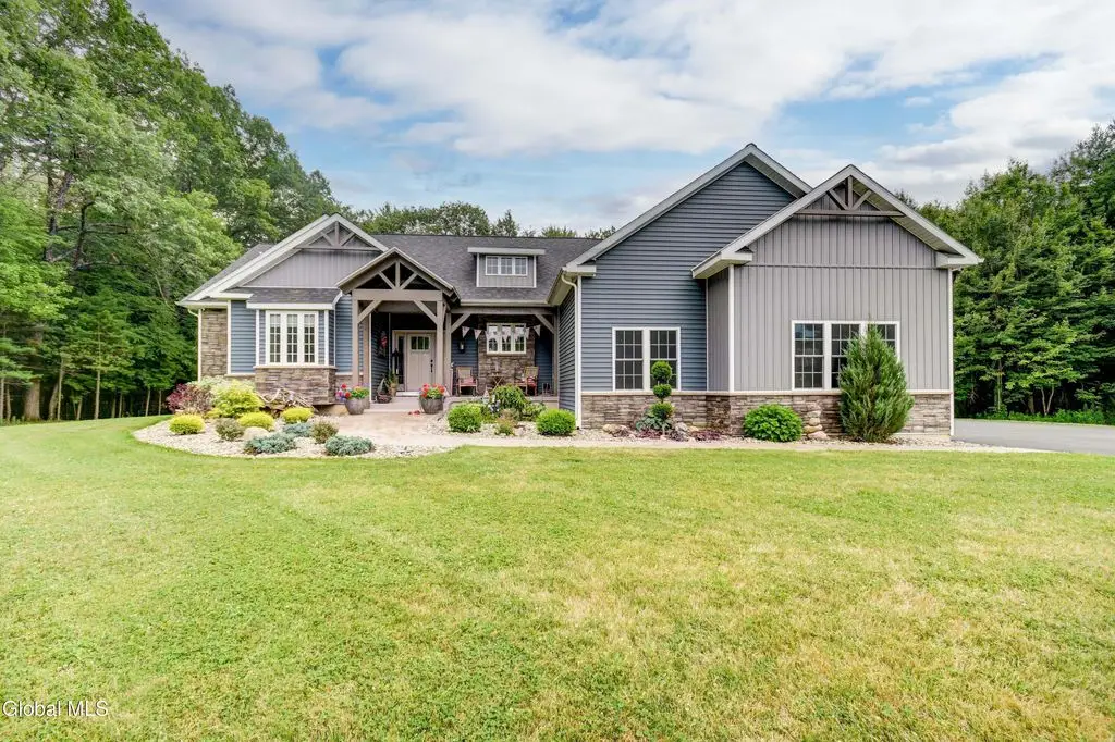 Set on 1.5 private acres in the Guilderland School District, this 1,800 sq ft 3-bed, 2-bath custom Craftsman-style ranch offers comfort and space in a serene setting. A long private driveway leads to a charming one-story home featuring a warm living room with gas-burning fireplace, spacious eat-in kitchen, and generous bedrooms. Enjoy the convenience of public water/sewer and an oversized 2-car garage. Surrounded by trees, yet minutes to shopping, schools, and highwaysC/B?B=this home blends quiet living with everyday access. Love the outdoors look no further, while staying close to home. Featuring beautiful wildlife & nature just outside your windows. a Complete wooded surrounding, A gardeners dream, driving an abundance of beauty & nature in your home Environment. ft. Perennial Garden & ...
