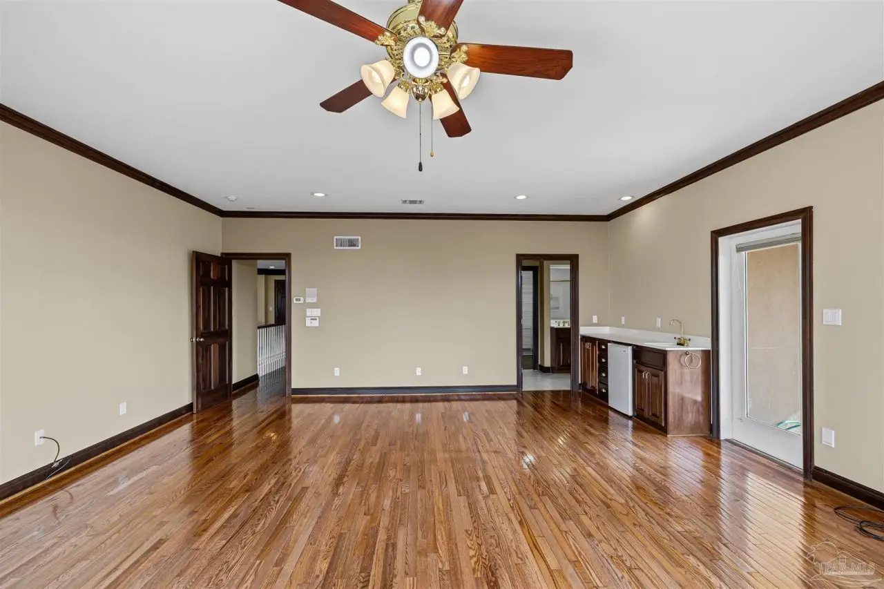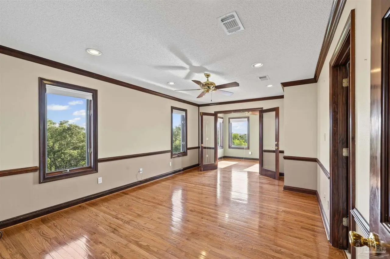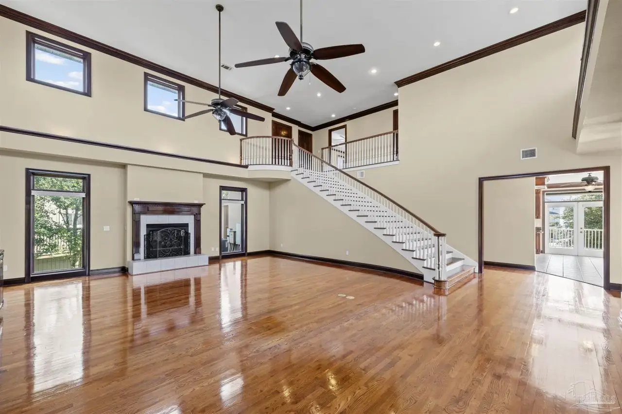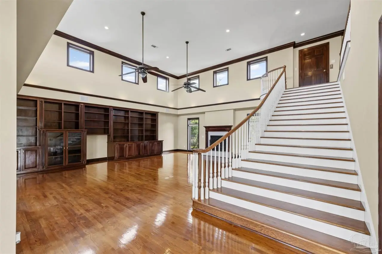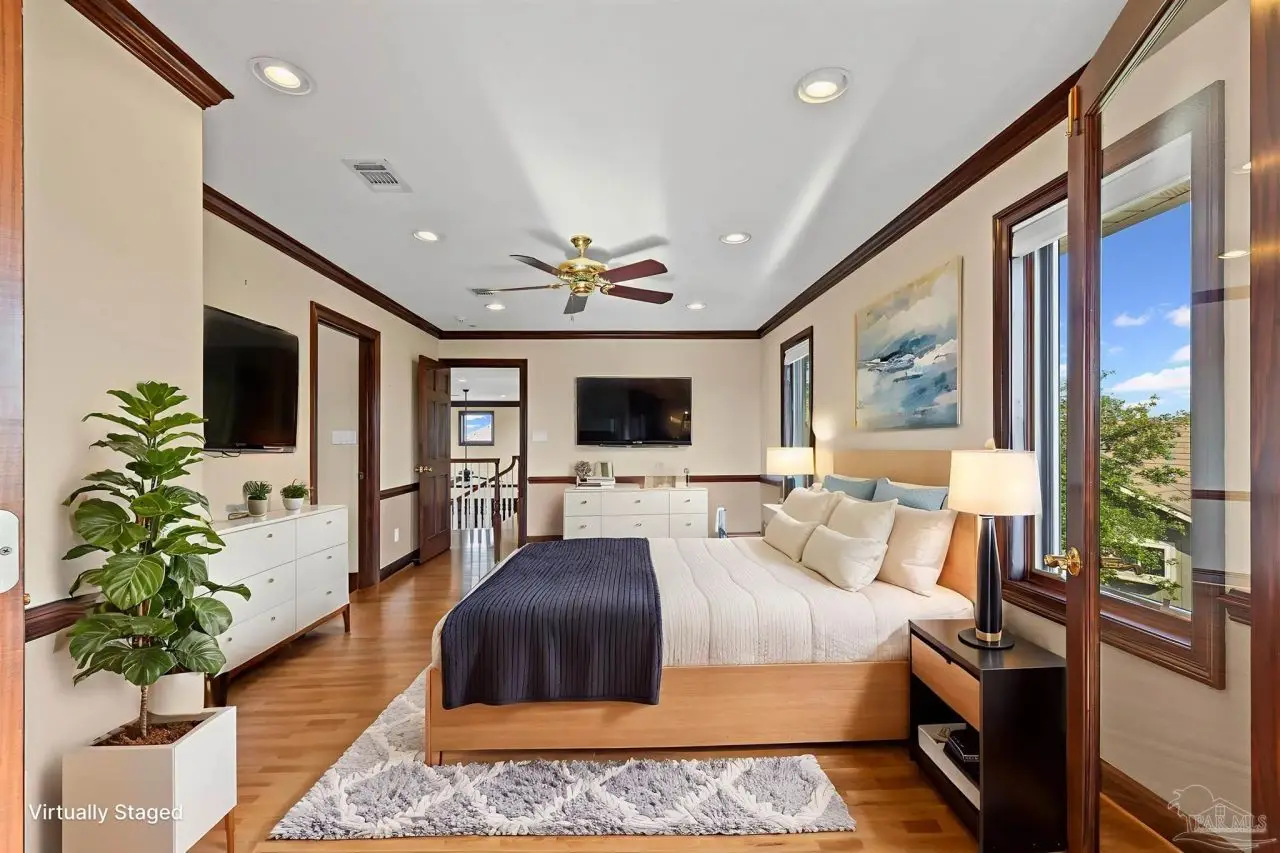 Experience the best of Gulf Breeze living in this stunning home located in the heart of Gulf Breeze Proper. Natural light pours through two levels of windows, illuminating the grand living room with its soaring ceilings, gas fireplace, and impressive grand staircase. The open-concept design creates a seamless flow into the expansive kitchen, an ideal space for family gatherings and entertaining. The kitchen boasts an abundance of cabinetry, stainless steel appliances, granite countertops, an island with breakfast bar, and a charming dining area framed by a large window offering serene water views. The first floor also features a spacious guest bedroom with a private bathroom, perfect for visitors. Upstairs, the luxurious primary suite offers a generous sitting area with a view of the water. The primary bath is outfitted with a walk-in closet, dual vanities, a jetted tub, and a separate shower. An additional upstairs bedroom, complete with an en-suite bath and water views, provides comfort and privacy. Additional highlights include an elevator, 2020 roof, security system, and a massive 4+ car garage with a workshop area. Situated just moments from Shoreline Waterfront Park, boat launch facilities, and a recreation center with a children's waterpark, and only a short drive to the pristine beaches of Pensacola, this home perfectly blends luxury, convenience, and coastal living.