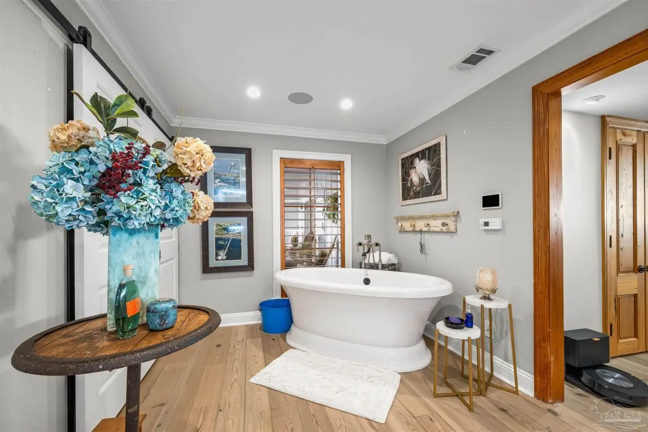 This is a rare opportunity to own a premier deep-water estate in Gulf Breeze Proper. Situated on 1.5 acres with over 200 feet on the Intracoastal Waterway, this stunning property features a rare 20x50 ft deep-water boat slip (9 ft depth) with flow-through dock and sun deck, a private white sand beach, and expansive green space. The home offers luxury throughout, including a great room with expansive windows showcasing breathtaking water views, a vaulted ceiling, and a gas fireplace. The custom kitchen is equipped with high-end appliances, a wet bar, and a dining area overlooking the Sound. The primary suite offers panoramic water views, deck/hot tub access, dual walk-in closets, and a spa-style bath with a soaking tub and separate shower. A main-level guest suite includes a private bath and patio access. Upstairs, you'll find two additional bedrooms, two full baths, and a large multipurpose room with a fireplace and French doors for added privacy. Additional features include a 3-car garage with a climate-controlled, large bonus room and half bath, plus a 200x200 ft vacant lot across the street included in the sale. Exceptional views, luxury finishes, and rare boating access make this a one-of-a-kind waterfront offering the ultimate Florida lifestyle.