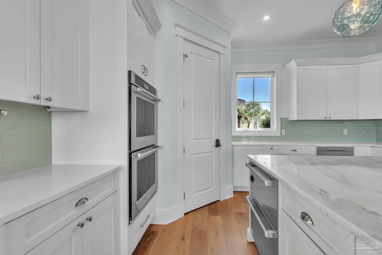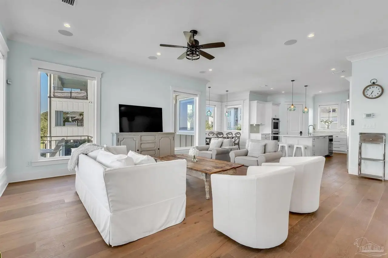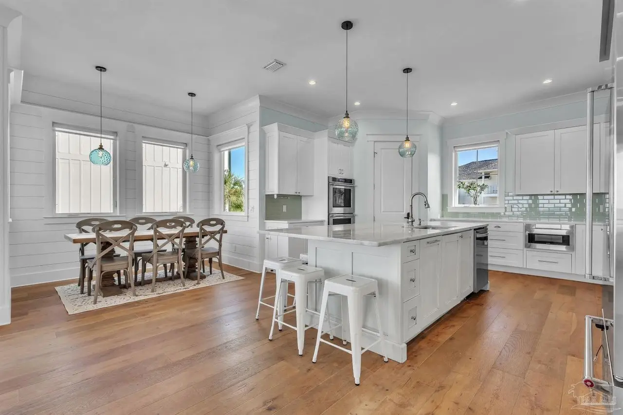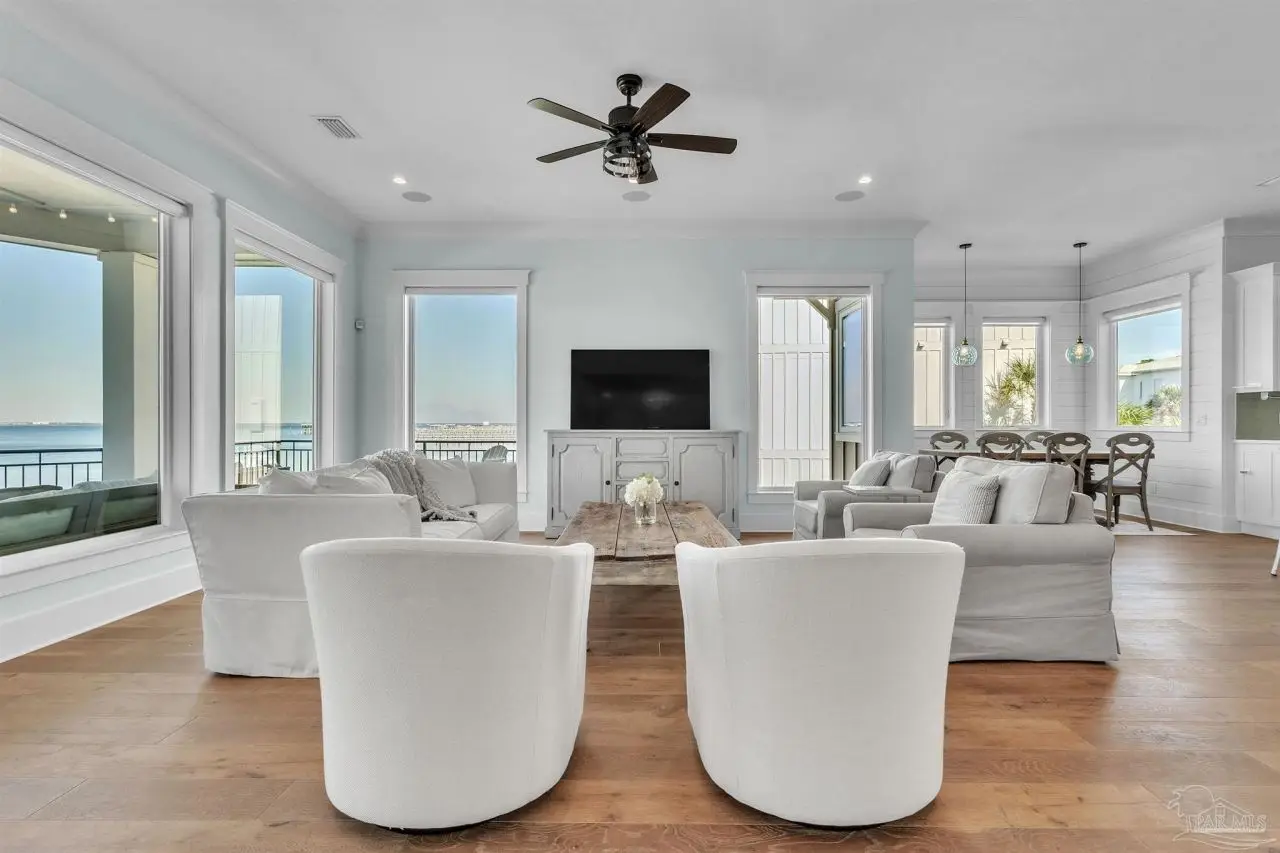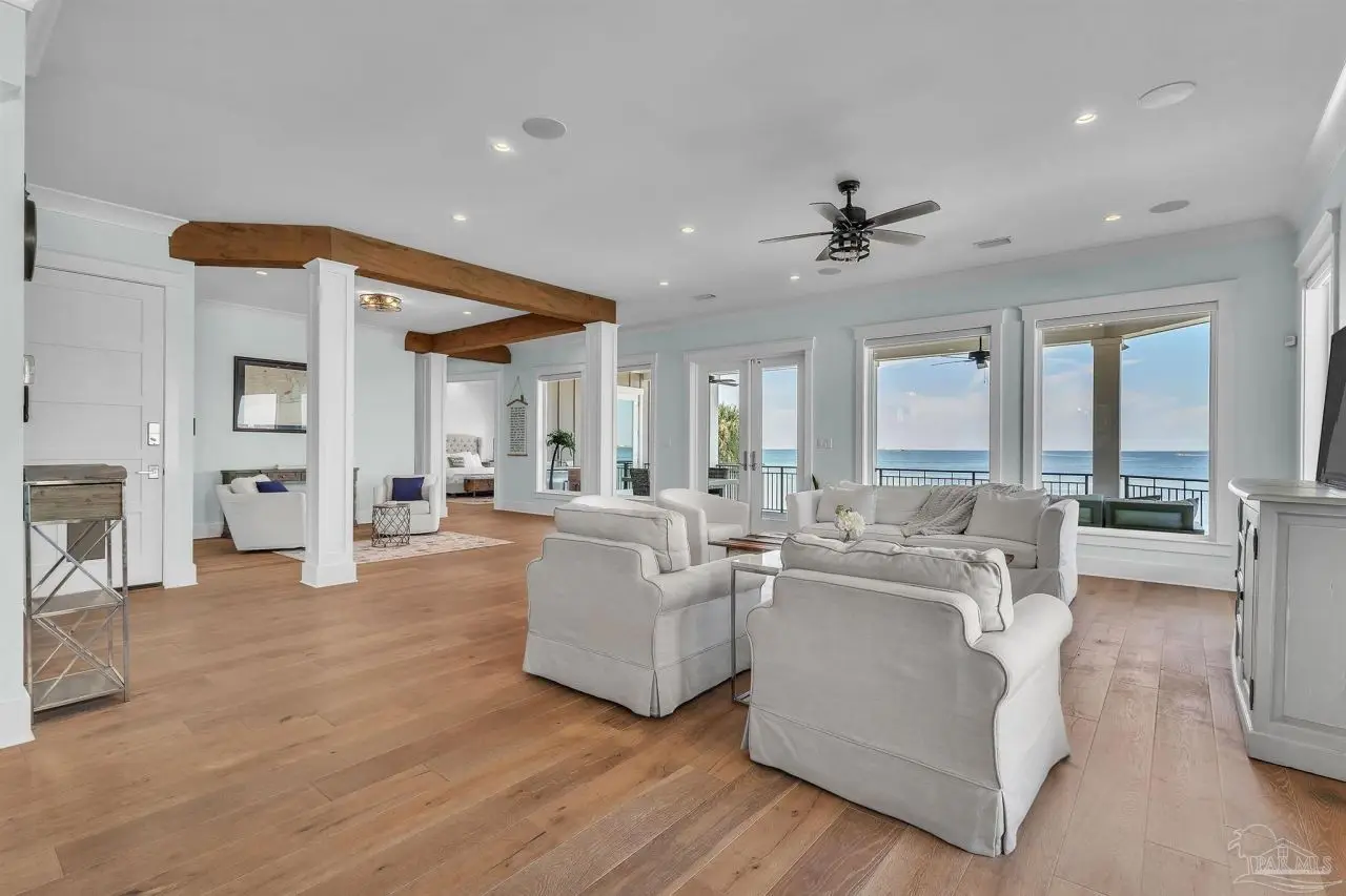 Welcome to a rare opportunity in the private, gated community of Deer Point Village. Perfectly positioned in Gulf Breeze Proper, this home places you just minutes from all the conveniences locals treasure from top-rated schools and shopping to the world-famous white sands of Pensacola Beach. Living here means enjoying the charm of a close-knit community while never sacrificing comfort or accessibility. From your covered deck, you'll have front-row seats to the Intracoastal Waterway and even the beloved Blue Angels as they soar above. The backyard is nothing short of a retreat, complete with a heated saltwater pool, a private man-made beach, and community dock truly make this a dream setting for both fishing enthusiasts and those who simply love the water. The home itself was designed with both elegance and livability in mind. A grand foyer opens to a bright, open-concept living space where floor-to-ceiling windows and high ceilings capture the water views and fill the home with natural light. The gourmet kitchen is as functional as it is beautiful, offering double wall ovens, granite countertops, an oversized island, multiple refrigerator and freezer units, and a spacious pantry ideal for both everyday living and entertaining. On the main level, the Primary Suite serves as a true retreat with private deck access, a tiled walk-in shower, stand-alone soaking tub, extended double vanities, and a large walk-in closet thoughtfully designed by Alpha Closets. Upstairs, three additional bedrooms provide flexibility for family or guests, including one with an en-suite bath and two joined by a Jack-and-Jill. Practicality meets innovation throughout this residence, a full-service elevator, geothermal heating and cooling, and abundant storage integrated seamlessly into the design Every feature reflects a commitment to quality and comfort, creating a waterfront lifestyle that is both refined and relaxed.This is more than just a home, experience the best of Gulf Breeze living!