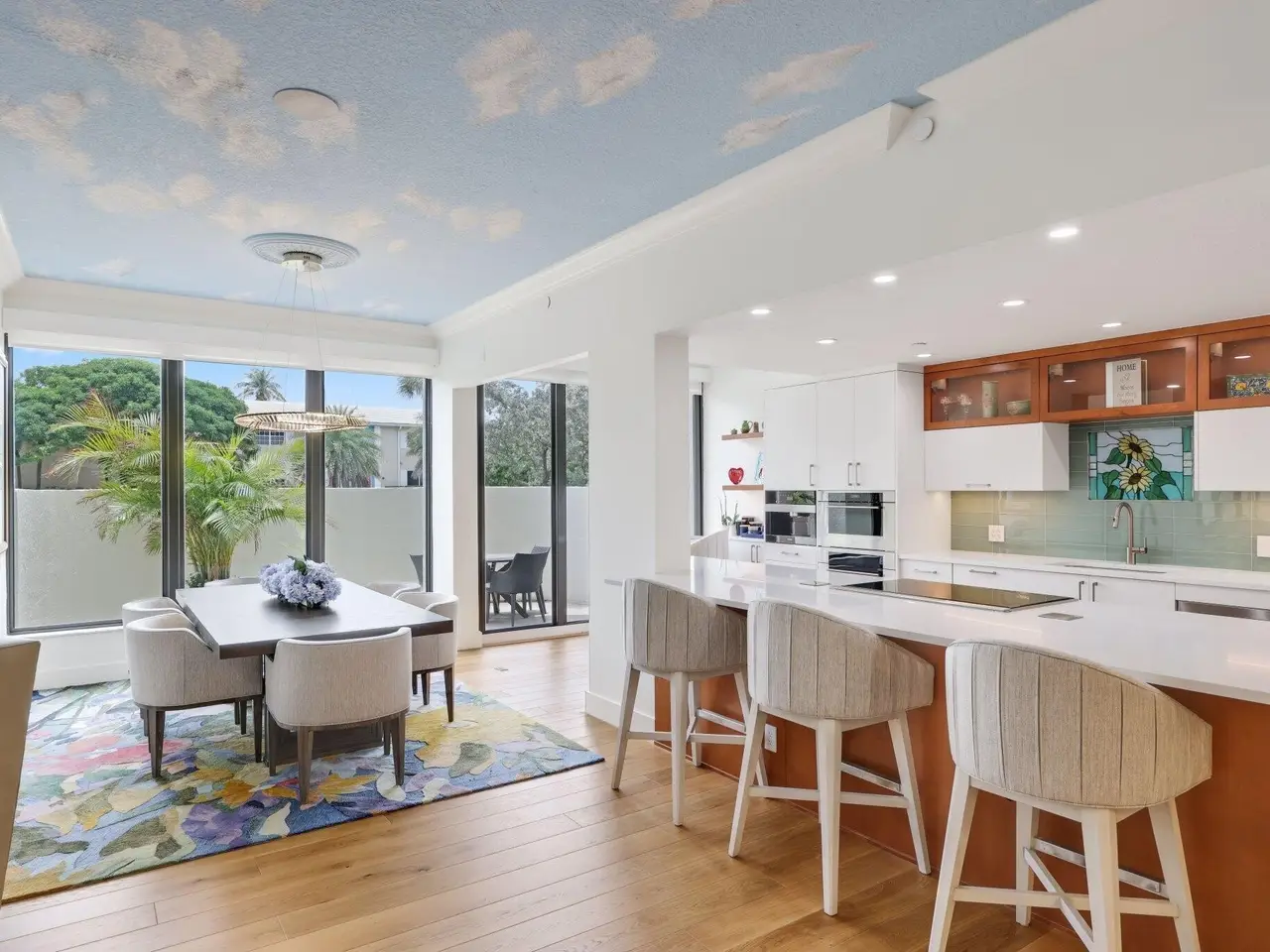 Renovated with no expense spared, this exquisite custom residence curated by architect Gary Stofft combines timeless design, bespoke materials, fine craftsmanship and gallery-worthy artistry. Details include a light-filled open-concept layout, impact-glass sliding doors that access a private walled terrace, oak floors, leaded glass by Robert Schmidt and ethereal ceiling murals by Craig McInnis.