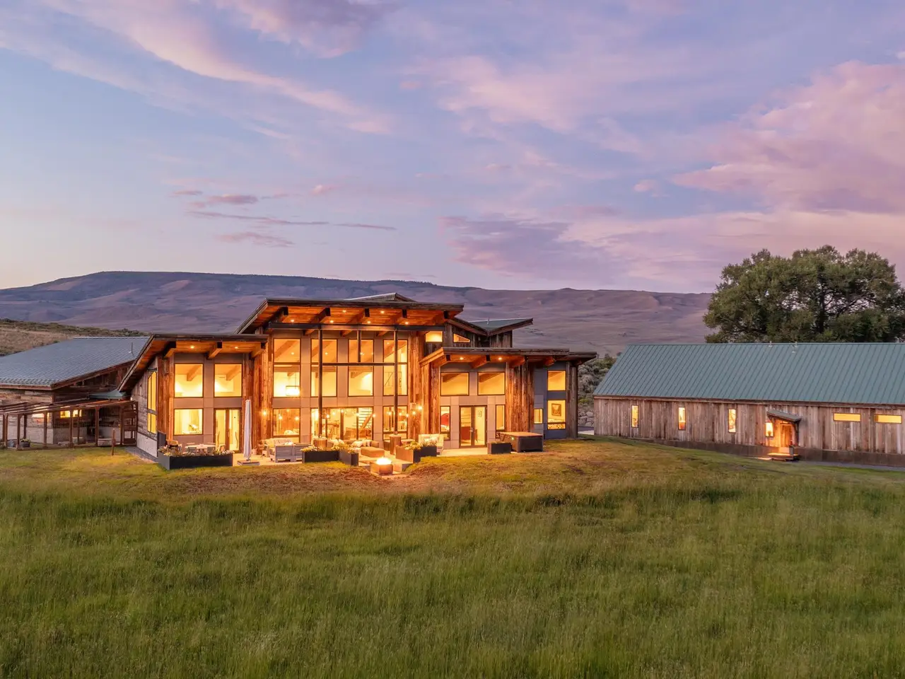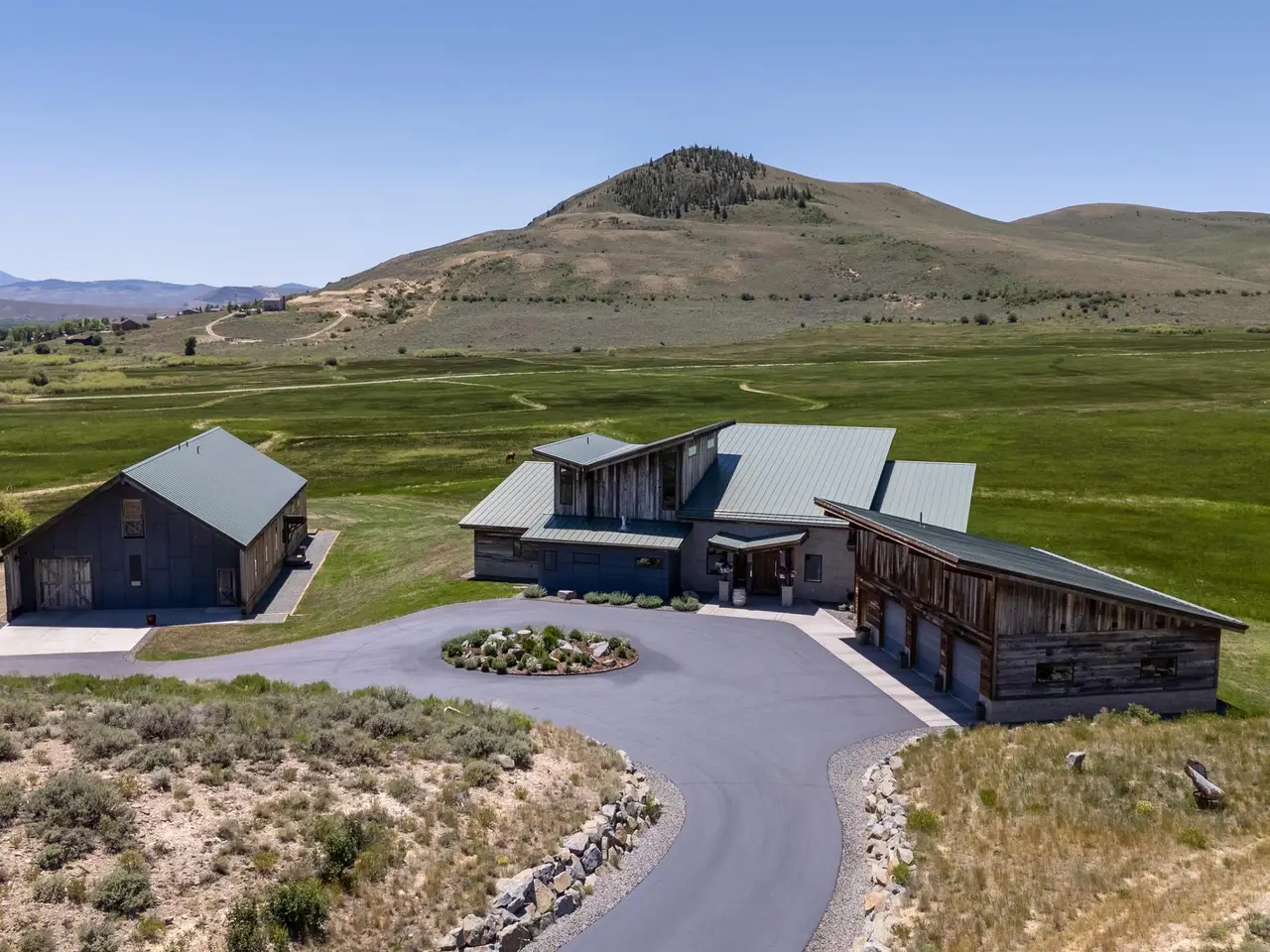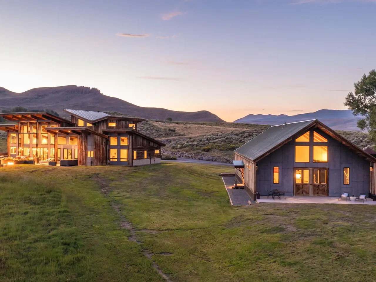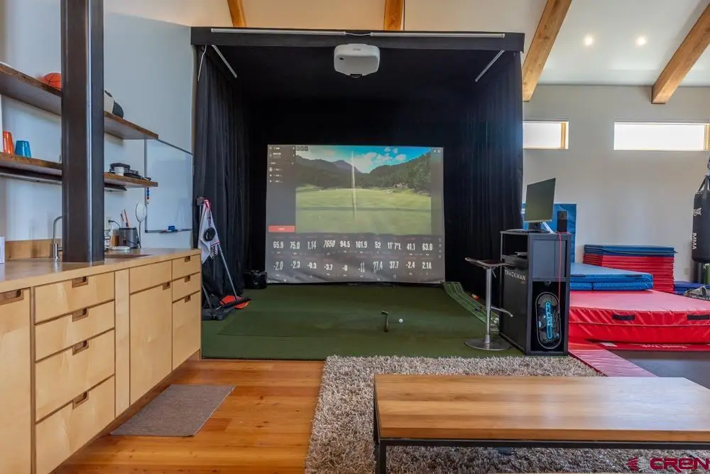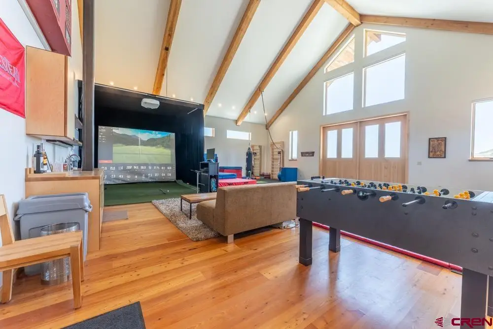Welcome to this stunning rustic-contemporary estate on 35 acres in the exclusive Horse River Ranch subdivision, just 10 minutes from Gunnison in the scenic Ohio Creek Valley. Set against sweeping views of open meadows, this 3,750 sq ft custom-built home blends refined craftsmanship with modern design. The open-concept main living space features 22-foot ceilings, French oak wood floors, and a dramatic wall of windows that floods the living room with natural light and opens to a custom concrete patio with a built-in gas fireplace, perfect for entertaining or taking in the peaceful mountain setting. The beautifully appointed kitchen, outfitted with top-tier appliances, sits just off the living room and flows seamlessly into the dining area. Throughout the home, you'll find handmade solid wood cabinetry and doors. The laundry room features custom painted green cabinets, which leads to a spacious mudroom and an attached three-car heated garage. On the main level, the private office features a cozy gas fireplace, while the primary suite includes a sitting area, walk-in closet, and a luxurious ensuite bathroom. An additional bedroom with a private bath completes the main floor, while upstairs offers two more bedrooms, a full bath, and a loft-style seating area overlooking the living space below. The home's exterior showcases a striking blend of reclaimed barn wood, corrugated metal, and concrete board, an authentic take on rustic modern architecture. A newly built guest house echoes the main home’s style with open living spaces, two bedrooms, two bathrooms, laundry room, and a one-car heated garage. An impressive 3,600 sq ft multi-use building offers a workshop with a garage door, loft storage, and a full gym complete with bathroom, refrigerator, dishwasher, in-ground trampoline, tumble track, and a custom golf simulator. The large gym area can easily be converted into additional workspace or additional living area. Oversized barn doors open the gym to the meadow and a fully outfitted horse corral with power and water. Residents of the gated Horse River Ranch community enjoy equestrian amenities, private fishing rights, and direct access to thousands of acres of adjacent BLM land. This one-of-a-kind property offers refined rural living with space to roam, recreate, and relax.