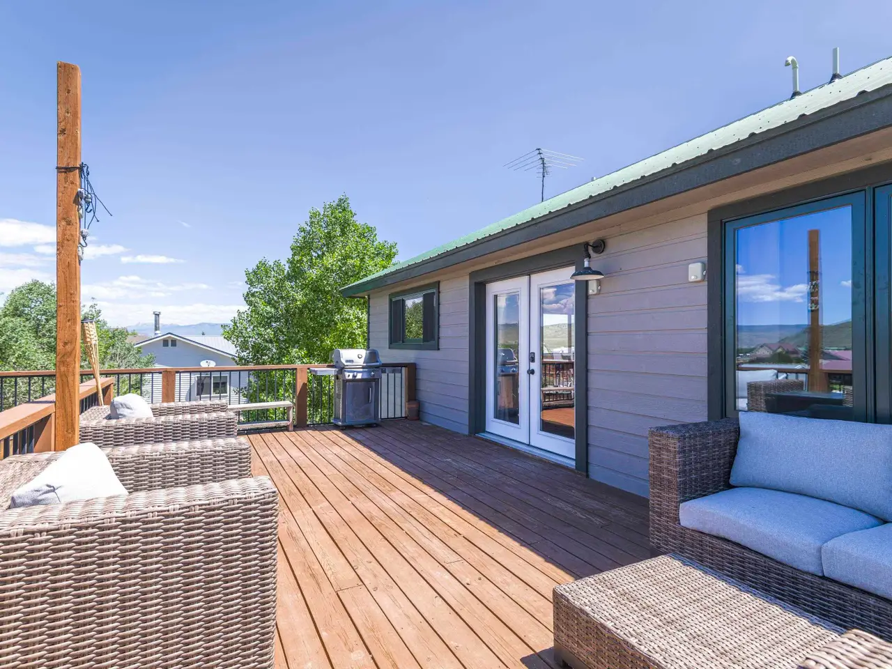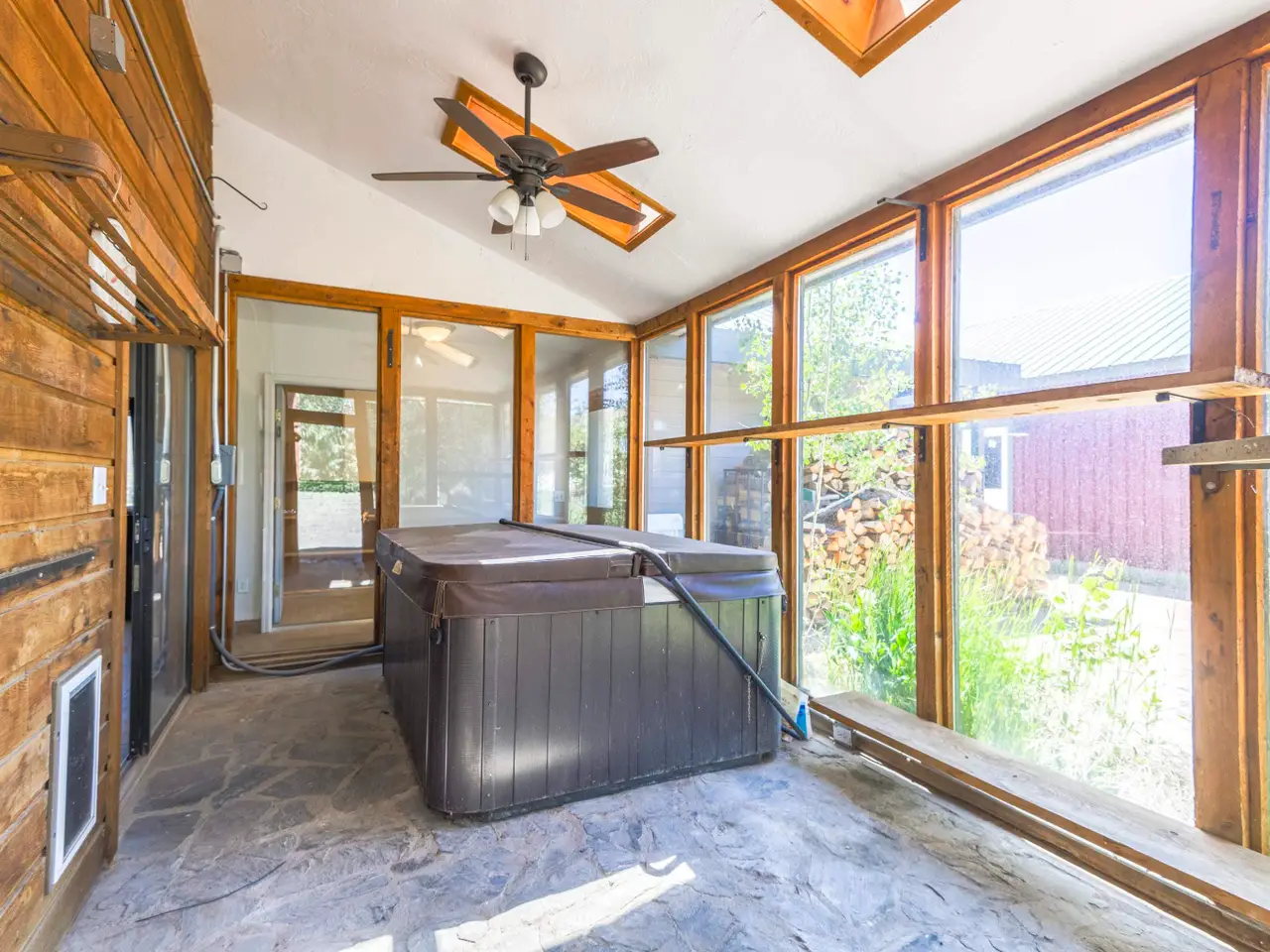 Brian Cooper, Bluebird Real Estate, LLC, C: 970-275-8022, brian@bbre1.com, www.crenmls.com: Welcome to this thoughtfully remodeled home located just minutes from downtown Gunnison and directly across from the renowned Hartman Rocks recreation area. Set on a spacious acre lot, this property offers a unique blend of indoor comfort and outdoor adventure, making it ideal for full-time living or a mountain getaway.Step into a warm and inviting main-level living space that has been recently updated to include modern finishes while maintaining a cozy, rustic charm. The main floor features two well-appointed bedrooms, a full bathroom, a dedicated laundry room, and a generous living area centered around a wood-burning stove—perfect for gathering during cooler seasons. Just off the living space, you’ll find a glass-enclosed sunroom with a hot tub, offering a relaxing retreat with year-round usability.At the end of the hall, the converted garage has been transformed into a versatile gear room or workshop space, complete with its own wall heater for added comfort—ideal for outdoor enthusiasts needing space for bikes, skis, or tools.Upstairs, an open-concept kitchen, dining, and living area is filled with natural light and opens onto a private deck overlooking the fully fenced yard. Just off the kitchen sits the spacious primary suite, complete with an en suite bathroom and a large walk-in closet. A convenient half bath and a ladder-accessed loft, perfect for storage or a reading nook, round out the upper level.The home has seen significant exterior upgrades including newer siding, windows, and a roof, ensuring energy efficiency and curb appeal. A detached garage provides extra parking or storage, while the lower portion of the lot is ideal for trailers, equipment, or additional recreation. Outdoor fun continues with a small dirt bike track tucked into the yard—great for kids or weekend hobbies.Located just a short drive from the Gunnison/Crested Butte Regional Airport and the amenities of downtown Gunnison, this property combines comfort, flexibility, and adventure—all in a prime location.