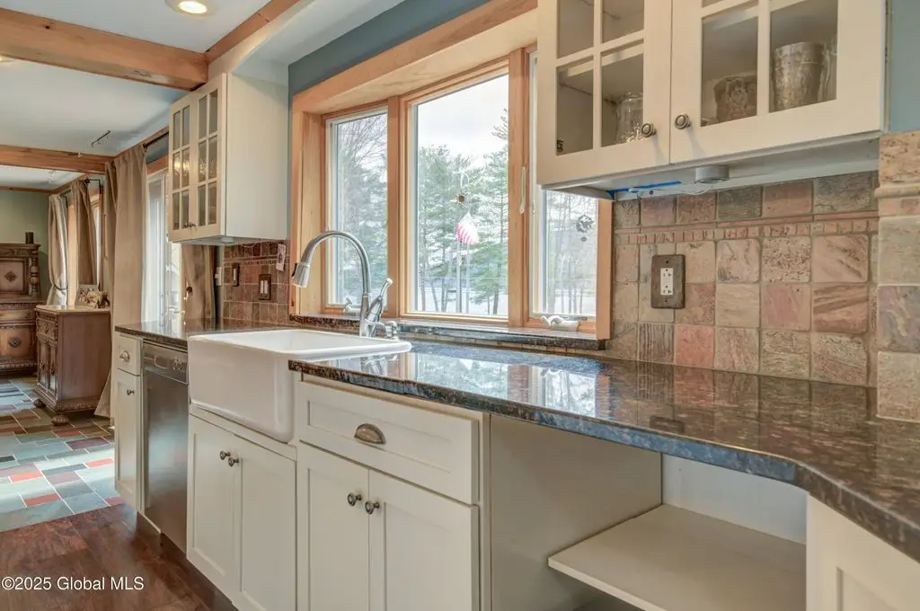 First class lakefront home w/120' on the Great Sacandaga! Property boasts high quality finishes & beautiful spaces, inside & out, with sophisticated Adirondack style. Gorgeous custom kitchen w/commercial appliances & lots of natural light. Vaulted ceiling & stone hearth in living room. First floor master w/luxurious bath featuring soaking tub & large walk in shower! Wrap around deck is accessible from multiple rooms. Enjoy lake views from most rooms of this amazing home. Addt'l BRs, full bath, & office space both upstairs and down. Laundry room on main level. Walk out basement w/additional finished space & workshop. Spacious guest room above det. 2 car garage (w/3 bays below for 'toy' storage!) Whole house generator. Adjacent 15 acre addt'l lot w/ 30' lakefront available for addt'l $165k
