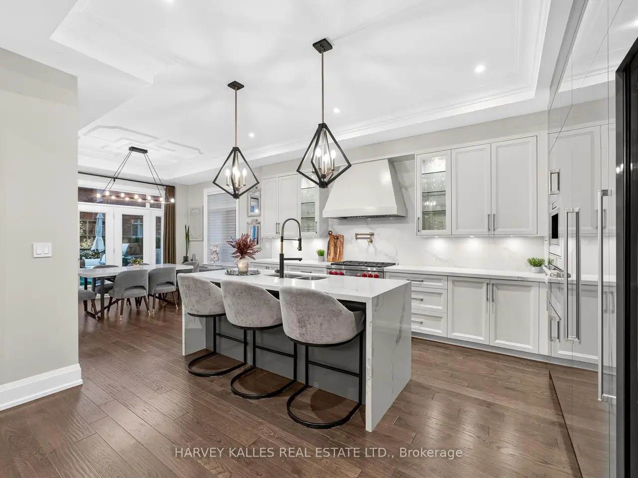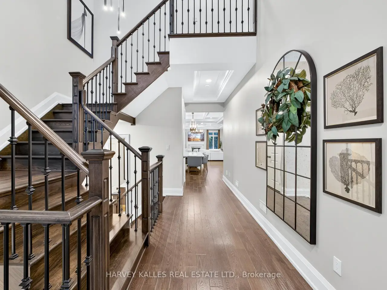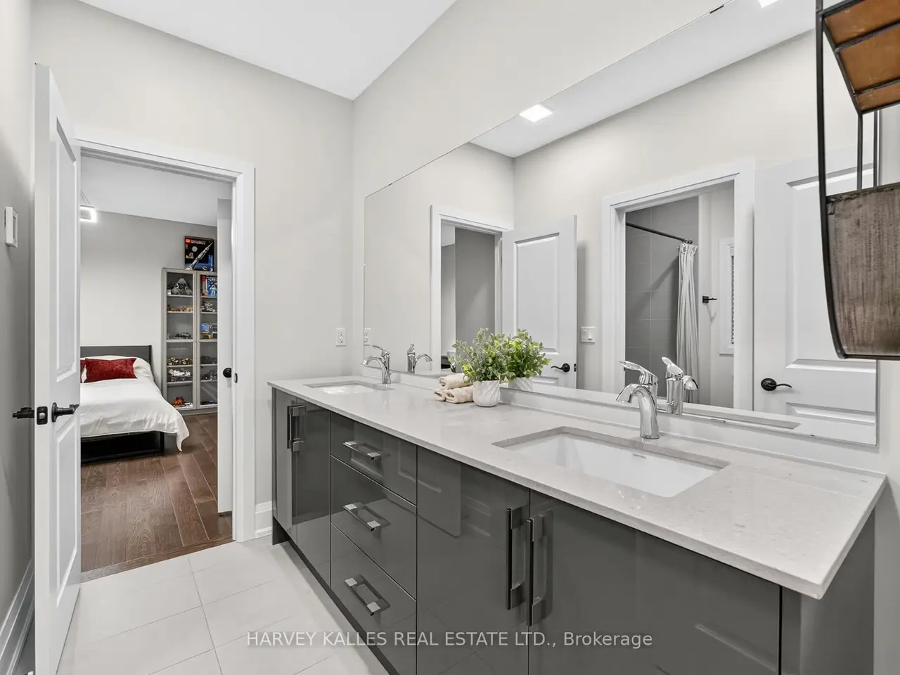 Welcome to this exceptional Riverwood residence - a luxurious 4-bedroom, 4-bathroom home built in 2019, set on a beautiful ravine lot surrounded by mature trees in one of Georgetown's most desirable neighbourhoods. Offering over 3,400 sq. ft. of elegant living space, this home combines refined craftsmanship with modern comfort, just minutes from Hwy 401, downtown Georgetown, community centres, and excellent schools. The heart of the home is a Custom Cameo kitchen showcasing Wolf gas range, Wolf wall steam oven, Wolf built-in coffee system, Sub-Zero fridge/freezer/wine fridge, Asko dishwasher, Caesarstone countertops and backsplash, and a Sirius ventilation hood - truly a chef's dream. Enjoy 10-ft ceilings on the main floor, 9-ft ceilings upstairs and in the basement, plaster waffle ceilings, elegant trim and crown moldings, and hand-scraped engineered hardwood floors throughout. Luxurious touches include heated bathroom floors, double-sink vanities, custom closet organizers in every bedroom, and custom window blinds. The walk-out basement is drywalled with all electrical and flooring completed, rough-in ready for a 5th bathroom, and awaits your final finishes. Step outside to a maintenance-free landscape oasis featuring Park Royale Bellaturf, Unilock interlocking, a horizontal white cedar fence, expansive waterproof composite deck with spiral staircase, and a Hydropool 19-ft year-round swim spa with a brand-new rollaway cover. Additional highlights include a hardwired Hikvision security system with three-week memory, built-in ceiling speakers for surround sound, and hot & cold water bibs in the garage. This meticulously designed home offers the perfect balance of luxury, privacy, and convenience - a rare opportunity in one of Georgetown's most sought-after communities.