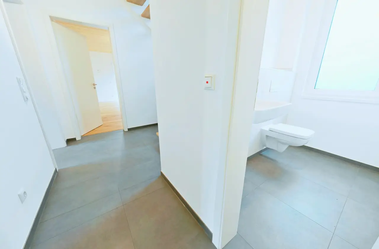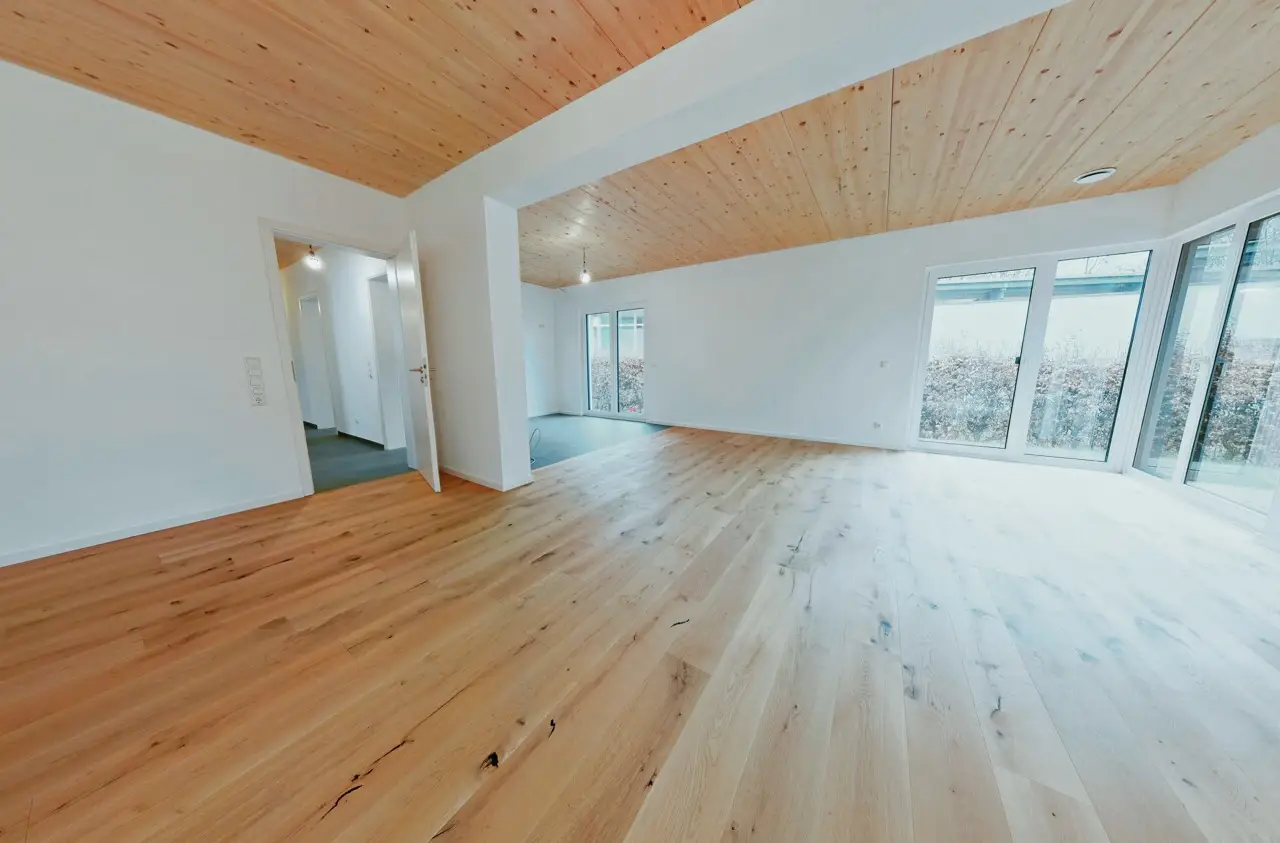 This architecturally appealing semi-detached house built in 2024 offers you modern comfort, energy-efficient construction and high-quality fixtures and fittings on a living space of approx. 157 m². The first-time occupancy of this new-build property promises you a high standard of living quality. The property is being built in a healthy timber frame construction and boasts a highly thermally insulated building envelope (energy efficiency house A+), which contributes to a balanced indoor climate and sustainably reduces energy costs. Natural building materials such as external insulation made from sheep's wool and wood wool meet the highest standards - even for allergy sufferers. With a total of four well-designed rooms, including three comfortable bedrooms and a well-equipped bathroom, the property meets numerous requirements for contemporary living. The spacious plot with an area of around 606 m² opens up a wide range of possibilities for individual garden design and impresses with a west-facing terrace area. Heating is provided by a modern air-to-water heat pump from the renowned Nibe brand, coupled with underfloor heating in all rooms - so you can enjoy comfortable heat distribution all year round. Windows with triple glazing and electrically operated privacy and light protection systems not only contribute to energy efficiency, but also to the pleasant atmosphere. Another highlight is the photovoltaic system with 20 modules and a total output of 7.8 kWp including inverter (8 kW) and bidirectional meter in the technical room. This not only protects the environment, but also reduces ancillary costs in the long term. The central ventilation system with an impressive 90% heat recovery rate also ensures a pleasant indoor climate, providing a constant supply of fresh air. The heart of the house is the open, light-flooded living and dining area with direct access to the terrace. The open-plan design allows the seamless integration of your individual kitchen planning and offers generous space for cooking, eating and relaxing together. The west-facing terrace extends the living area into the countryside and invites you to spend convivial hours in your own garden. The outdoor parking space on the property is already equipped with a cable connection for a wallbox - ideal for owners of an electric vehicle or those who want to become one. The fixtures and fittings are sophisticated and well thought-out throughout. Here you can live energy-efficiently, comfortably and in attractive surroundings. The combination of modern technology, sustainable construction and high-quality fittings makes this offer particularly attractive. See for yourself during a personal viewing and discover the advantages of this exceptional property. We look forward to your inquiry!