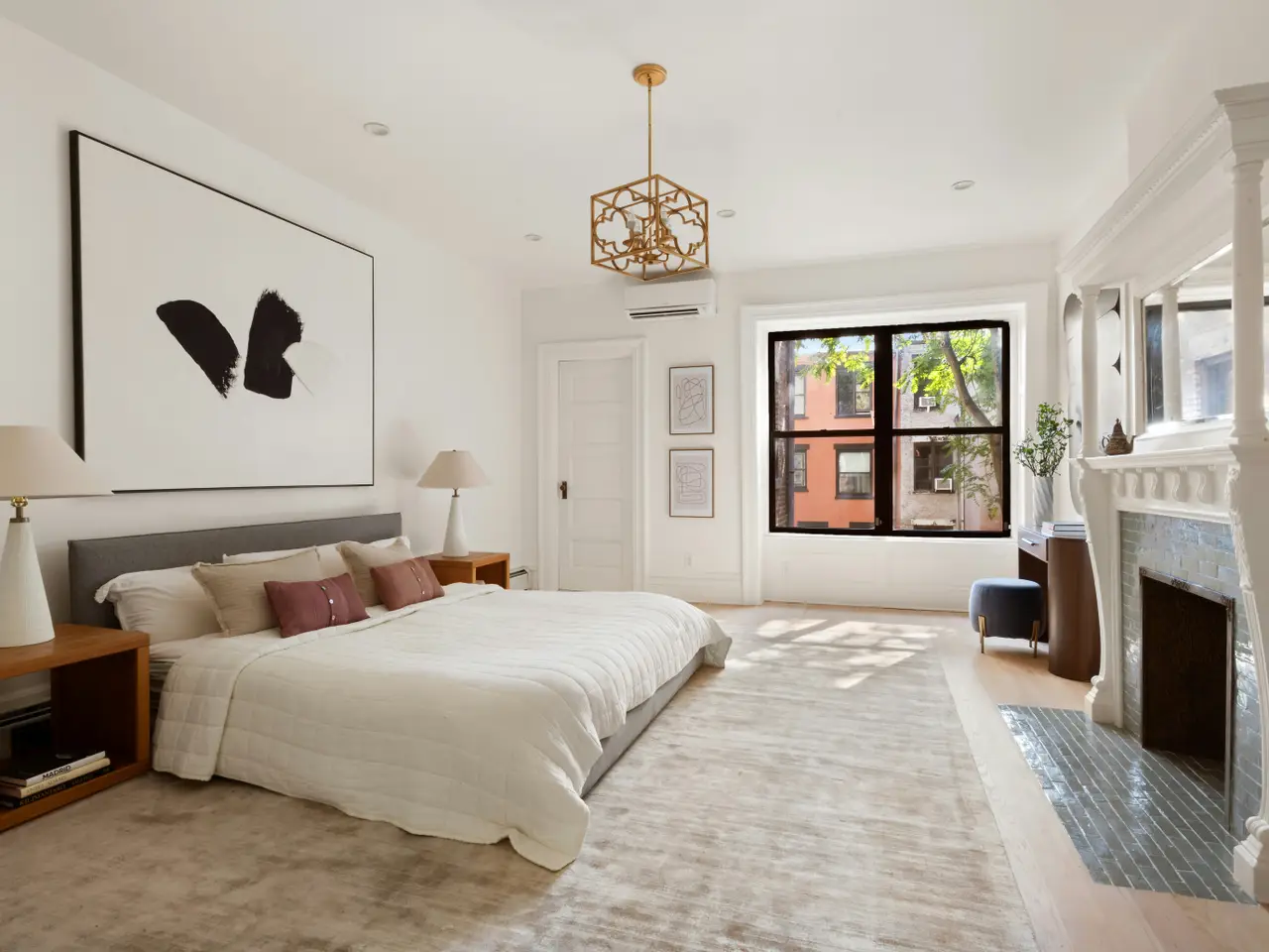 Exquisite, Fully Renovated Limestone Townhouse in Historic Hamilton Heights A tour de force of timeless elegance and modern luxury, 472 West 143rd Street is a restored and fully renovated Gothic-style townhouse nestled in the prestigious Hamilton Heights Historic District. This architectural gem, built in 1896 by architect John P. Leo, sits on the historic block once home to Alexander Hamilton's estate, Hamilton Grange. This 5,300-square-foot, two-family residence offers an unparalleled living experience just two express subway stops from Midtown Manhattan, sitting right between two major subway lines. Modern Systems, Historic Fabric This townhouse has undergone an extensive restoration, preserving its Gothic-style heritage while integrating state-of-the-art upgrades. Fully modernized electric and mechanical systems, smart-thermostat controlled central (split) air conditioning and heating ensure year-round comfort. European-inspired design elements, including wide-plank oak floors and marble countertops elevate the home's luxurious appeal, while historic details like fireplaces and carved woodwork display its storied past. A Masterfully Designed 4-Story Owner's Unit Step into the four-story owner's residence, a sprawling 3,300-square-foot haven, starting on the parlor floor. Enter through a chic vestibule up the stoop, where the open parlor level unfolds into over 30 feet of loft-like living and dining space. A striking exposed brick wall and a beautifully preserved historic staircase anchor the space, harmonizing with sleek oak floors. The dining area, bathed in light from a bay window, comfortably seats eight and is in conversation with a large central living area. The south-facing kitchen, through an intricately carved historic doorframe, is a sunlit masterpiece on the south side of the parlor floor. 11-foot ceilings accentuate the airy ambiance. A Breccia Cabraia marble island and a historic fireplace are the focal points. Expansive countertops provide ample prep and entertaining space, while a premium stainless steel appliance suite-featuring a six-burner Thermador range, large refrigerator, and dishwasher-elevates the culinary experience. A full, marble-clad bathroom with a broom closet completes this level, adding convenience and functionality. Serene Outdoor Oasis From the kitchen, step directly into a south-facing private garden, a tranquil retreat designed for relaxation and entertainment with a striking backdrop of the landmark Our Lady of Lourdes facade. Bluestone pavers, a built-in bench, and a lush planting area create an inviting atmosphere, enhanced by integrated lighting for enchanting evenings under the stars. Luxurious Upper Levels The third floor is dedicated to a full-floor primary suite, encompassing two expansive, sun-drenched rooms connected by a walk-in closet with accent lighting. The south-facing primary bedroom, with over 21 feet of depth and 9'8" ceilings, offers serene garden views and a historic fireplace with hand-painted Moroccan tile as its centerpiece. Across the hall, a versatile north-facing room-ideal as a bedroom, sitting area, or home office-overlooks the charming townhouse facades of West 143rd Street, also featuring a historic fireplace. A windowed primary bathroom with a claw-foot tub completes this serene retreat. The fourth floor houses two generously sized bedrooms, each with excellent closet space, a hall bathroom adorned with hand-painted Turkish tile and a skylight, and a laundry area. The north-facing bedroom boasts a charming bay window with panoramic views of the historic district, while the south-facing bedroom opens to a private terrace with stunning vistas of the landmark Our Lady of Lourdes church. Crowning the home is the top floor, a versatile space perfect as a fifth bedroom, home office, gym, or recreation room. Exposed brick and abundant south-facing light create a warm, inviting ambiance, with direct access to a roof terrace offering sweeping views and endless possibilities for outdoor enjoyment. Income-Producing Garden Apartment Below the stoop lies a completely separate 1,500+ square foot garden apartment, ideal for supplemental income or guest accommodations. This modern two-bedroom, two-bathroom duplex includes a fully finished cellar, a renovated kitchen, a washer-dryer, and several additional flexible spaces for home offices. With a private entrance and no interior connection to the owner's unit, this apartment ensures complete privacy. Direct garden access can be allocated for tenant use, enhancing its appeal. Prime Location in Hamilton Heights Nestled within the serene and leafy Hamilton Heights Historic District, this home offers a rare blend of tranquility and urban convenience. Surrounded by stunning townhouses and ecclesiastical architecture, the neighborhood is a charming enclave unique in Manhattan. Enjoy proximity to outdoor amenities like St. Nicholas Park, Jackie Robinson Park, and Alexander Hamilton Playground. Subway service is just blocks away, with express A, B, C, D or local 1 service at their respective 145th Street stations. This extraordinary townhouse is a rare opportunity to own a piece of New York history, reimagined for modern living.
