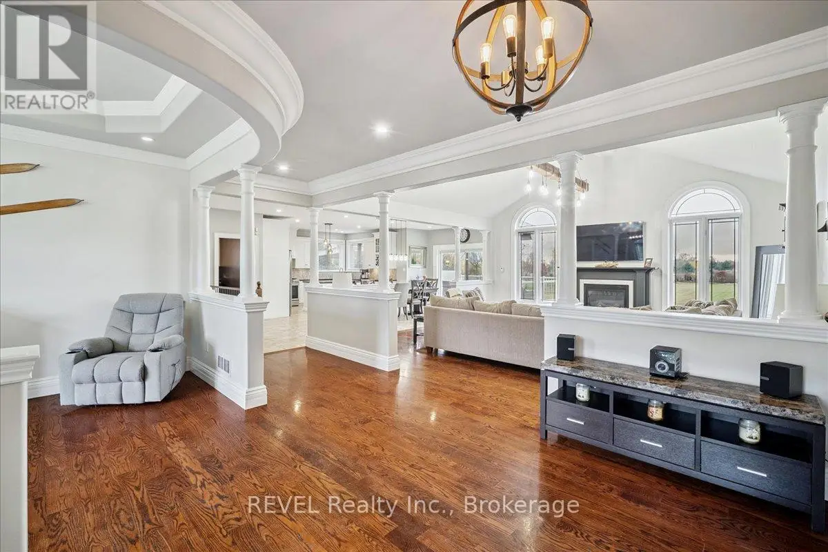 Welcome to your forever home in the serene Hamlet of Millgrove, where timeless design, family-friendly space, and countryside charm meet on an expansive 1.7-acre lot. This stately bungalow offers over 2,366 sq ft on the main floor plus a fully finished basement, with 6 total bedrooms and 3 full bathrooms - ideal for growing or multi-generational families. Inside, you'll find vaulted ceilings and a seamless open-concept layout connecting the kitchen, dining, and living areas. The custom kitchen features granite countertops, a large center island, and ample cabinetry, perfect for everyday living or entertaining. The spacious living room features hardwood flooring and a gas fireplace, while a cozy adjacent sitting area offers an inviting place to relax with an electric fireplace. (Can be used as a formal dining room). The main floor also includes an oversized primary suite with walk-in closet and ensuite, 2nd bedroom, main-floor laundry, and a third bedroom currently used as a home office with built in desks. Downstairs, the fully finished basement adds even more flexibility with 3 additional bedrooms, a large rec room with additional space for a games area (pool table-sized), a home gym, and a second gas fireplace, perfect for hosting or future in-law suite potential. Outside, enjoy your private resort-style backyard: a composite deck with covered lounge area, built-in outdoor kitchen, and a saltwater swim spa for year-round enjoyment. The fenced yard features a putting green, armour stone firepit, shed, and greenhouse, all with a mixture of mature trees and open views. Additional features include a Generac system, and a heated triple car garage with epoxy floors. This is a rural gem just minutes to Waterdown, Dundas, and Burlington, you'll love the balance of peaceful living with easy access to top-rated schools, Conservation areas, golf, and commuter routes. This is more than a home, it's a lifestyle upgrade. Space. Privacy. Comfort. It's all waiting for you. (id:7434)