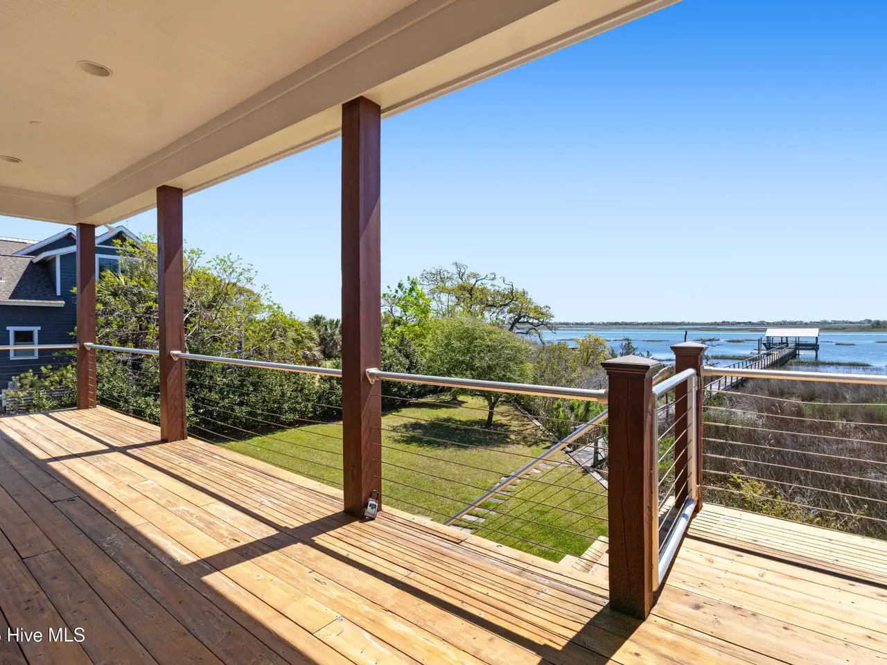 Expansive covered porch with Cypress decking