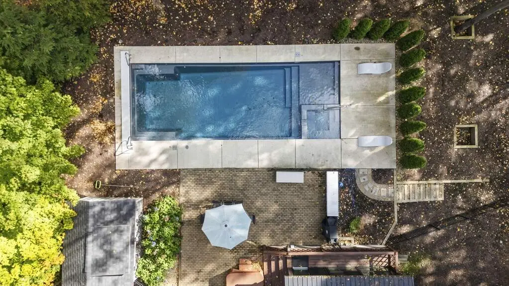 Just steps from the Cherry Beach shoreline, this Harbert cottage has been thoughtfully designed across three levels, offering four bedrooms, four full baths, and warm, light-filled gathering spaces that capture the essence of lakeside living. The main level welcomes you with a gracious living room centered on a classic fireplace, leading to a beautifully proportioned kitchen designed for both cooking and connection. The gorgeous fenced yard with hot tub and built-in pool with spa provides a welcome oasis for those that prefer to cool off or lounge in the sun at home. With a current short-term rental license, this home has become a sought-after retreat for guests drawn to the charm of Cherry Beach-renowned for its wide, sandy shoreline and timeless beauty. Whether as a private escape or a potential investment opportunity, this residence offers the rare combination of design, comfort, & style!