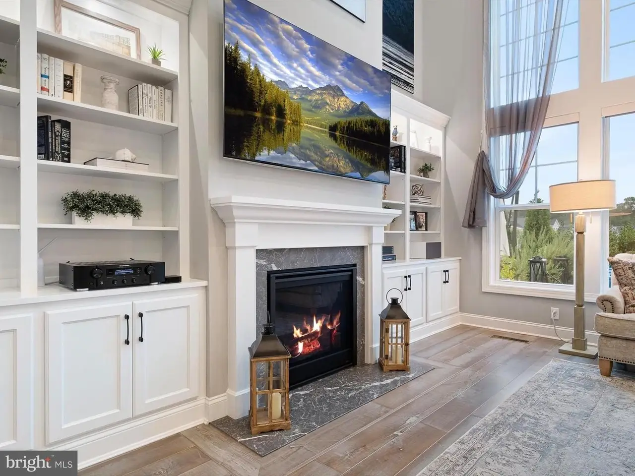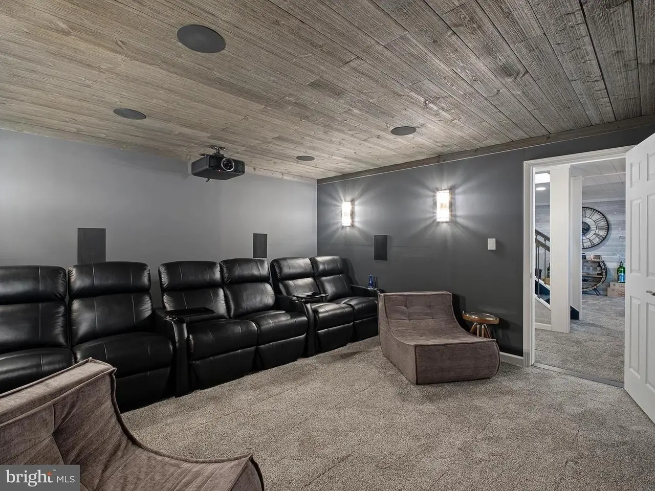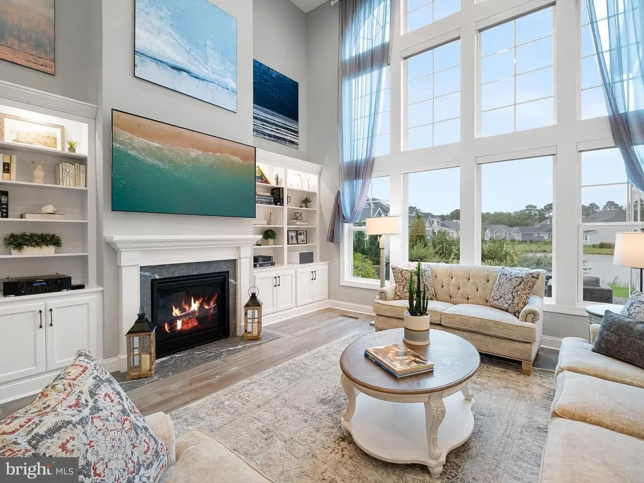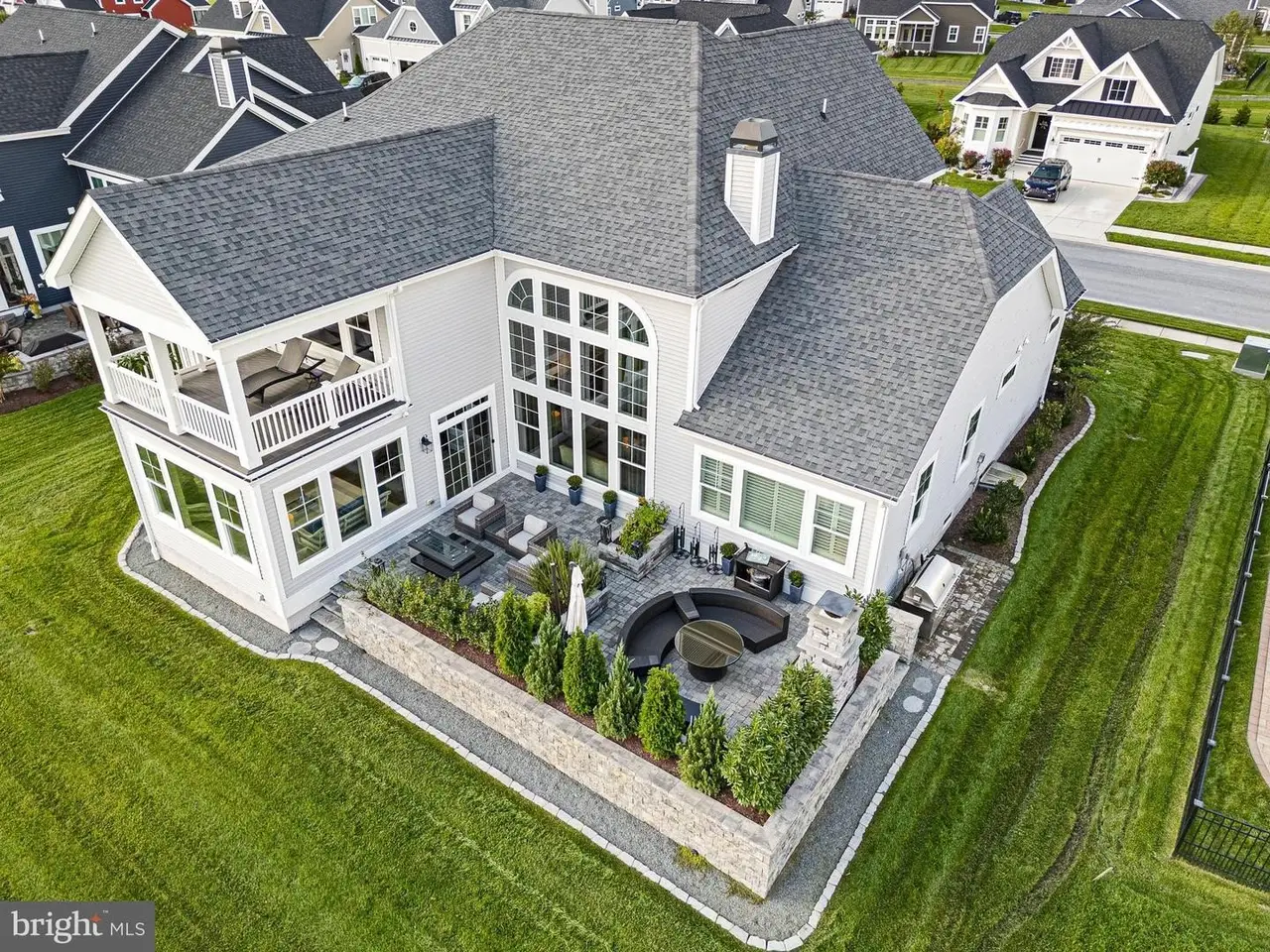 This elegant Schell Brothers Chesapeake residence showcases timeless architecture, refined details, and grand indoor-outdoor living with captivating pond views. Offering 5 bedrooms, 5 full baths, and three levels of robust living space, this home is as impressive in scale as it is in design. The finished basement immediately sets this home apart, featuring a private home gym, media room with projection screen and theater seating, rustic wine room with full-sized wine refrigerator, spacious recreation area, full bath, and even a professional salon, an extraordinary level blending leisure, style, and convenience. Curb appeal abounds with manicured landscaping, multiple roof peaks, board-and-batten shutters, a covered front porch with composite decking, and a charming pergola above the garage. At the rear of the home, extensive hardscaping creates a luxurious retreat overlooking the tranquil pond. A two-tiered paver patio highlights a dramatic wood-burning fireplace, 65-inch Enfield propane fire pit, and Lynx professional grill, with raised garden beds adding a touch of charm. Designed for both elegant entertaining and quiet evenings, this outdoor haven is truly spectacular. A transom front door with sidelights opens to an inviting foyer, where French transom doors lead to a private home office. Plantation shutters, custom blinds, and designer window treatments add sophistication throughout. The gourmet kitchen is a showpiece, anchored by an expansive quartz island and appointed with Viking appliances, a five-burner gas cooktop with range hood and pot filler, built-in oven, 42-inch display cabinetry with accent lighting, soft-close cabinets with underlighting, and a custom walk-in pantry with built-in spice storage. A deep stainless farmhouse sink with arched faucet completes the design. The adjoining dining area and sunroom with bamboo shades flow seamlessly to the grand outdoor living spaces. The great room makes a lasting impression with soaring ceilings and a dramatic two-story wall of windows showcasing serene pond views. Custom built-ins with integrated lighting flank the gas fireplace, creating an elegant focal point. The spacious main-level primary suite offers a tranquil sitting area with tray ceiling, dual walk-in closets, and a spa-inspired en suite with dual vanities, soaking tub, walk-in shower with bench, and private water closet. A second bedroom and full bath provide convenience. The laundry room doubles as a butler's pantry with Energy Star appliances, built-in cabinetry, and utility sink. The garage features epoxy flooring, built-in storage, and an additional refrigerator. Upstairs, a versatile loft serves as a hub for three spacious bedrooms. Two enjoy en suite baths, while one offers a private balcony and expansive walk-in closet. A fifth bedroom, currently styled as a sophisticated home office retreat, features custom built-ins, a crisp shiplap ceiling, and rich navy walls, creating a refined coastal vibe. The loft itself opens to a covered balcony with ceiling fans and sweeping pond views. Every element of this home reflects elegant design, timeless finishes, and spacious comfort, with refined living space and picturesque pond views as the backdrop to everyday living. Select furnishings will convey with the sale. Discover the elegance in person-schedule your private tour today!