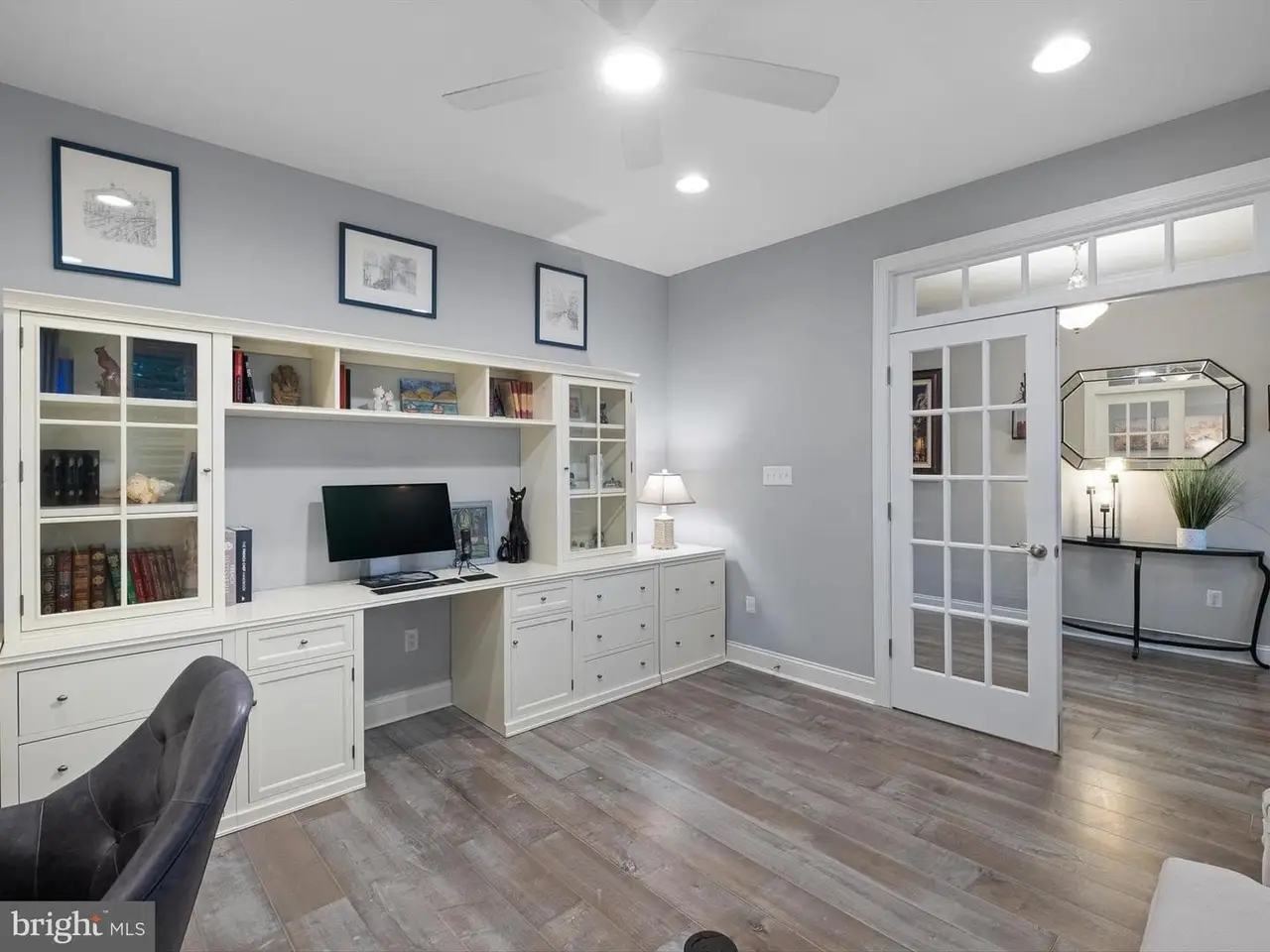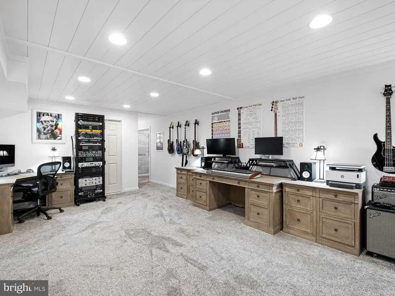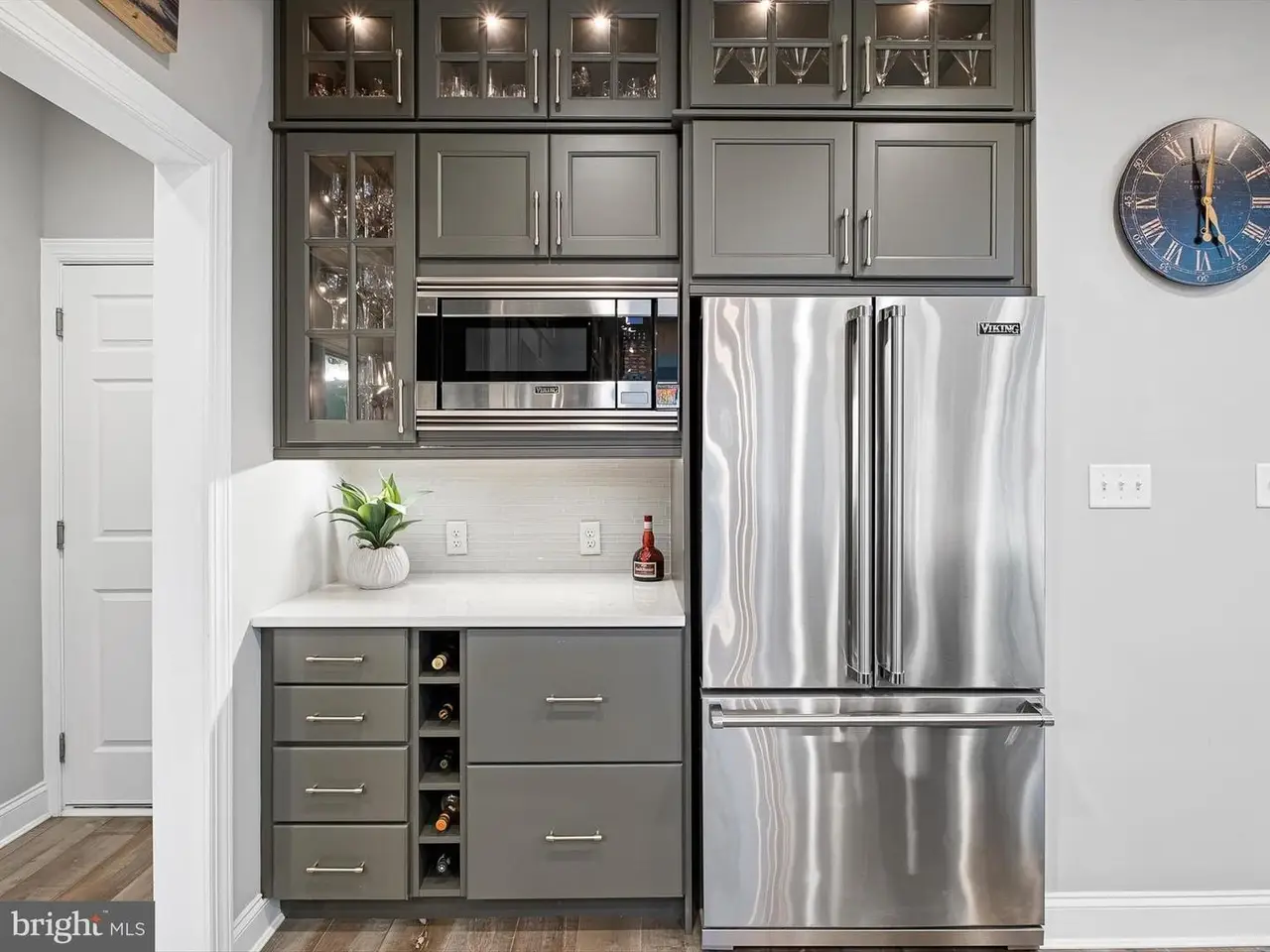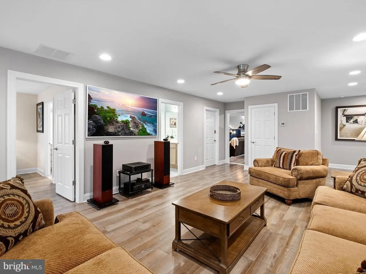 This elegant Schell Brothers Chesapeake residence showcases timeless architecture, refined details, and grand indoor-outdoor living with captivating pond views. Offering 5 bedrooms, 5 full baths, and three levels of robust living space, this home is as impressive in scale as it is in design. The finished basement immediately sets this home apart, featuring a private home gym, media room with projection screen and theater seating, rustic wine room with full-sized wine refrigerator, spacious recreation area, full bath, and even a professional salon, an extraordinary level blending leisure, style, and convenience. Curb appeal abounds with manicured landscaping, multiple roof peaks, board-and-batten shutters, a covered front porch with composite decking, and a charming pergola above the garage. At the rear of the home, extensive hardscaping creates a luxurious retreat overlooking the tranquil pond. A two-tiered paver patio highlights a dramatic wood-burning fireplace, 65-inch Enfield propane fire pit, and Lynx professional grill, with raised garden beds adding a touch of charm. Designed for both elegant entertaining and quiet evenings, this outdoor haven is truly spectacular. A transom front door with sidelights opens to an inviting foyer, where French transom doors lead to a private home office. Plantation shutters, custom blinds, and designer window treatments add sophistication throughout. The gourmet kitchen is a showpiece, anchored by an expansive quartz island and appointed with Viking appliances, a five-burner gas cooktop with range hood and pot filler, built-in oven, 42-inch display cabinetry with accent lighting, soft-close cabinets with underlighting, and a custom walk-in pantry with built-in spice storage. A deep stainless farmhouse sink with arched faucet completes the design. The adjoining dining area and sunroom with bamboo shades flow seamlessly to the grand outdoor living spaces. The great room makes a lasting impression with soaring ceilings and a dramatic two-story wall of windows showcasing serene pond views. Custom built-ins with integrated lighting flank the gas fireplace, creating an elegant focal point. The spacious main-level primary suite offers a tranquil sitting area with tray ceiling, dual walk-in closets, and a spa-inspired en suite with dual vanities, soaking tub, walk-in shower with bench, and private water closet. A second bedroom and full bath provide convenience. The laundry room doubles as a butler's pantry with Energy Star appliances, built-in cabinetry, and utility sink. The garage features epoxy flooring, built-in storage, and an additional refrigerator. Upstairs, a versatile loft serves as a hub for three spacious bedrooms. Two enjoy en suite baths, while one offers a private balcony and expansive walk-in closet. A fifth bedroom, currently styled as a sophisticated home office retreat, features custom built-ins, a crisp shiplap ceiling, and rich navy walls, creating a refined coastal vibe. The loft itself opens to a covered balcony with ceiling fans and sweeping pond views. Every element of this home reflects elegant design, timeless finishes, and spacious comfort, with refined living space and picturesque pond views as the backdrop to everyday living. Select furnishings will convey with the sale. Discover the elegance in person-schedule your private tour today!