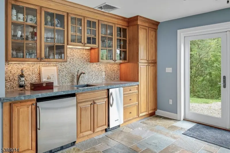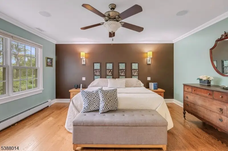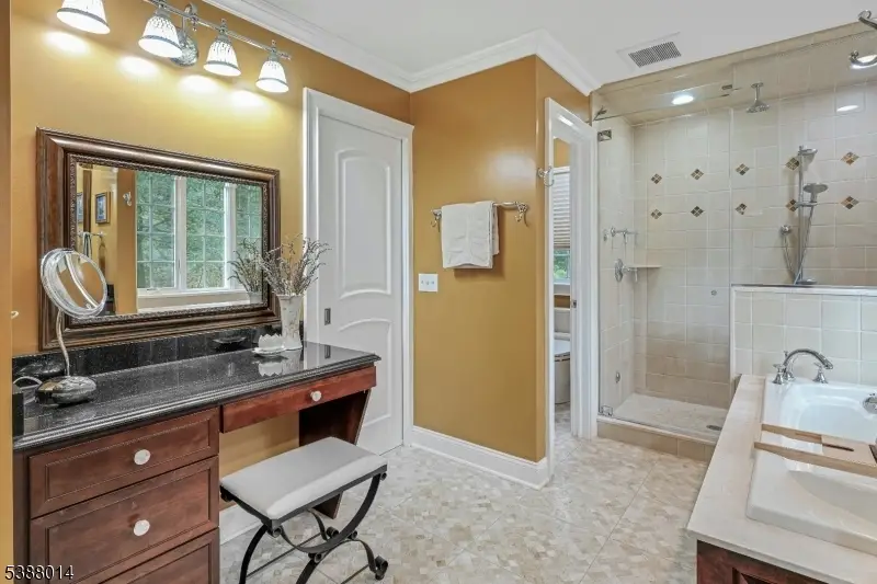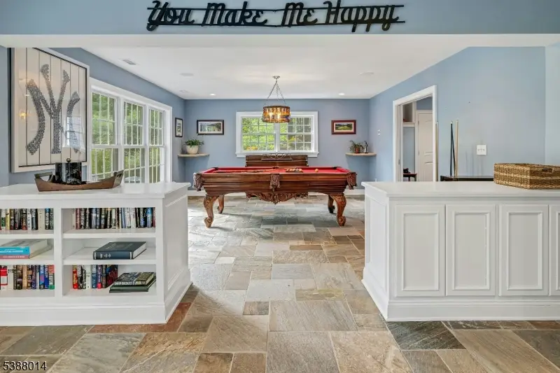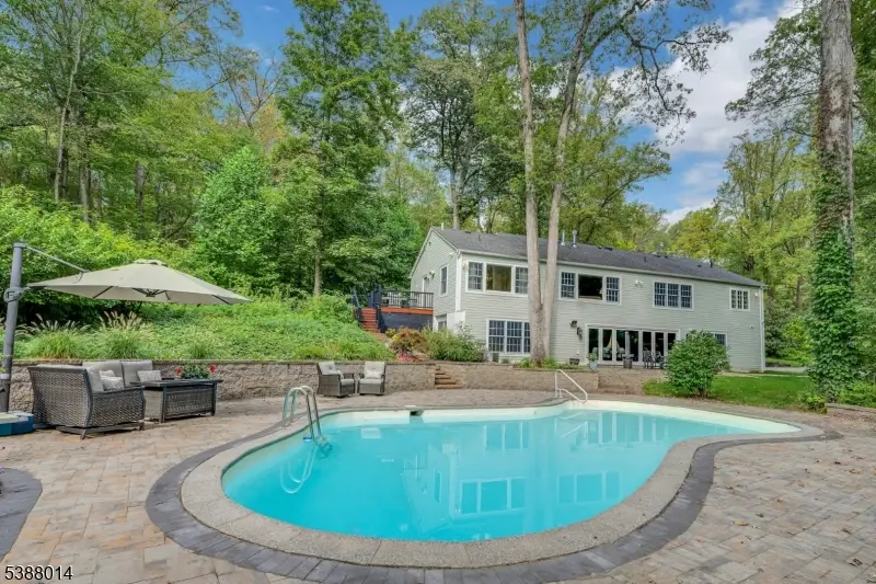 Privately situated amidst an abundance of nature with sweeping views of lush treetops, this charming mid-century elevated ranch has been thoughtfully updated for modern living. Boasting single-level living with three spacious bedrooms, two full baths, and a powder room, the home also features a beautifully finished walkout lower level complete with an additional bedroom and ensuite bath, a great room, a game room, and an exercise room all filled with natural light.The custom-designed kitchen and baths blend timeless style with practical luxury, including radiant heated flooring in the kitchen along with exquisite salvaged antique French tiles. The primary bedroom is a sanctuary with expansive walk-in closet and generous bath with separate shower and soaking tub. Step outside to a peaceful gravel patio perfect for alfresco dining or relax by the sparkling pool, surrounded by nature.The Post House neighborhood, located in desirable Harding Township provides direct access to miles of scenic trails in nearby Jockey Hollow yet is only minutes from downtown Morristown, Bernardsville, and the train to NYC all with low taxes. This property is a rare find.