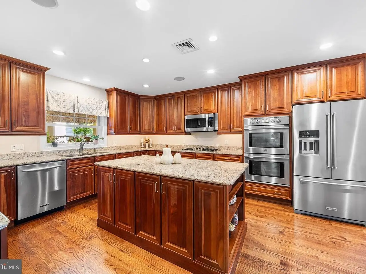A HOME THAT HAS IT ALL!! Wonderful location in the desirable Haverford Township School District! Enter into the Center Hall from an inviting open front porch. To the right, a living room. To the left, a large, formal dining room with the ambience of a woodburning fireplace. Go straight ahead and find an open concept kitchen/family room. The large eat-in kitchen has abundant cabinetry , stainless steel appliances, gas range, microwave, double oven, dishwasher, garbage disposal, granite countertops, hardwood floors, pantry closet, an island and a large peninsula for casual meals as well as an outside exit to a side driveway. The warm and inviting family room with cathedral ceilings, gas fireplace flanked by oversized windows to allow plenty of natural light, power shades, loads of built-in cabinets and wine refrigerator allows for maximum relaxation. The first level in this house also boasts of an office, a powder room, and a 4 season sunroom with a gas heater. Exit the sunroom to chill on the back paver patio in the beautifully landscaped rear yard. Second level has 4 bedrooms, 3 bathrooms with double vanities, and a spacious laundry room for your added convenience. The primary bedroom has soaring cathedral ceilings giving it an amazing open feel, walk in closets, and an ensuite bathroom with a walk in shower, a separate jacuzzi tub, a heat lamp and a double vanity. There is a second bedroom with its own bathroom, and bedrooms 3 and 4 share a Jack and Jill bathroom. The basement is incredible! Beautifully finished with a home theatre screen. Fabulous entertaining space for parties or watching a movie or a game. There is also a powder room and wet bar as well as a large storage room. More amenities include replacement windows, beautiful landscaping, fenced yard. whole house generator, central air, 200 amp circuit breakers, gas hot water heater, gas hot water heat, bessler stairs to floored attic storage, many large closets, oversized shed, hardwood floors throughout and more! Close to shopping and transportation. Easy access to the Blue Route connecting you to both the turnpike and the airport. Be in Center City Philadelphia in 15 minutes. Walk to many restaurants! Not far from the Skatium, the newly renovated library, and the YMCA. AND, soon you will be able to enjoy a park setting directly across the street. Last but not least, the walkability of the desirable Brookline area of Haverford Township can't be overstated. You have to see this extraordinary brick and sided home that has everything you could want. See for yourself!!!