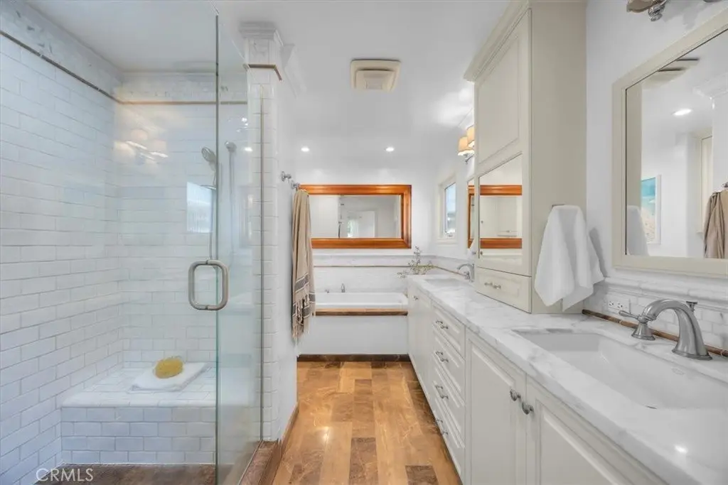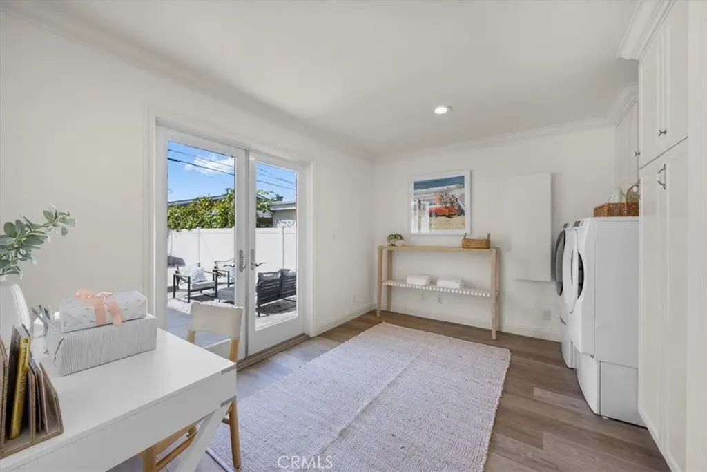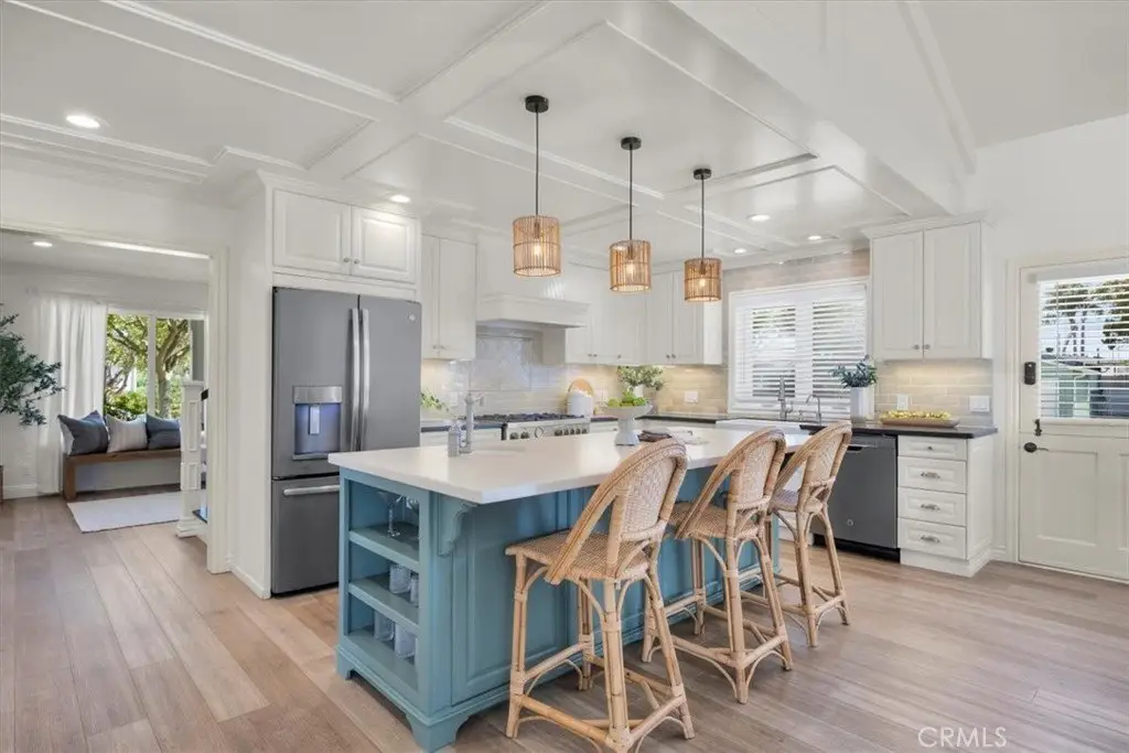 Welcome to a true Hollyglen gem! This 4-bedroom, 2.5-bath home offers 2,949 square feet of character, comfort, and modern functionality, all infused with timeless charm. From the moment you arrive, the wrap-around front porch sets the tone for the warmth and Southern-style appeal that makes this home stand out in the neighborhood. The main level features a sunlit primary suite with a walk-in closet and a spa-like en-suite bathroom complete with dual sinks, a soaking tub, and a separate shower. The open-concept floor plan connects the kitchen, dining, and living spaces seamlessly. The kitchen boasts a large island with bar seating and convenient side shelving, stainless steel appliances, and direct flow into the vaulted-ceiling living room anchored by a cozy wood-burning fireplace. Between the kitchen, dining, and living areas is a custom bar nook with a wine fridge, countertop display, and cabinet storage, perfect for entertaining. From this open gathering space, a Dutch door leads to the side of the wrap-around porch, adding both charm and functionality. French doors at the back open to a retreat-like yard with a spacious deck and above-ground spa, ideal for indoor-outdoor living. The first floor further includes a versatile laundry room that can double as a creative or flex space, with its own French doors opening to the yard, along with a convenient half bath for guests. Upstairs, three sizable bedrooms with vaulted ceilings share a full bathroom with dual sinks. A generous landing area provides the perfect spot for a home office, reading nook, or play area, offering flexibility for today’s lifestyle needs. Additional highlights include a detached two-car garage, location within the highly desirable Wiseburn School District, and close proximity to neighborhood parks, schools, and community amenities. This home is more than just a place to live, it’s a lifestyle. With its blend of character, space, and thoughtful design, it’s a rare opportunity in the heart of Hollyglen.