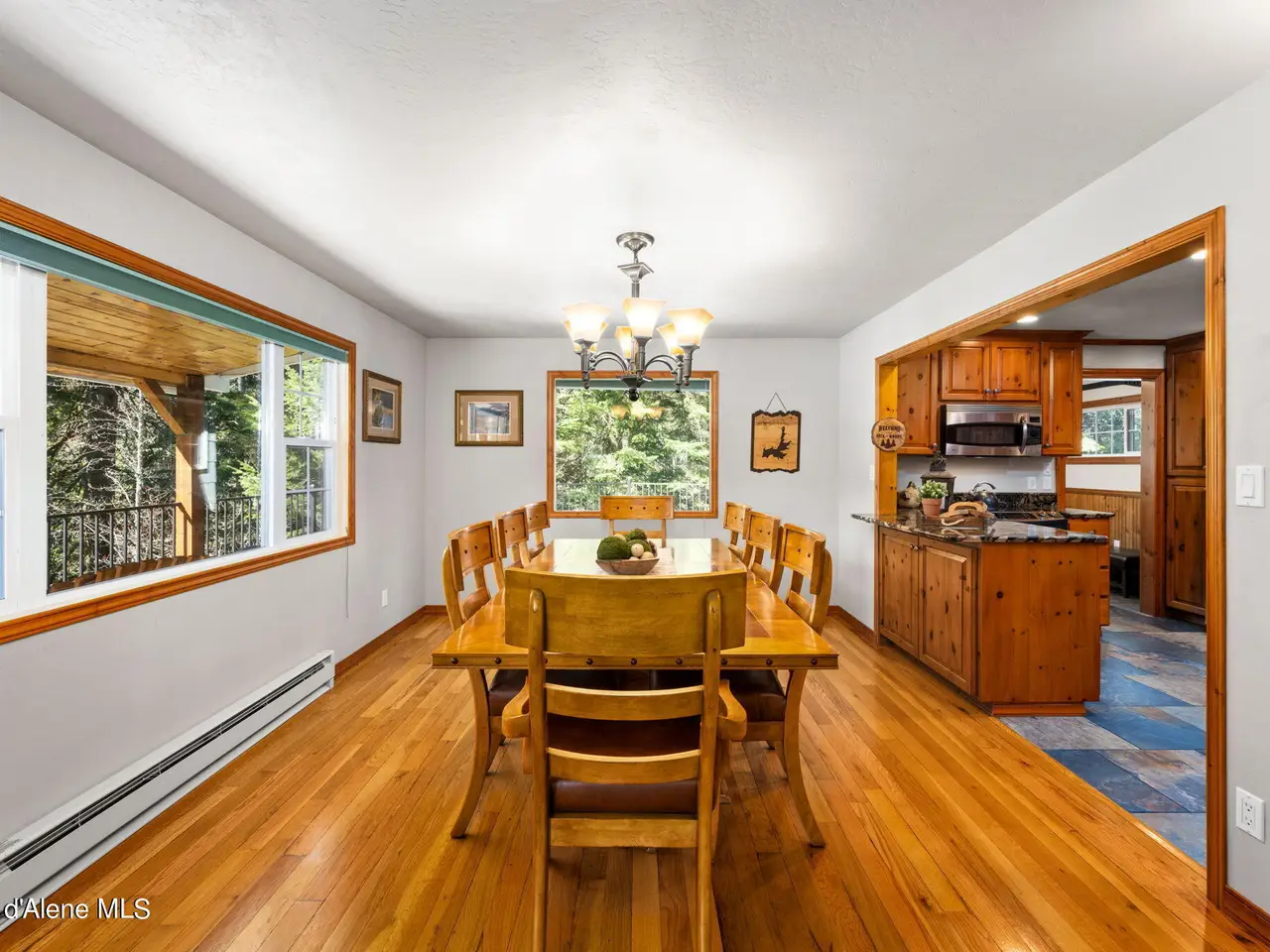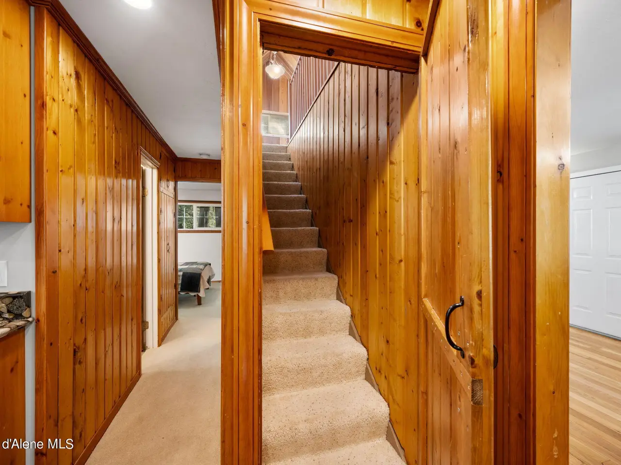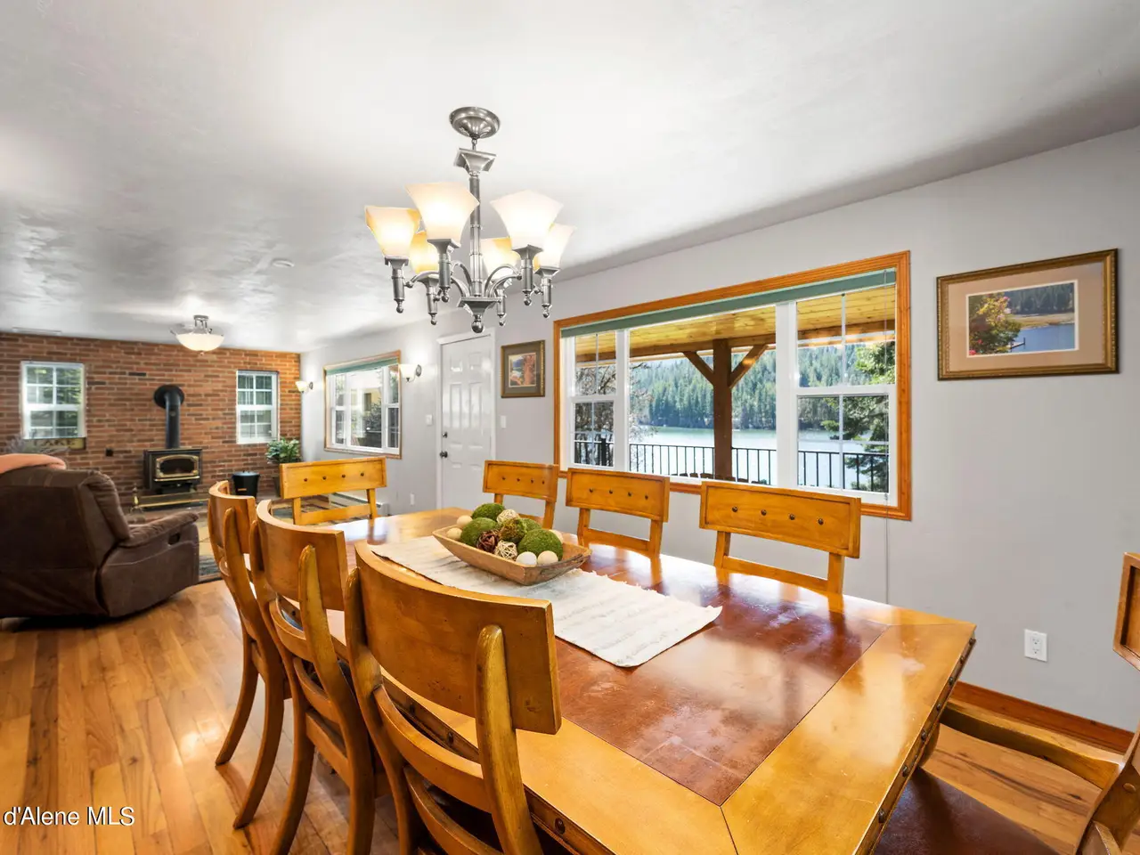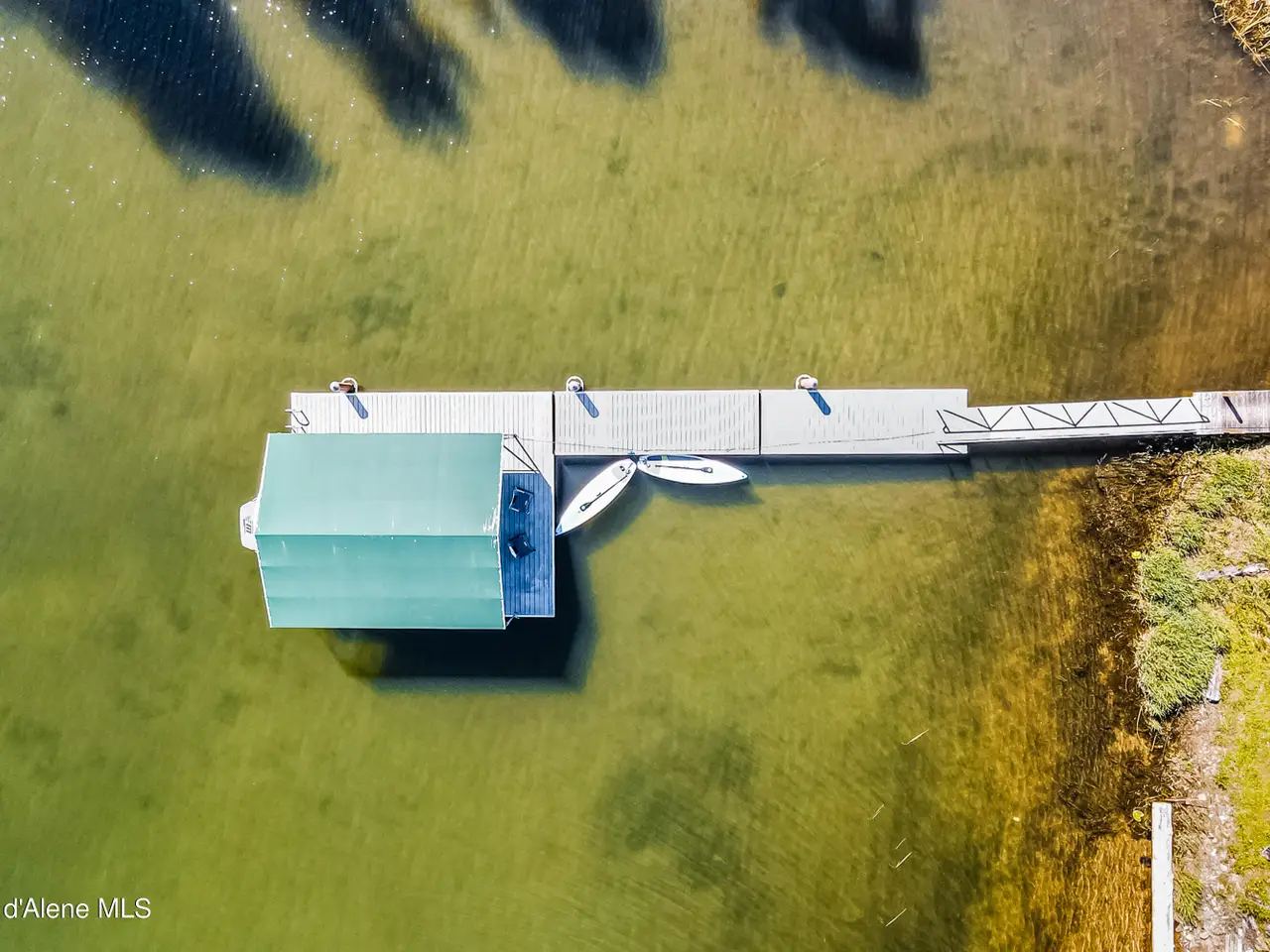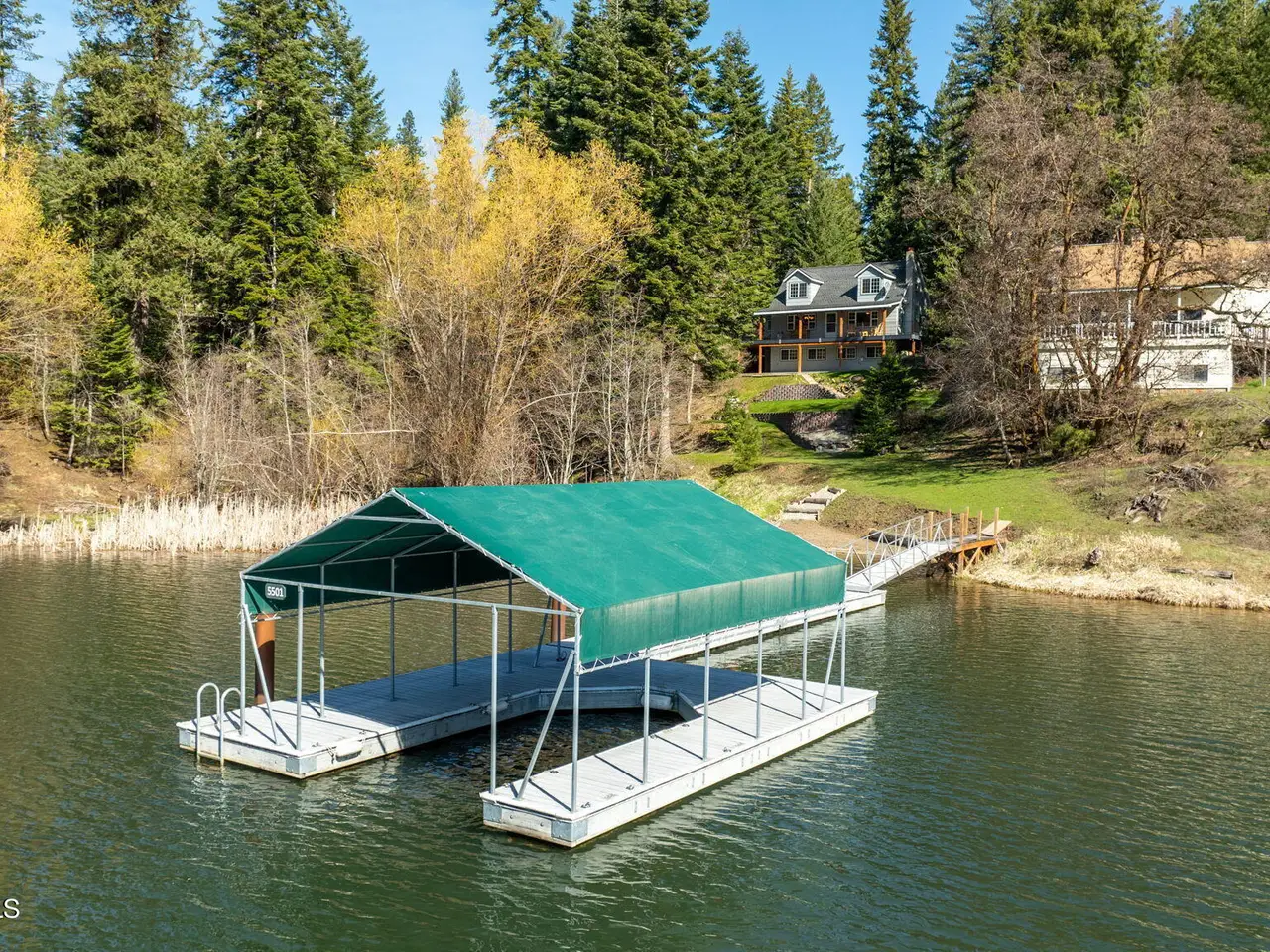 Nestled on Hayden Lake's coveted Mokins Bay, this waterfront retreat offers tranquility and recreation. Walk down to the covered dock and enjoy boating, kayaking, canoeing or fishing in the deep scenic bay that features a no wake zone. With 172 feet of waterfrontage and a sandy beach, the property spans 1.17 acres, comprising two lots, with a year-round creek running between the lots. The terraced landscaping has been thoughtfully designed to blend with the natural surroundings, creating a serene and inviting atmosphere. Originally built as a cozy lake cabin, this home has undergone a complete transformation to offer modern comforts and conveniences while retaining its rustic charm. Step inside to discover a beautifully remodeled interior, featuring updated kitchen and bathrooms, new flooring, and fresh paint throughout. With ample natural light, the home offers a warm and inviting ambiance, perfect for gatherings. Updated plumbing ensures worry-free living, allowing you to fully embrace the lakefront lifestyle. Whether you're seeking a private retreat for your family or an investment opportunity in the vacation rental market, this property offers endless possibilities. Previously, it operated as a successful vacation rental, the home comfortably accommodates 10+ guests. The detached garage provides convenient storage for all your lake toys and equipment, ensuring that you have everything you need to make the most of your time on the water. With its unbeatable combination of natural beauty, recreational amenities, and modern comforts, this Hayden Lake waterfront retreat offers a truly unparalleled living experience.