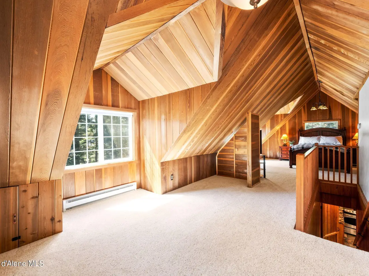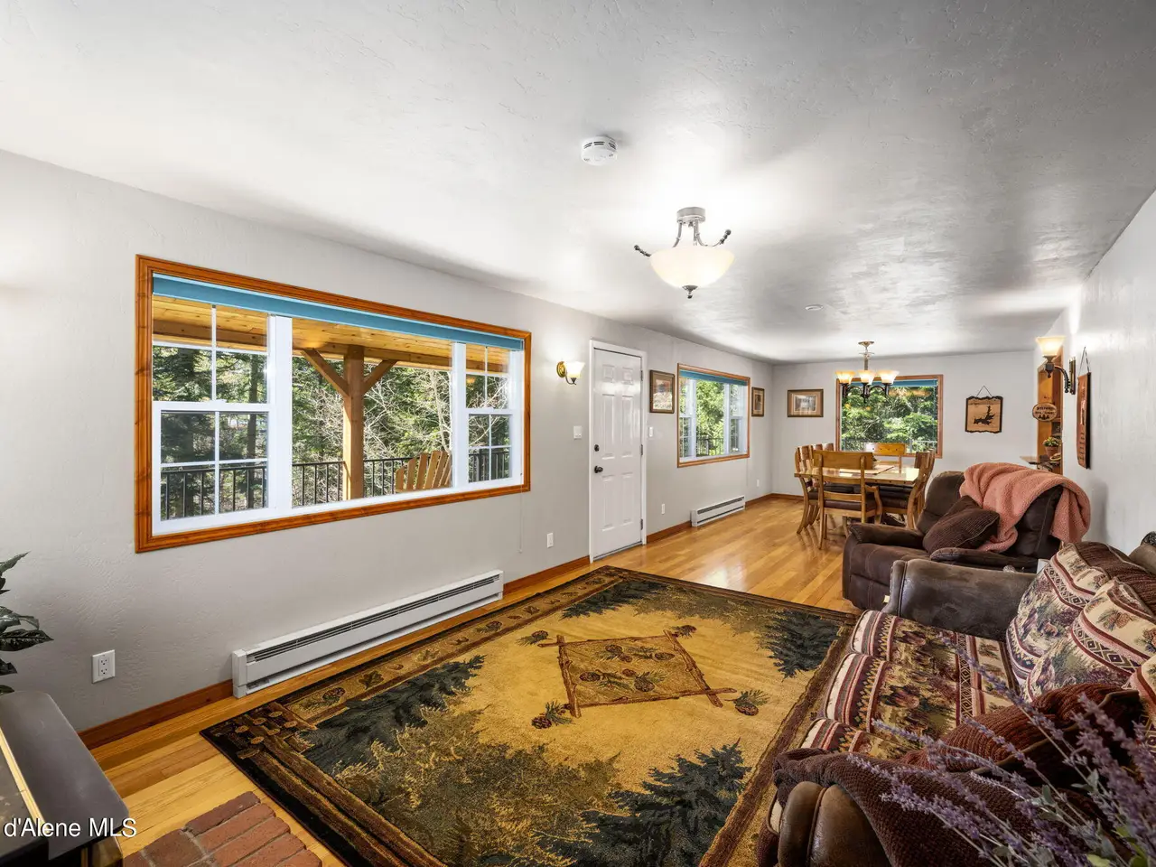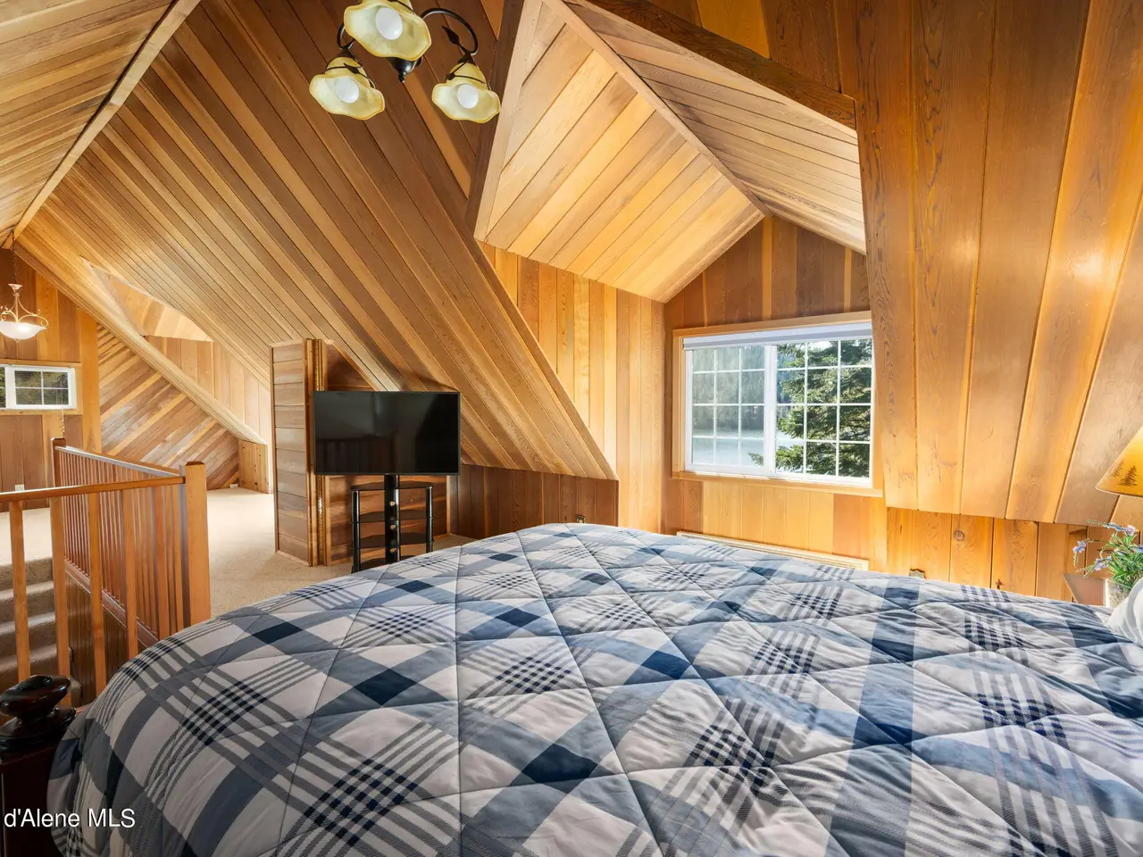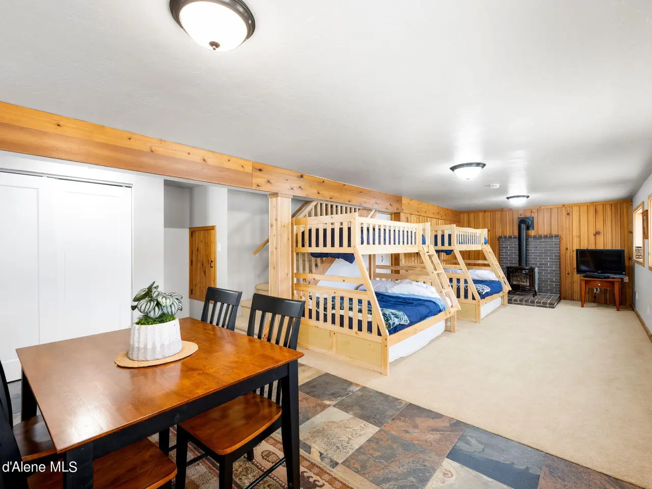 Nestled on Hayden Lake's coveted Mokins Bay, this waterfront retreat offers tranquility and recreation. Walk down to the covered dock and enjoy boating, kayaking, canoeing or fishing in the deep scenic bay that features a no wake zone. With 172 feet of waterfrontage and a sandy beach, the property spans 1.17 acres, comprising two lots, with a year-round creek running between the lots. The terraced landscaping has been thoughtfully designed to blend with the natural surroundings, creating a serene and inviting atmosphere. Originally built as a cozy lake cabin, this home has undergone a complete transformation to offer modern comforts and conveniences while retaining its rustic charm. Step inside to discover a beautifully remodeled interior, featuring updated kitchen and bathrooms, new flooring, and fresh paint throughout. With ample natural light, the home offers a warm and inviting ambiance, perfect for gatherings. Updated plumbing ensures worry-free living, allowing you to fully embrace the lakefront lifestyle. Whether you're seeking a private retreat for your family or an investment opportunity in the vacation rental market, this property offers endless possibilities. Previously, it operated as a successful vacation rental, the home comfortably accommodates 10+ guests. The detached garage provides convenient storage for all your lake toys and equipment, ensuring that you have everything you need to make the most of your time on the water. With its unbeatable combination of natural beauty, recreational amenities, and modern comforts, this Hayden Lake waterfront retreat offers a truly unparalleled living experience.