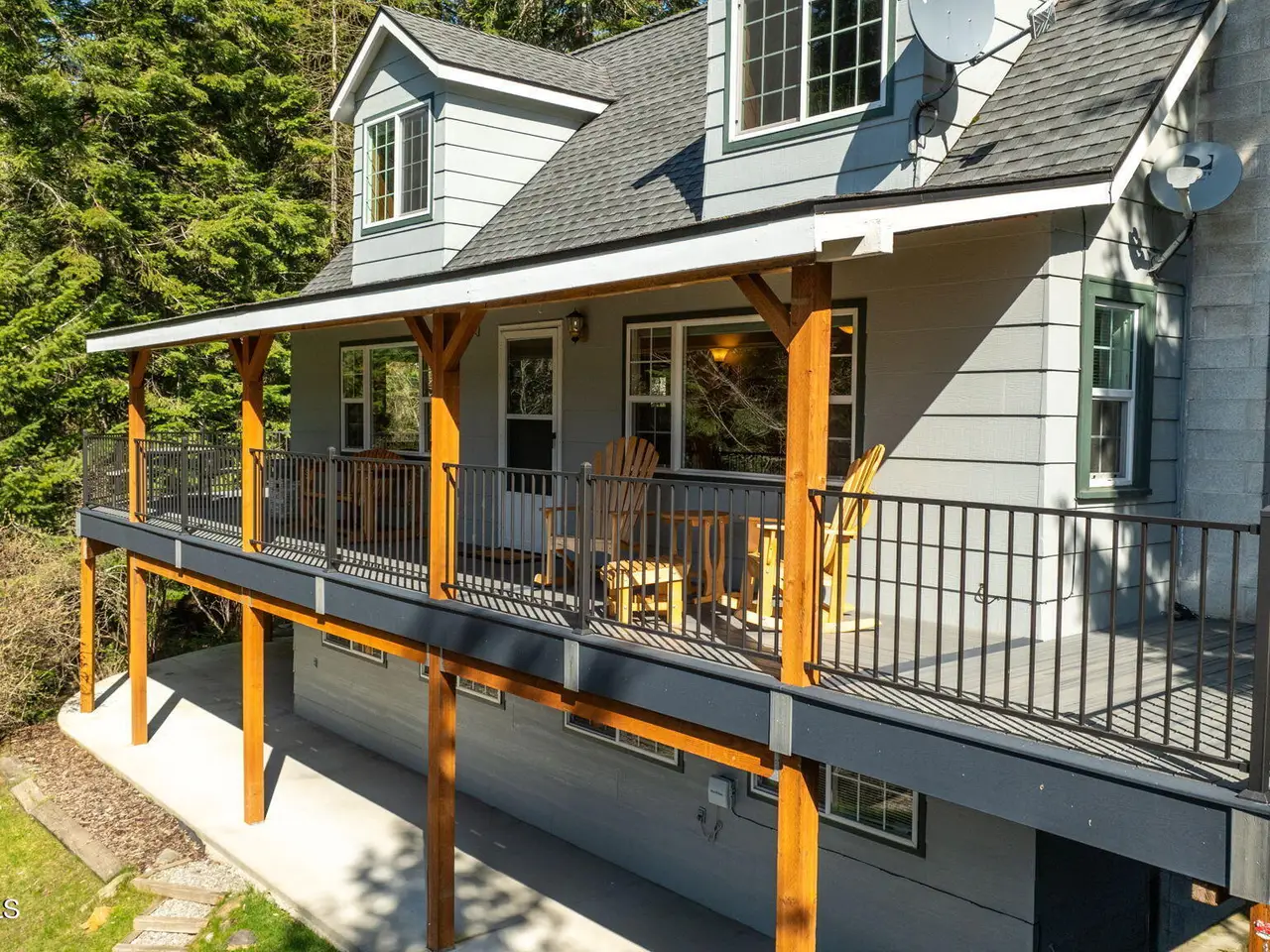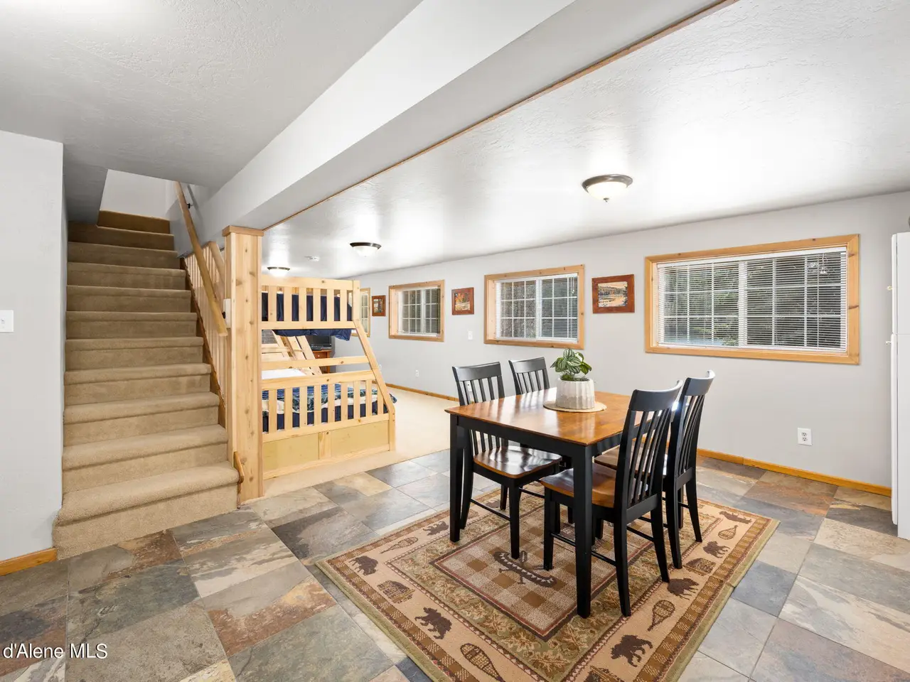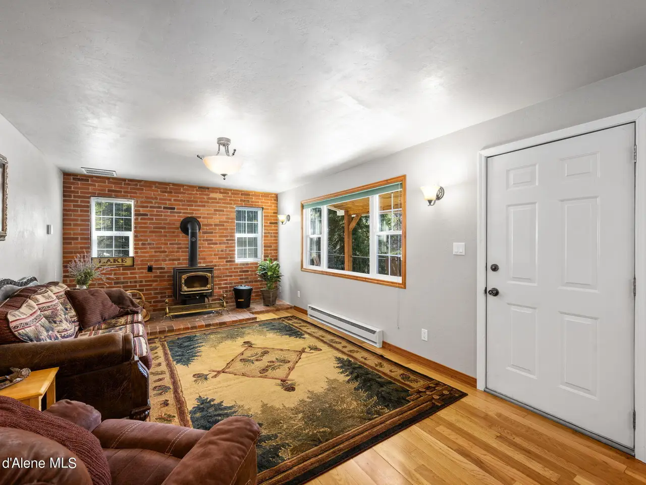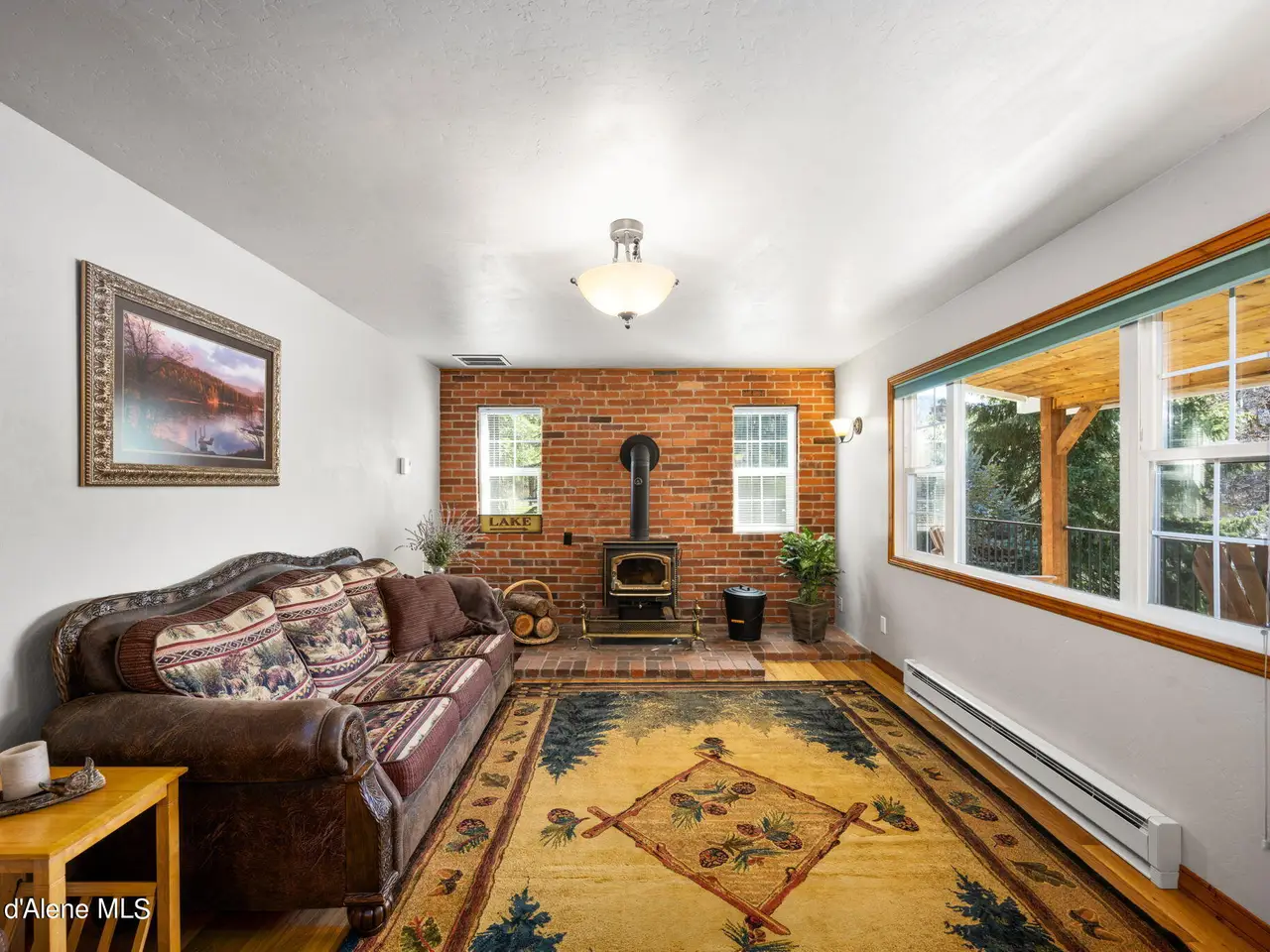 Nestled on Hayden Lake's coveted Mokins Bay, this waterfront retreat offers tranquility and recreation. Walk down to the covered dock and enjoy boating, kayaking, canoeing or fishing in the deep scenic bay that features a no wake zone. With 172 feet of waterfrontage and a sandy beach, the property spans 1.17 acres, comprising two lots, with a year-round creek running between the lots. The terraced landscaping has been thoughtfully designed to blend with the natural surroundings, creating a serene and inviting atmosphere. Originally built as a cozy lake cabin, this home has undergone a complete transformation to offer modern comforts and conveniences while retaining its rustic charm. Step inside to discover a beautifully remodeled interior, featuring updated kitchen and bathrooms, new flooring, and fresh paint throughout. With ample natural light, the home offers a warm and inviting ambiance, perfect for gatherings. Updated plumbing ensures worry-free living, allowing you to fully embrace the lakefront lifestyle. Whether you're seeking a private retreat for your family or an investment opportunity in the vacation rental market, this property offers endless possibilities. Previously, it operated as a successful vacation rental, the home comfortably accommodates 10+ guests. The detached garage provides convenient storage for all your lake toys and equipment, ensuring that you have everything you need to make the most of your time on the water. With its unbeatable combination of natural beauty, recreational amenities, and modern comforts, this Hayden Lake waterfront retreat offers a truly unparalleled living experience.