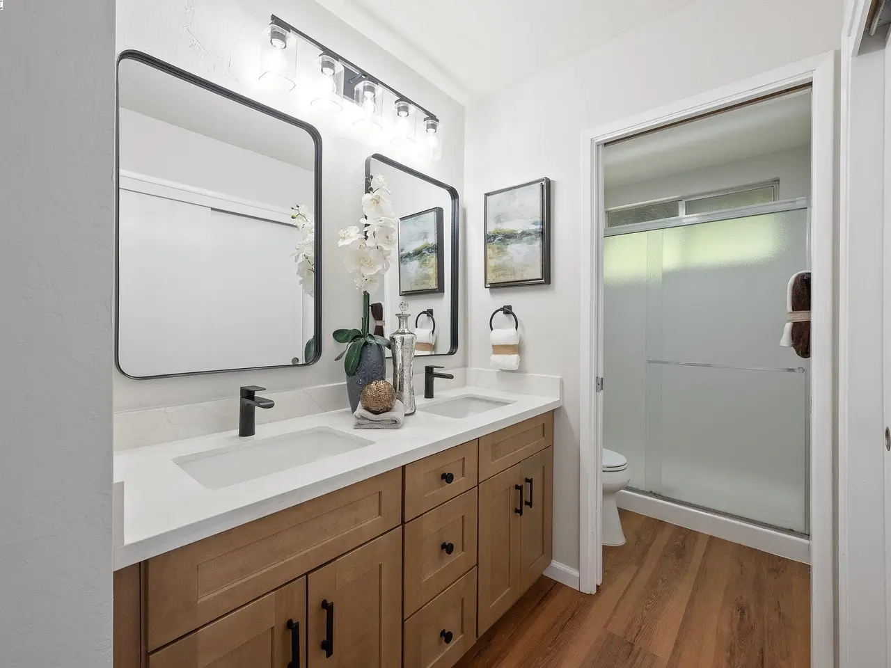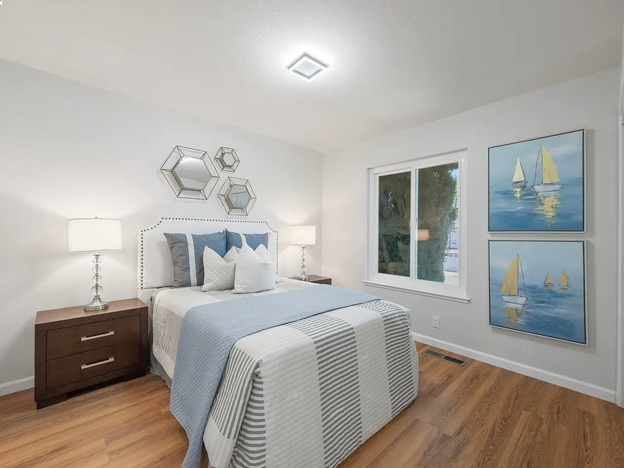 Beautifully updated 5-bed, 3-bath home in the desirable Hayward Hills! Perfect for large or multi-generational families, this versatile property features two separate living areas with 2 full kitchens. The upper level offers 3 beds, 2 baths, and an open-concept layout. The lower level includes 2 beds, 1 bath, a spacious family room, and a second kitchen—ideal for in-laws or rental income. Recent updates include modern kitchens and baths, new flooring, and updated lighting throughout. Enjoy the serene setting from your backyard featuring an outdoor jacuzzi, perfect for relaxing or entertaining. Located on a quiet cul-de-sac close to parks, hiking trails, and freeway access. A rare find in Hayward Hills!