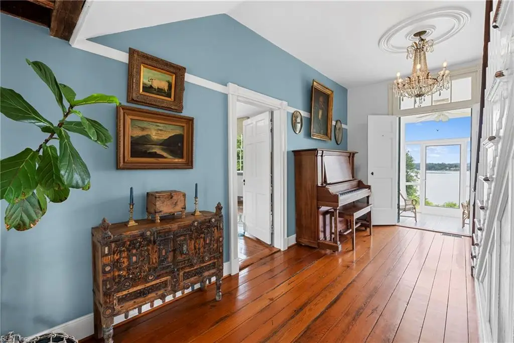 Edgehill is a legacy estate of uncommon peace built in 1832, restored with meticulous care, and offered with 5.7 acres. This historic waterfront haven has over 400 feet of shoreline along the Great Wicomico River. Set in privacy, a 50-foot saltwater pool overlooks the dock and water. Inside, original heart pine floors, plaster walls, and classic fireplaces create an atmosphere of warmth and calm. The chef's kitchen with handmade Moroccan tile, maple counters, cast iron sink and 6 burner range blends elegance with ease. Handmade bricks crafted on the property nearly two centuries ago speak to a tradition of quiet craftsmanship. River views fill every room, offering a constant attachment to the natural world. Outdoor dining beneath a graceful pergola, surrounded by mature gardens, becomes a ritual of connection. With fine architectural detail, 3 BRs, and ample space for gathering or quiet reflection Edgehill is a place of substance and imagination beautifully grounded, and built to endure. Located just 10 mins from the quaint town of Kilmarnock yet a world apart. Additional 2 acre parcel available.