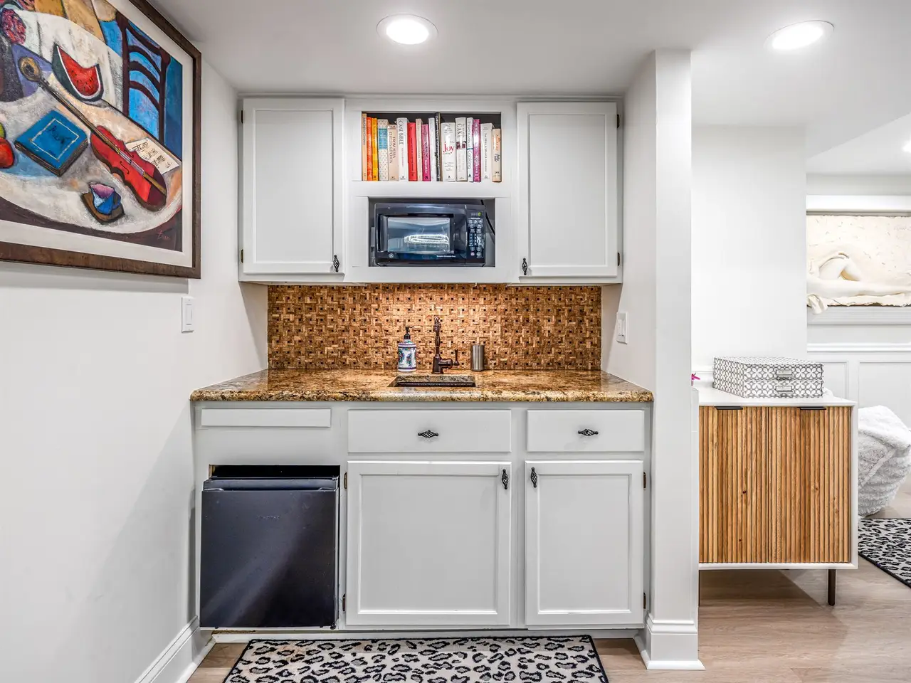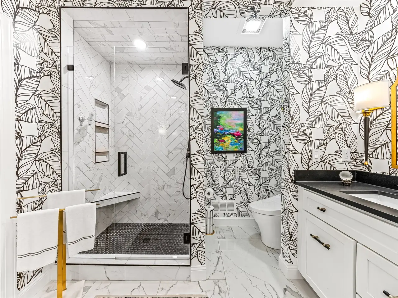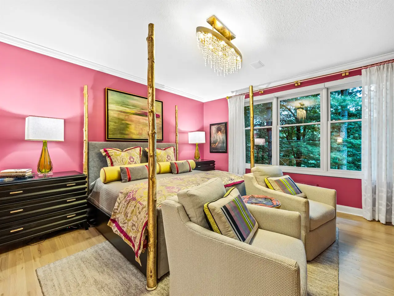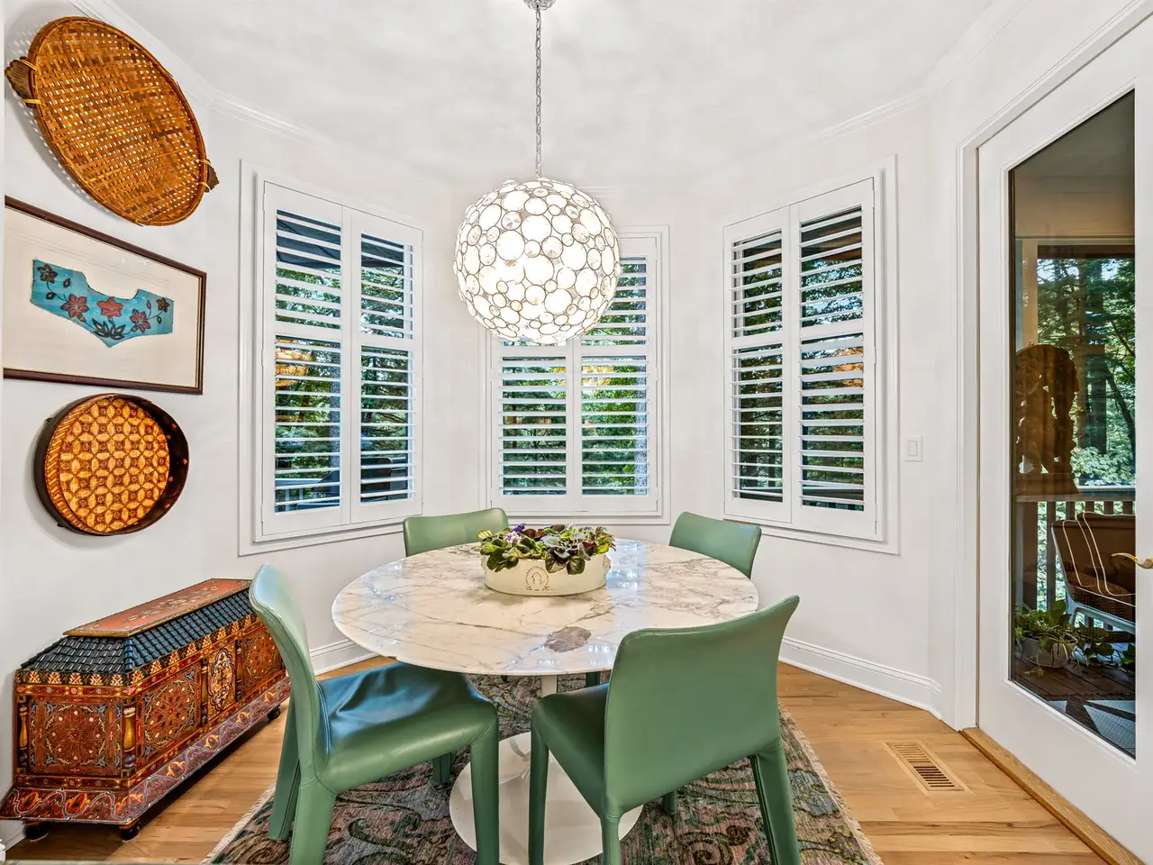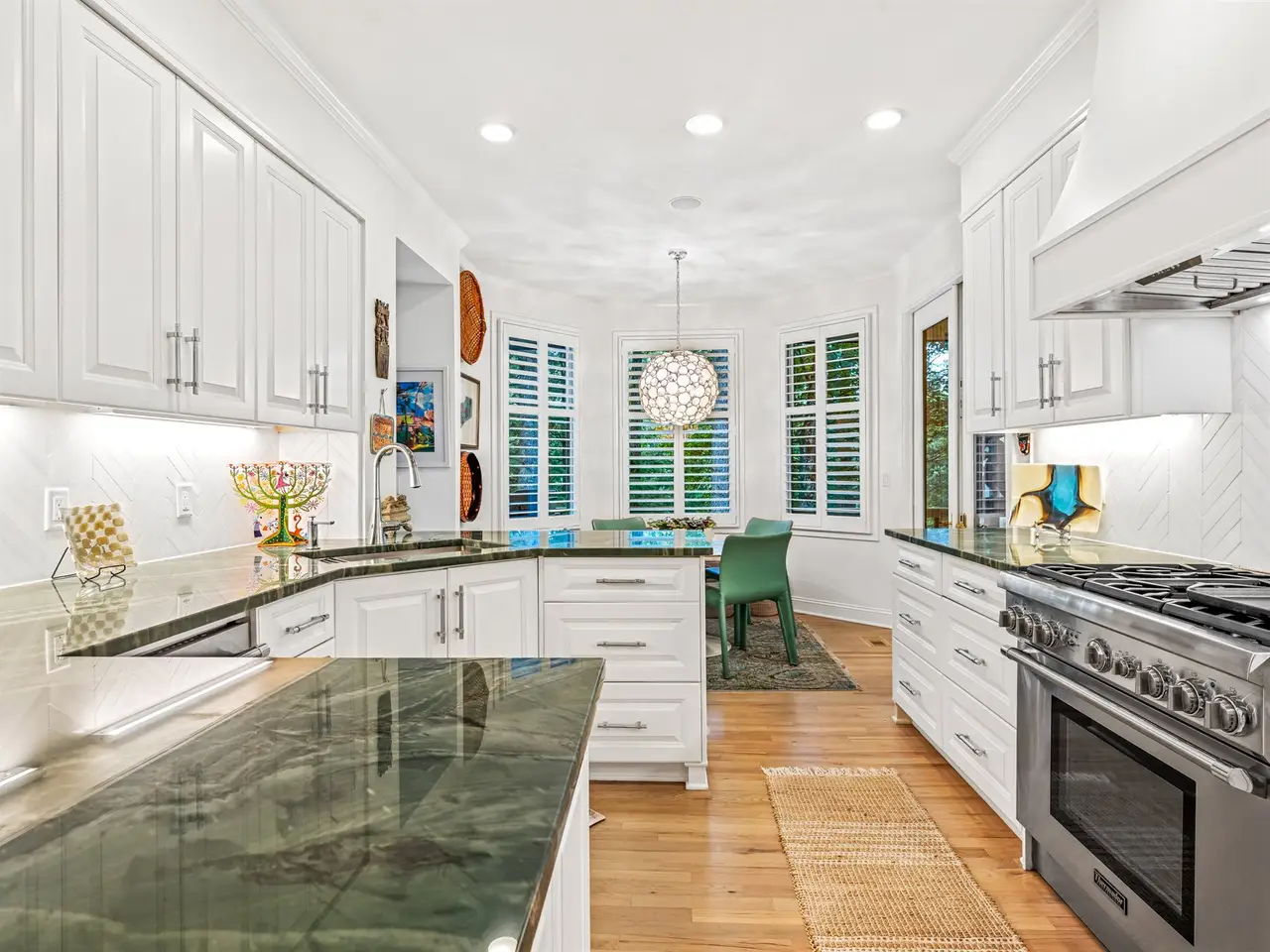 Nestled in Champion Hills above the 12th green, this artist's mountain retreat home pairs modern luxury with an eclectic, world-travel flair. Thoughtful updates and attention to detail bring comfort and style together. From the Samsung Frame TV on a hydraulic TV lift that preserves the aesthetic of the fireplace wall, Brazilian Quartzite countertops in the chef's eat-in kitchen to all the wood floors. The main level's soaring great room and primary suite offer ease of one-level living, while the terrace level is designed for both fun and function with a family room, office, guest suites, and a wet bar. Multiple porches and decks encourage life outdoors - morning coffee on the screened porch, evening wine on the open deck, or quiet afternoons on the covered terrace. Plush yet practical, with golf cart storage, workshop, and abundant space, this home invites you to live serenely in the Blue Ridge Mountains while only minutes from downtown Hendersonville.